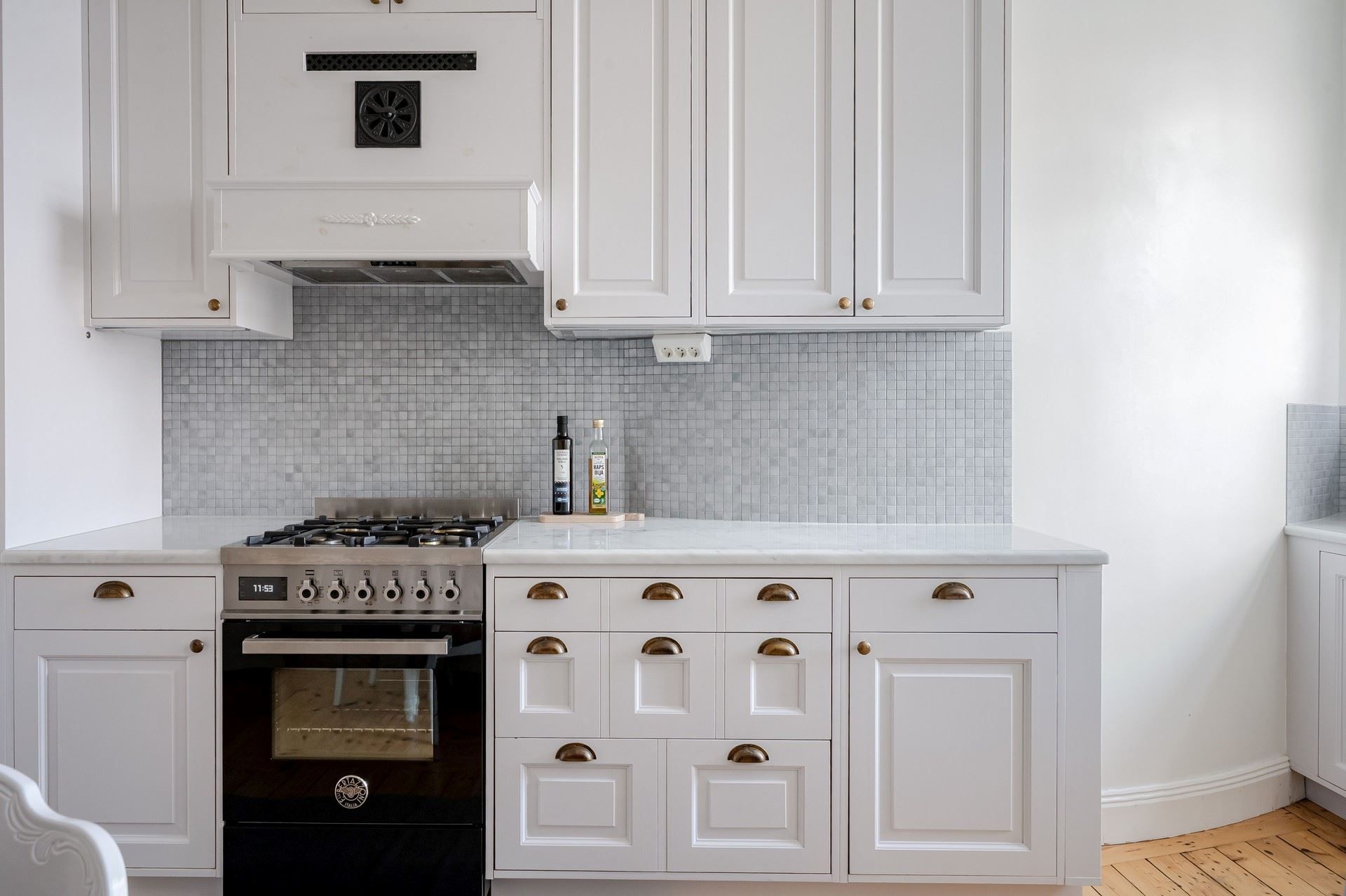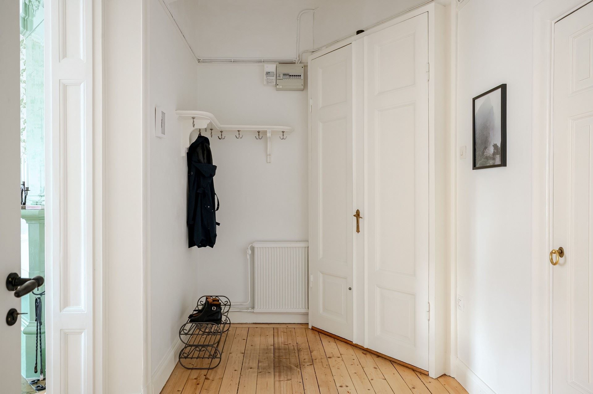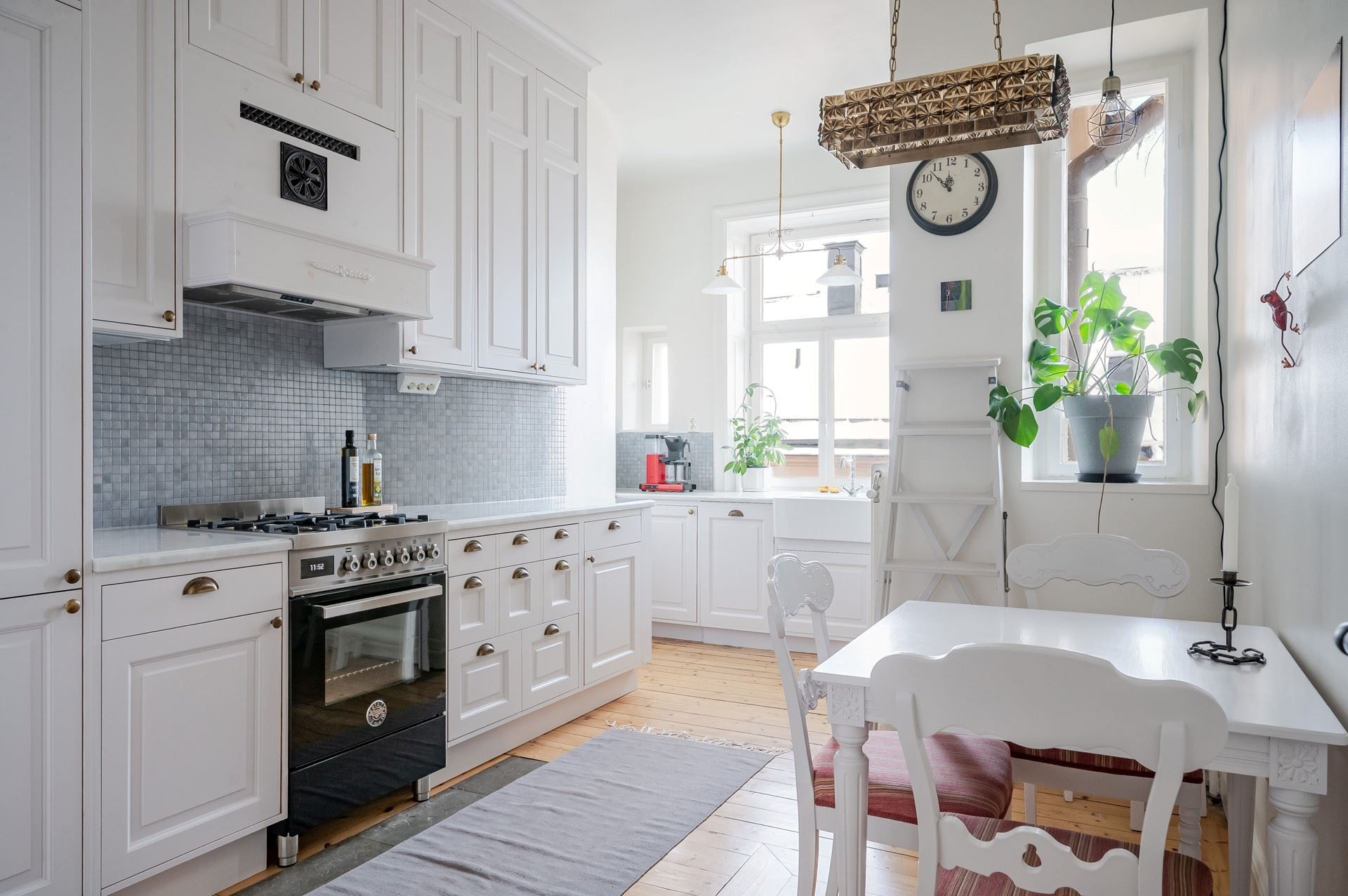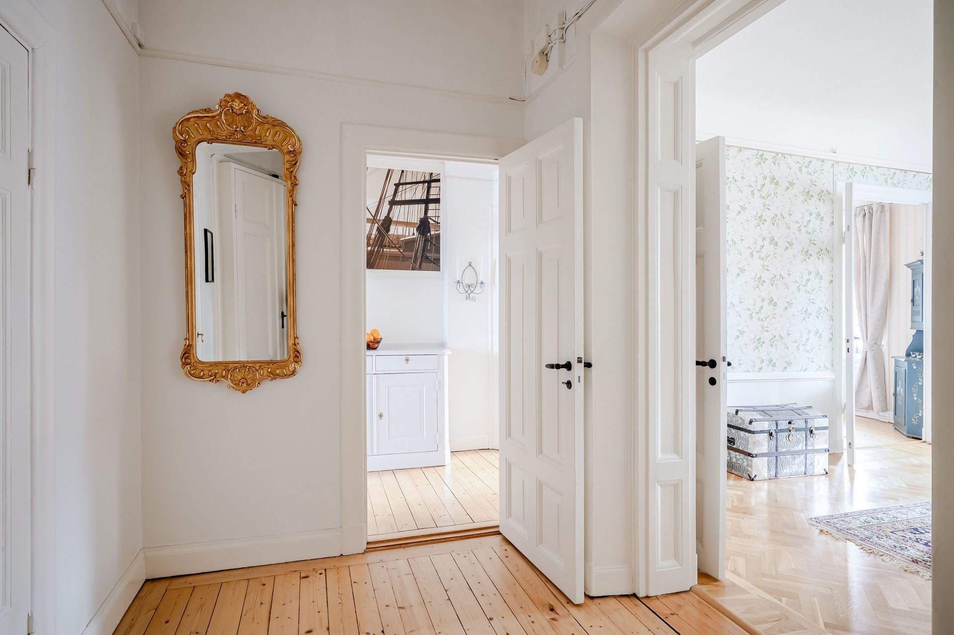 Det eleganta burspråket erbjuder en självklar plats för långa middagar och blir hemmets naturliga blickfång. Bostaden är genomgående smakfull och harmonisk – ett hem som verkligen måste upplevas på plats.