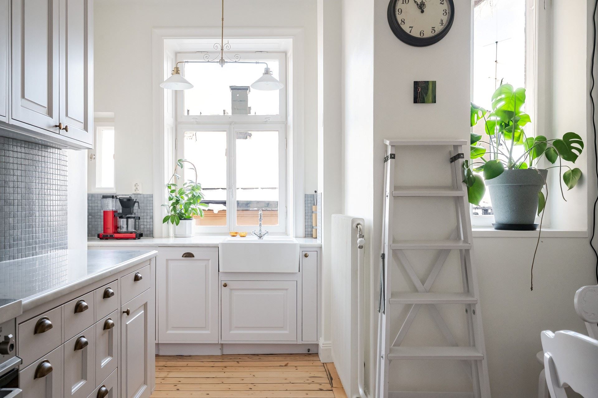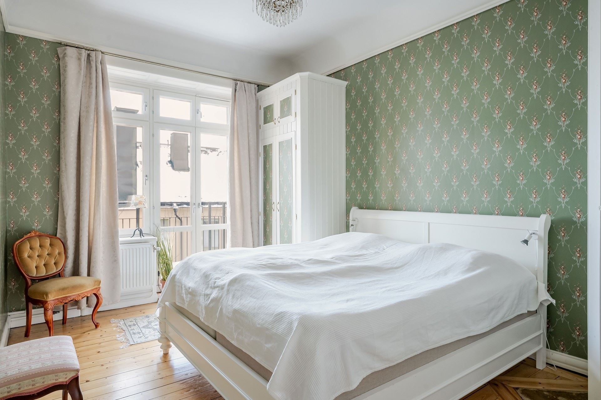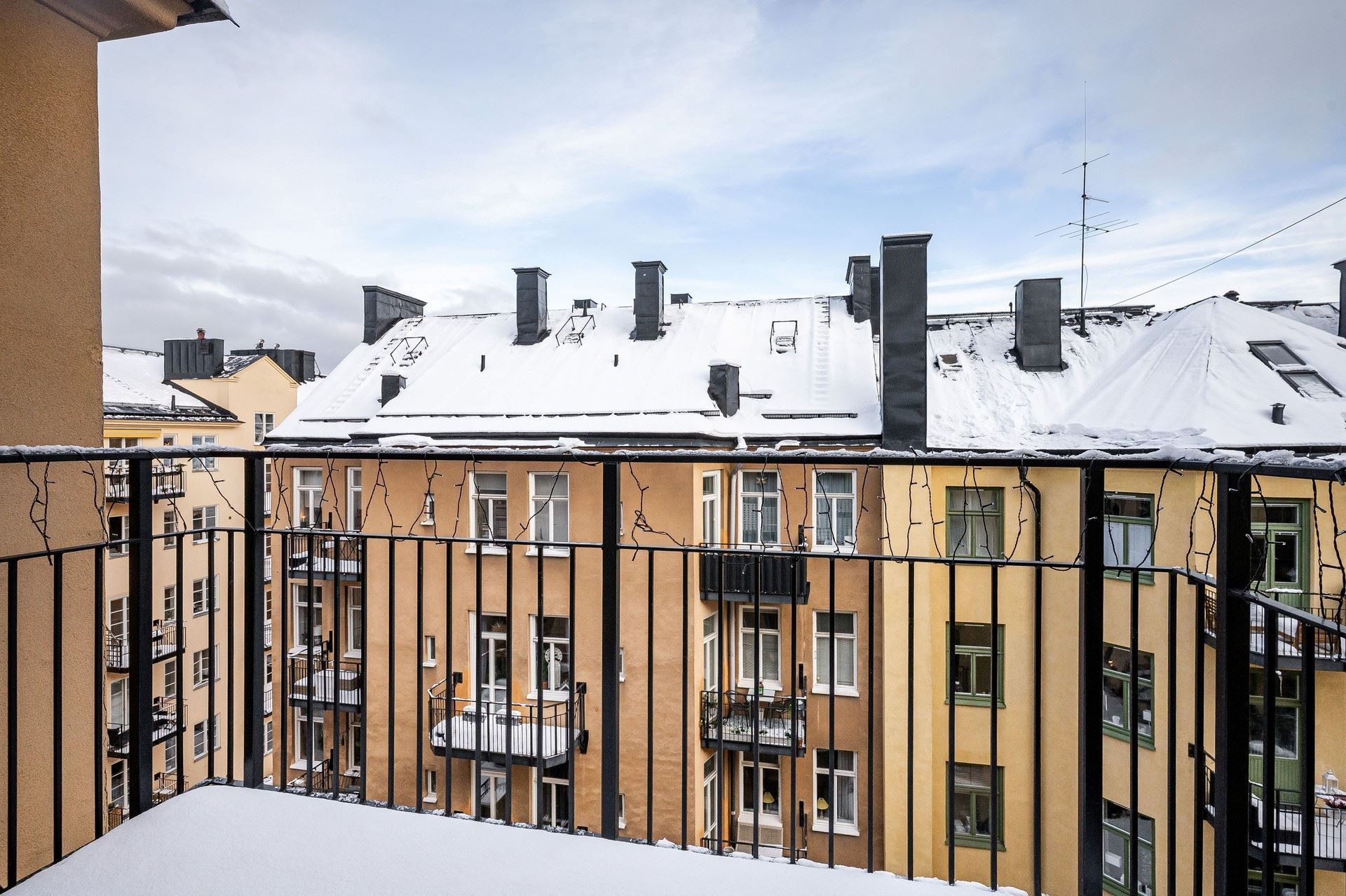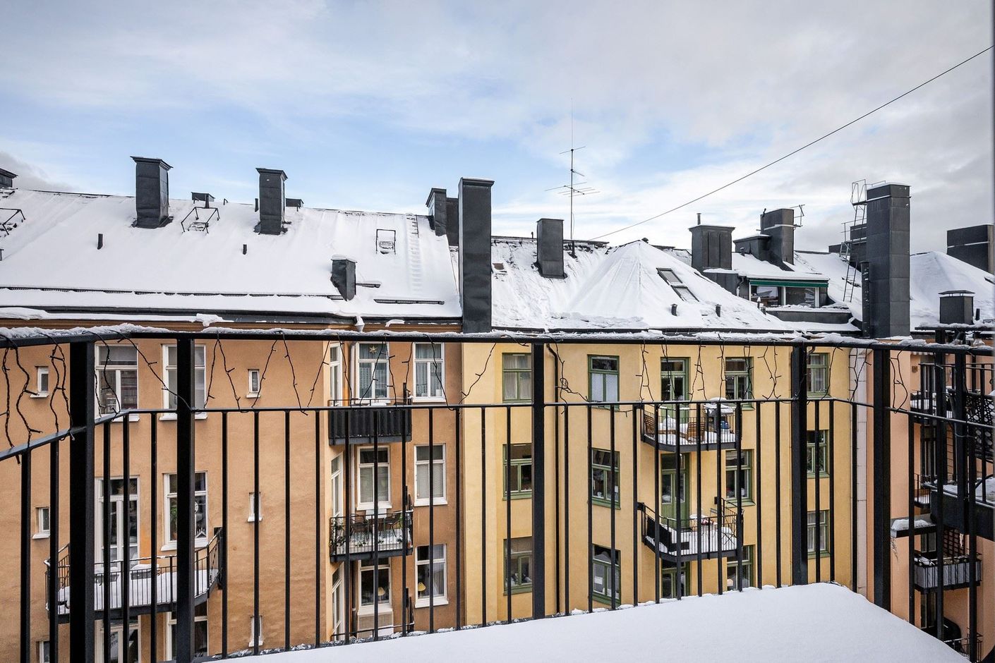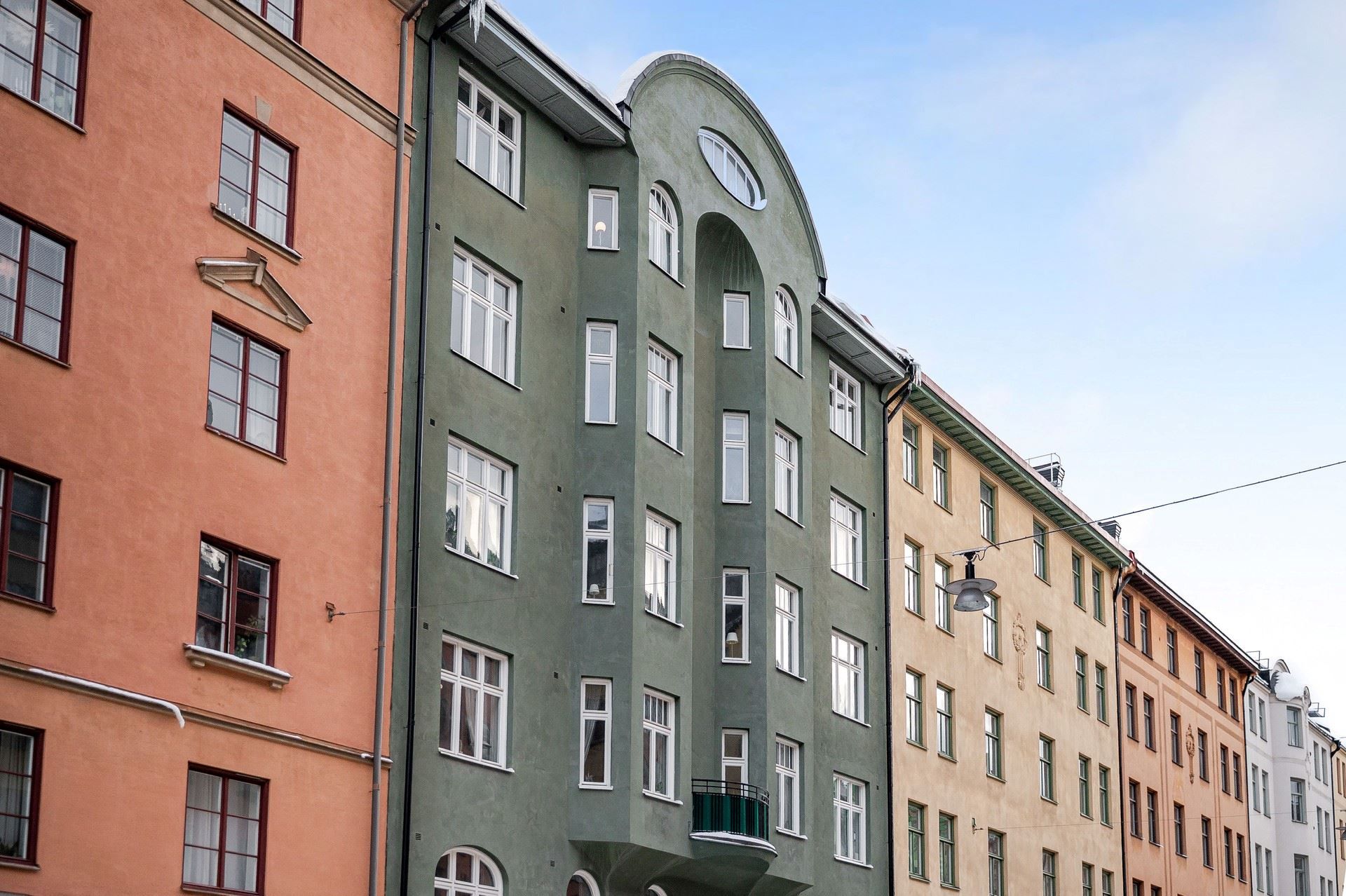 Sekelskiftesdröm högst upp i huset – två kakelugnar, balkong och burspråk