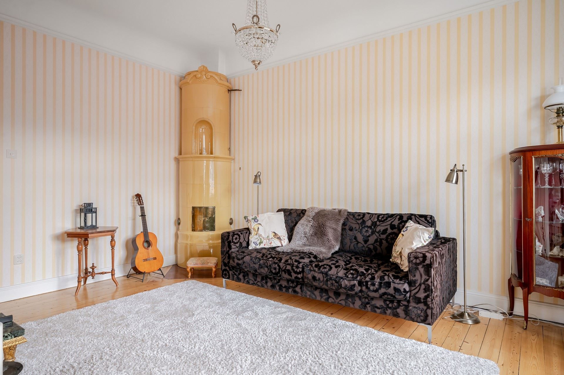 Välkommen till en enastående sekelskiftesbostad anno 1906 där tidlös elegans möter ett rofyllt och attraktivt läge. Här samsas vackra tidstypiska detaljer såsom gedigna trägolv, generös takhöjd, klassiskt fiskbensmönster och två stämningsfulla fungerande kakelugnar som ger hemmet både karaktär och värme.
