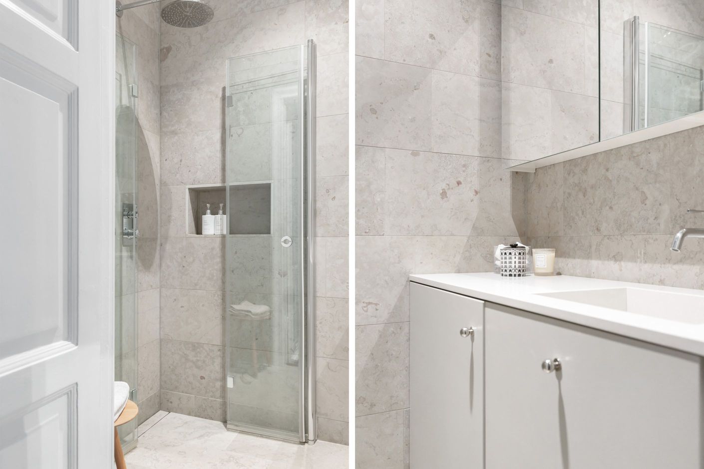 Bostaden har renoverats med känsla och stil där man har modern funktion med tidstypisk anda. Alla önskvärda tidstypiska attribut finns representerade så som en generös takhöjd om ca.3m, takrosett, stuckaturer, speglade dörrar, höga golvsocklar, trätiljor, fiskbensparkett, samt spröjsade fönster och djupa nischer.