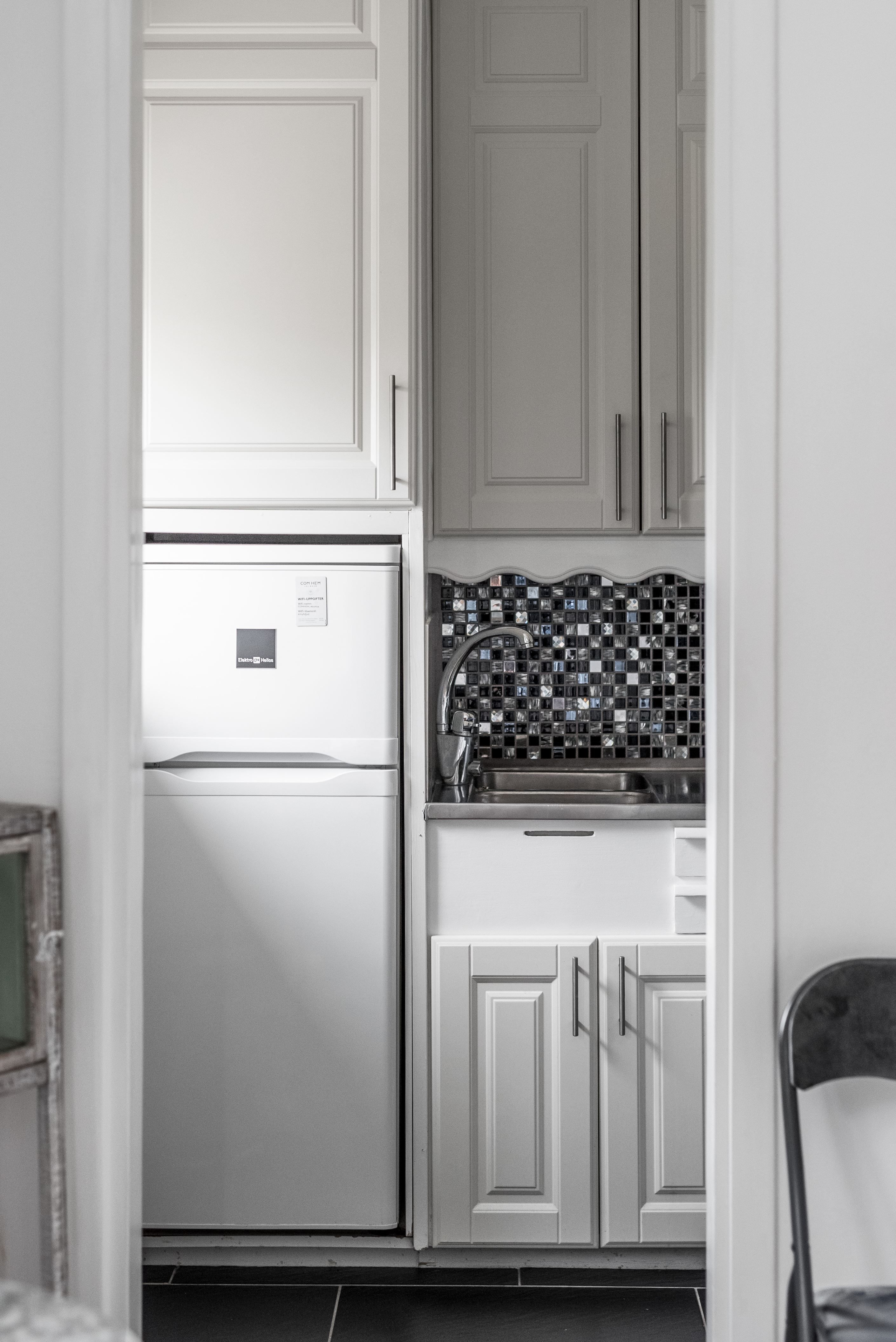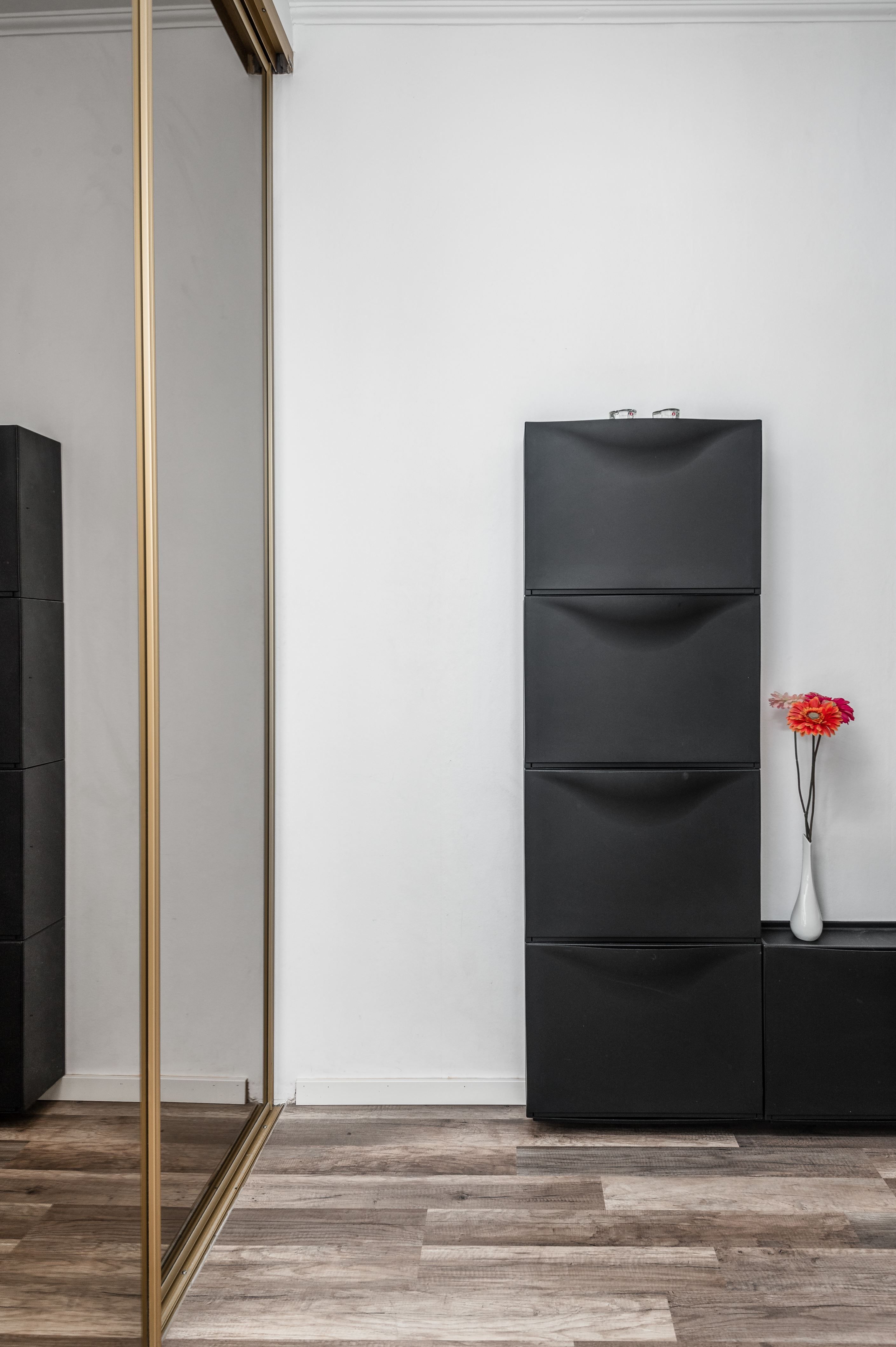 Denna bostad präglas av smarta lösningar och en genomgående god standard. Här finner vi en fransk balkong ut mot innegården och ett kvadratsmart kök i anslutning till det öppna vardagsrummet. Vid entrén återfinns en hall med avhängning samt garderober, badrum försett med dusch, WC och kommod i helkaklat format. Fina golv och ytskikt överlag.