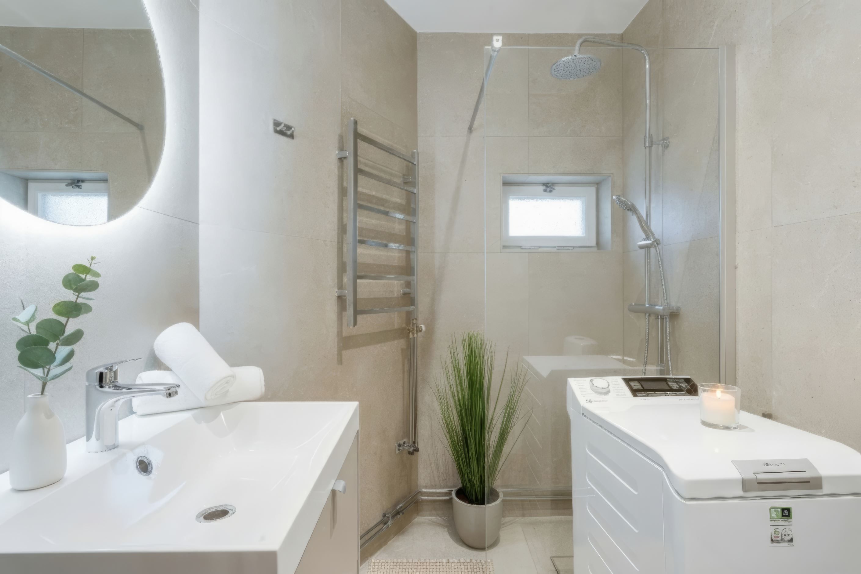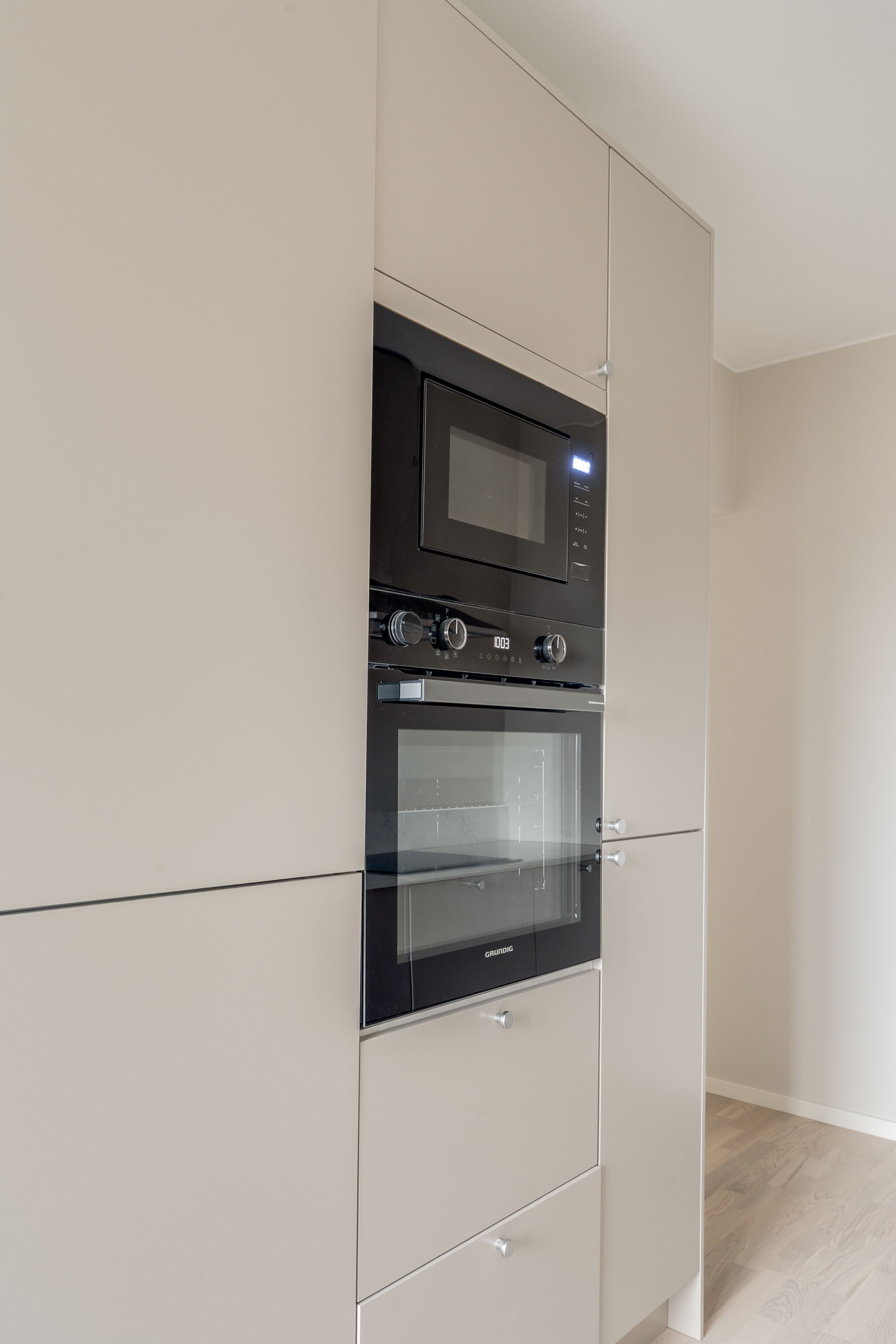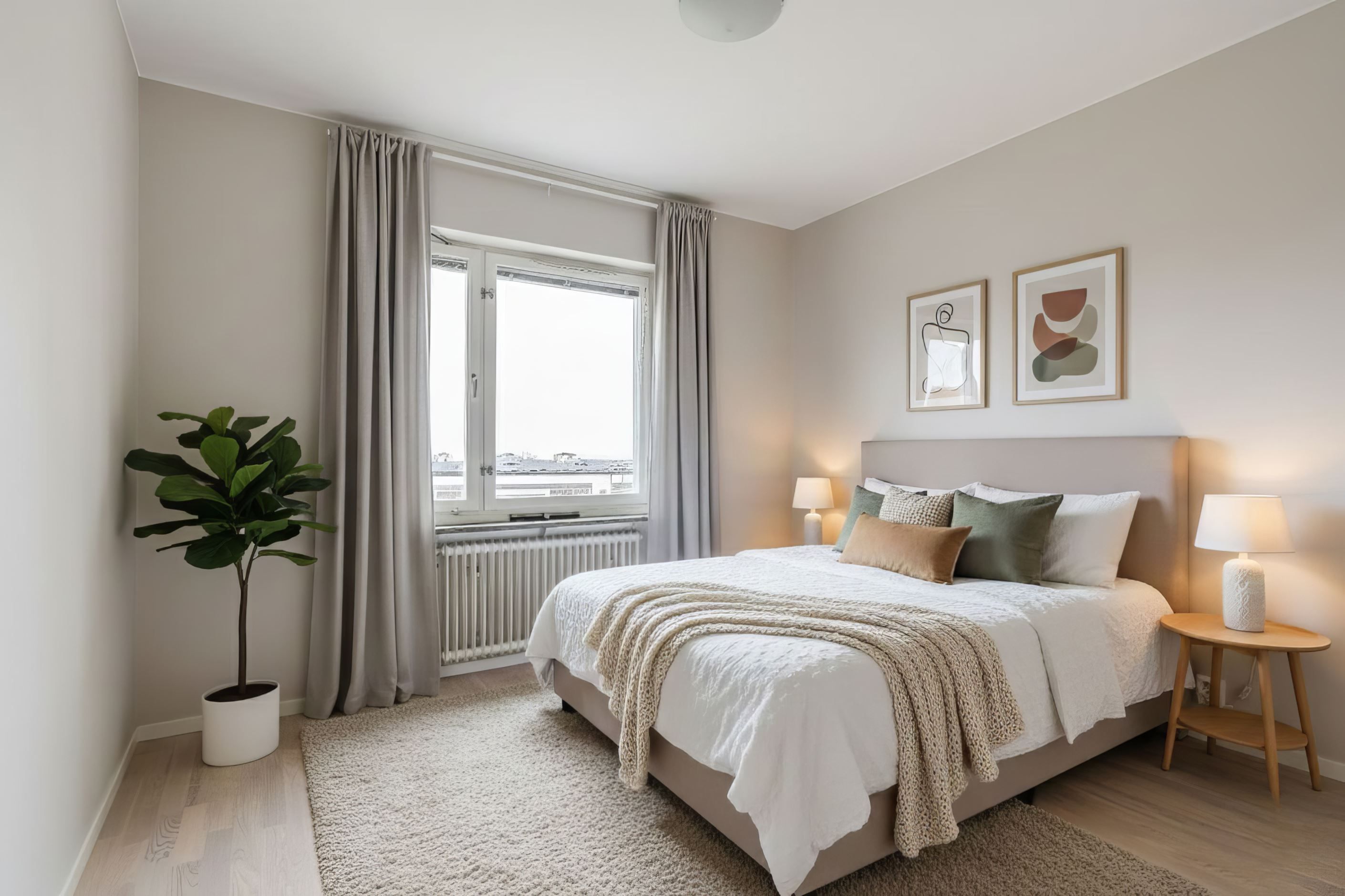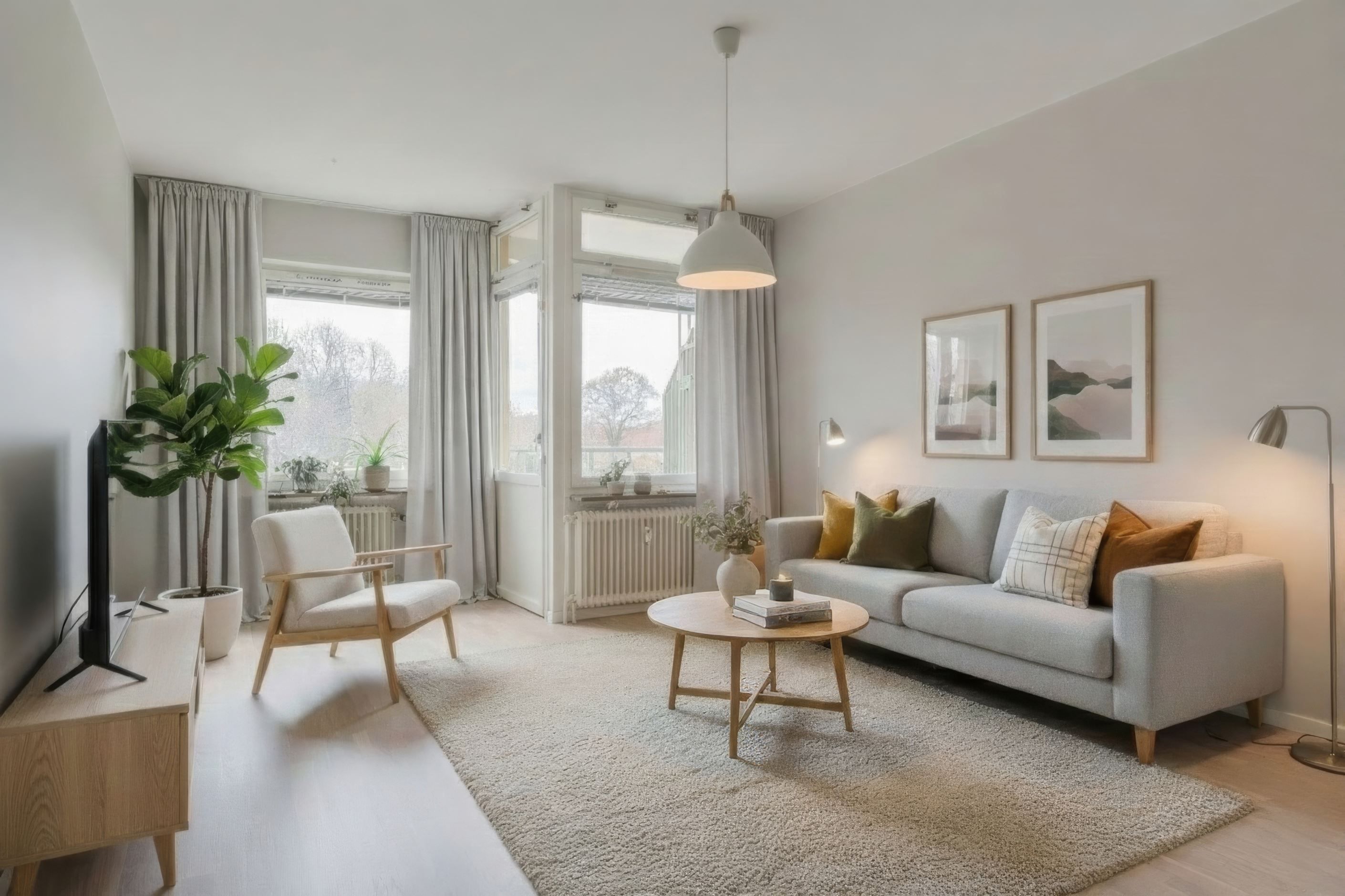 Här bor du högst upp i huset på våning 4/4, i en bostad som känns helt ny från första steget in. Hemmet erbjuder ett helkaklat, fräscht duschrum, nya enhetliga golv och ett stilrent kök med bänkskiva i kompositsten – samma exklusiva material återkommer även i det snygga stänkskyddet. Samtliga ytskikt är omsorgsfullt förbättrade och ger ett genomgående modernt intryck. Förvaring finns generöst i både hall och sovrum.
