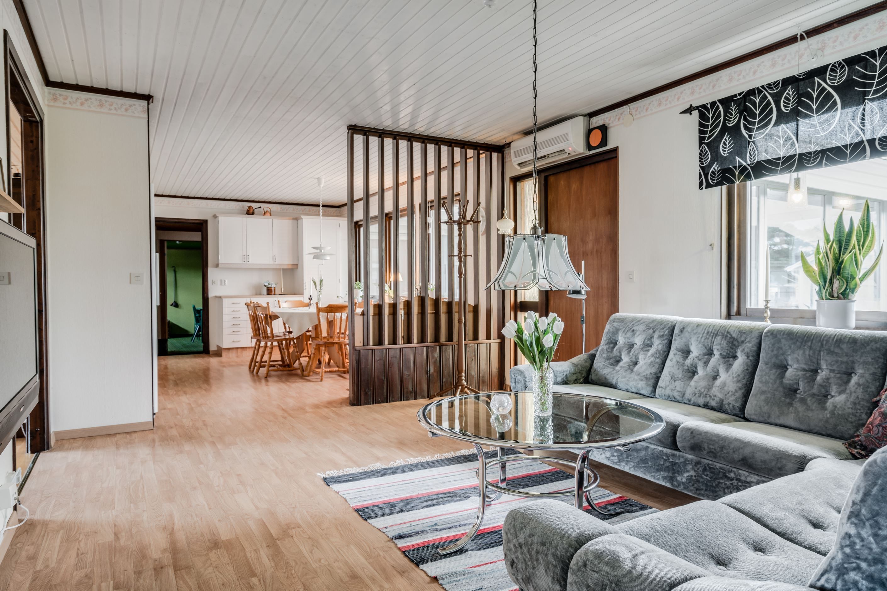 Bostaden är i nuläget i originalskick, vilket å ena sidan innebär behov av kärlek och omvårdnad, men som å andra sidan också ger stora möjligheter att få sätta sin egen prägel på hemmet. Här erbjuds du en fantastisk planlösning med stora sociala ytor, detta i kombination med trivsamt ljusinsläpp från stora fönsterpartier ger en fantastiskt trevlig levnadsmiljö.