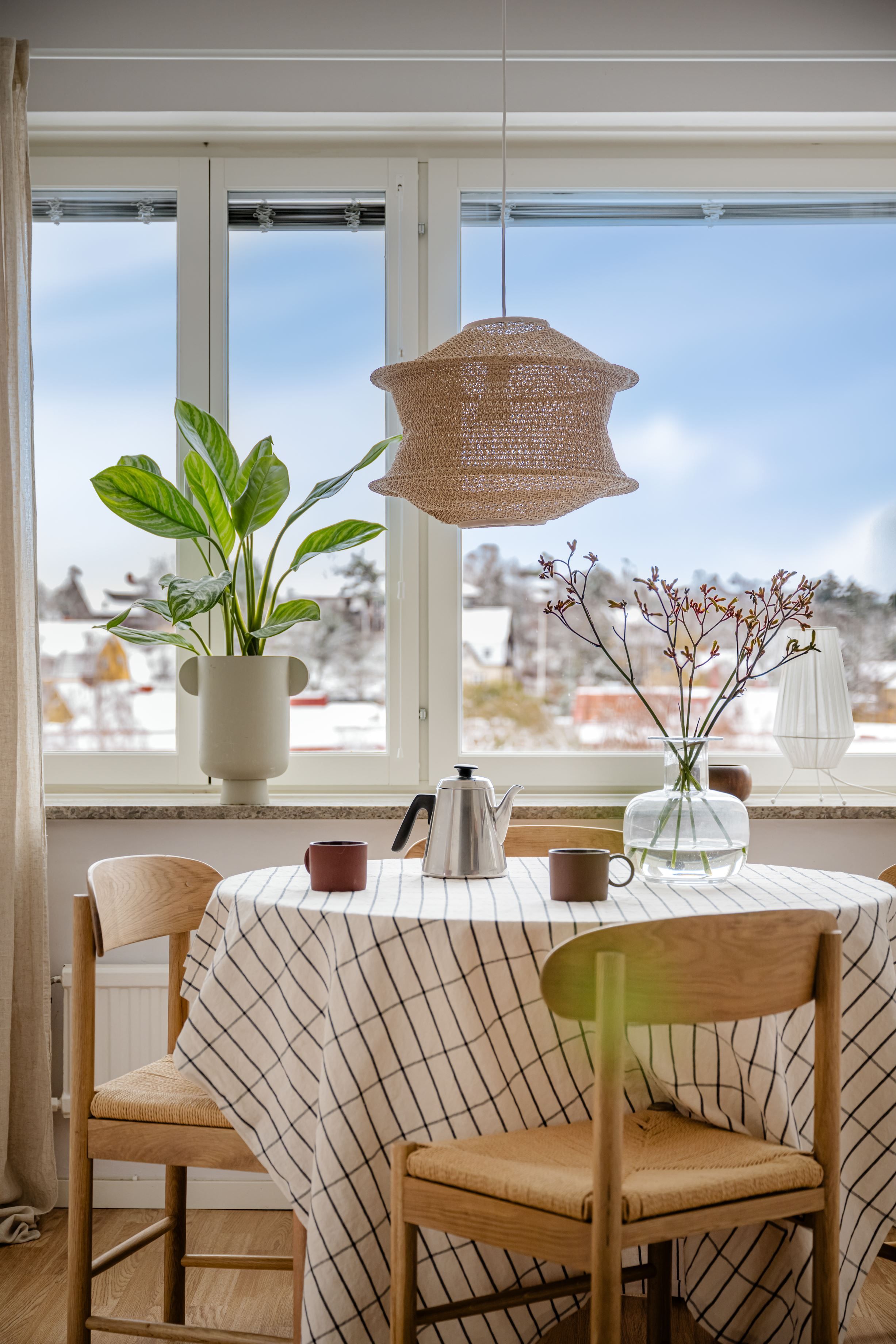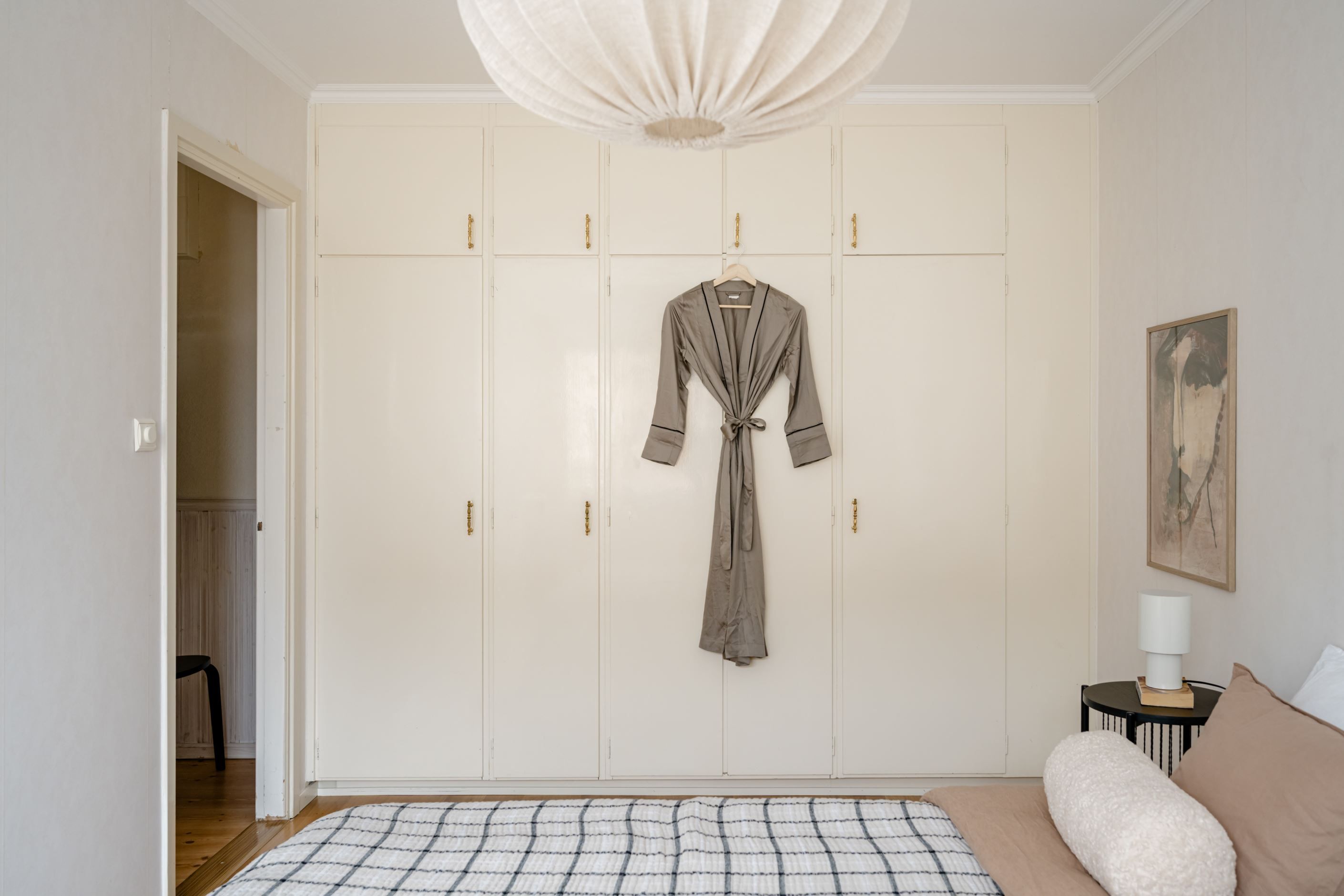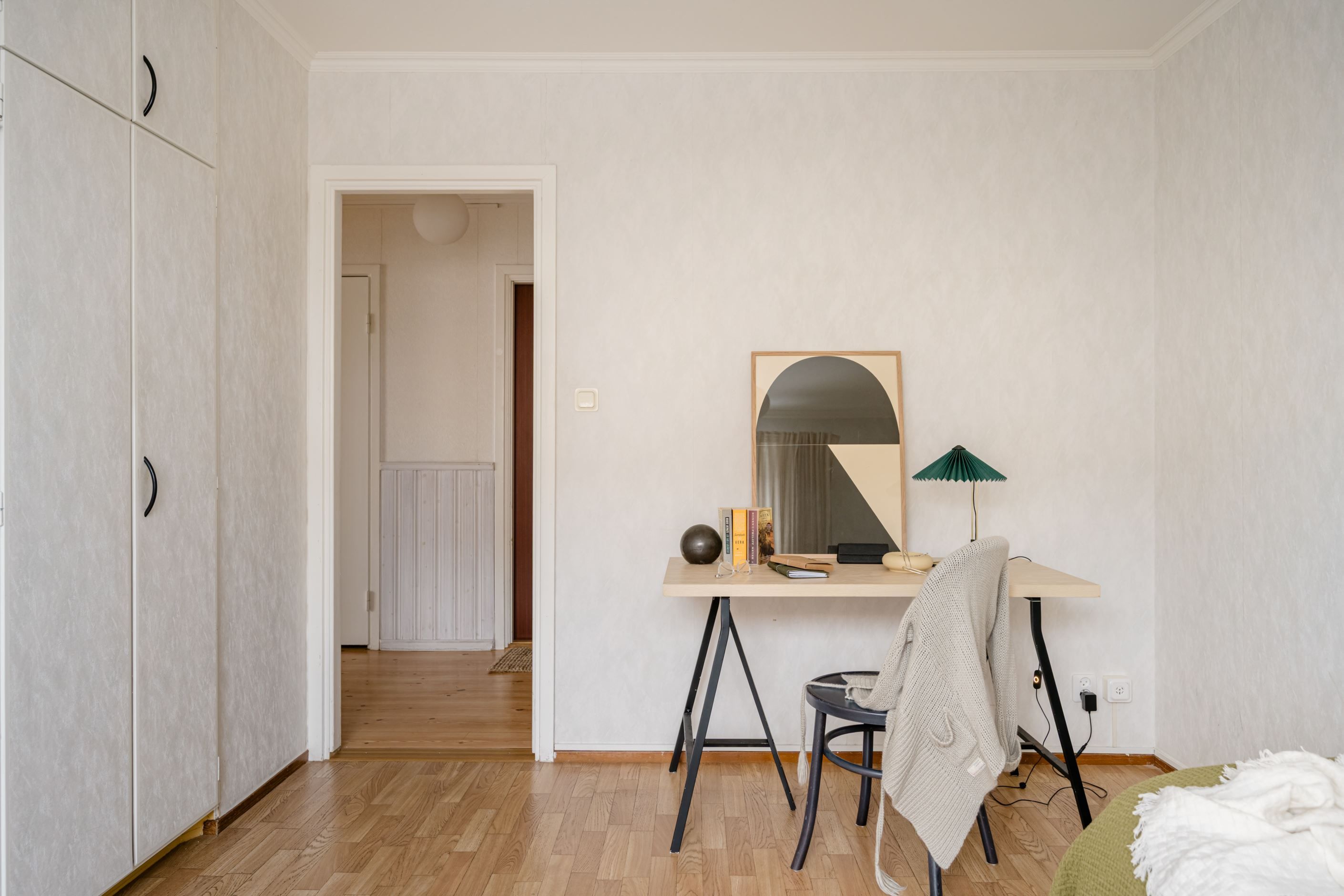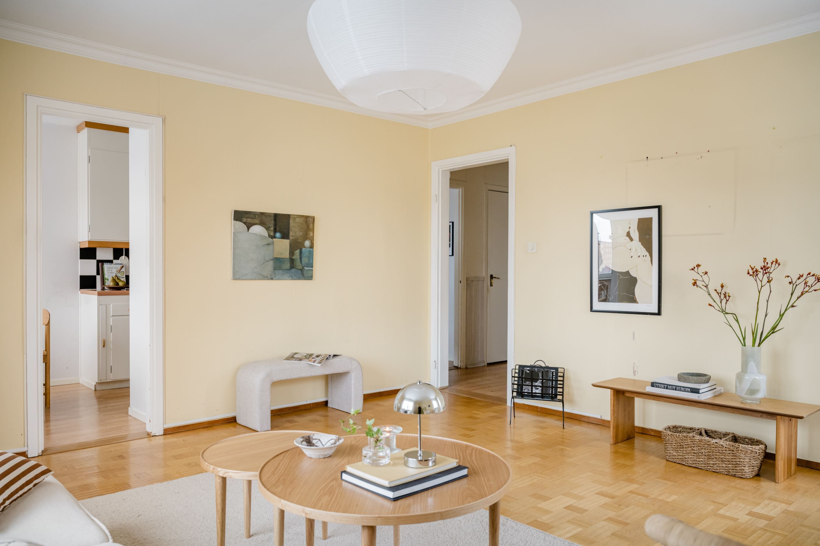 Lägenheten har en genomtänkt planlösning med fönster i två väderstreck. Det rymliga vardagsrummet har ett härligt ljusinsläpp och gott om plats för en större soffgrupp samt matbord för många gäster. Köket är väldisponerat med bra arbetsytor, generös förvaring och plats för matbord vid fönstret. Det smakfulla badrummet renoverades i samband med stambytet 2017 och är utrustat med dusch och tvättmaskin. Dessutom finns en separat wc, vilket ger två utrymmen att göra sig i ordning på. Lägenheten rymmer två sovrum med plats för dubbelsäng och erbjuder gott om förvaring genom platsbyggda garderober samt tillhörande källarförråd. Möjlighet till snabbt tillträde finns.