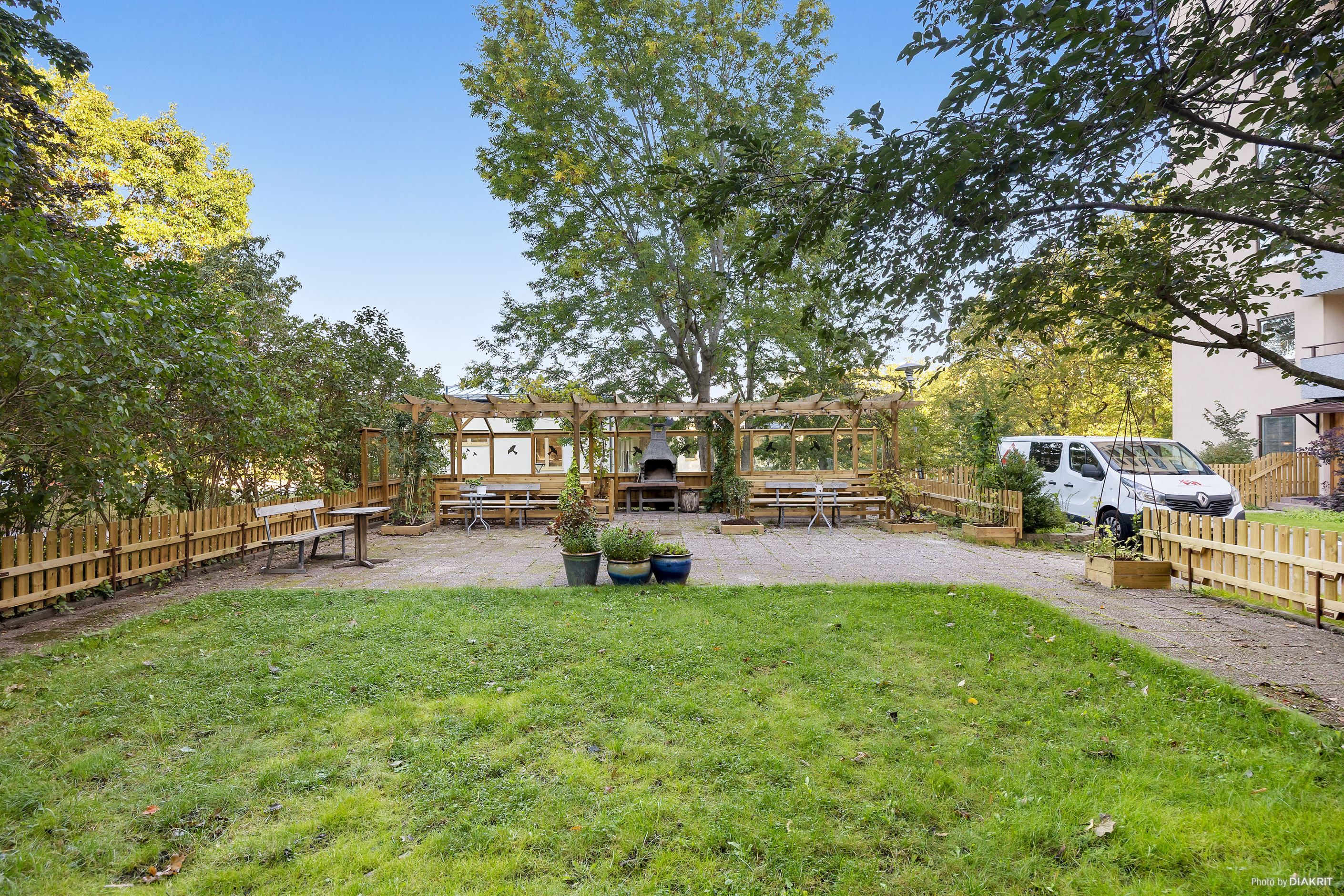 Populär förening som är lågt belånad och äger marken. Föreningen har bland annat utfört stambyte, hissrenovering, renovering av fasad, balkonger och fönsterbyte. Tre kvarvarande hyresrätter ger ett framtida ekonomiskt tillskott vid upplåtelse. Här bor du i en trivsam förening med många faciliteter såsom föreningslokal, övernattningsrum, bastu och ett aktivitetsutrymme i källaren med bland annat gym, pingis och badminton. Den gröna innergården har en mysig uteplats med pergola, grillplats och gräsytor – en oas för både avkoppling och gemenskap. För bilägare finns både varmgarage och utomhusparkering i föreningen, med separat kösystem. I garaget finns det 16 p-platser med laddboxar för elbilar.