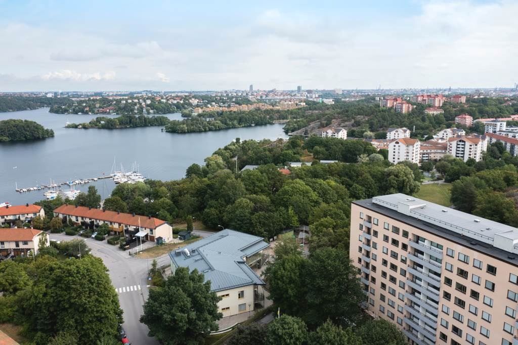 Badrocksavstånd – på cirka 5–8 minuters promenad når du klippbad vid Mälaren, Vintervikens grönska och strandnära promenader. Tunnelbanan ligger bara ett par minuter bort och tar dig till T-centralen på cirka 15 minuter. Endast tre stationer bort väntar Liljeholmens galleria med nästan 100 butiker och restauranger, tvärbana, direktbussar till Scania, Karolinska, Huddinge sjukhus och flygbussar till Arlanda. På cykel når du Södermalm på cirka 15 minuter.