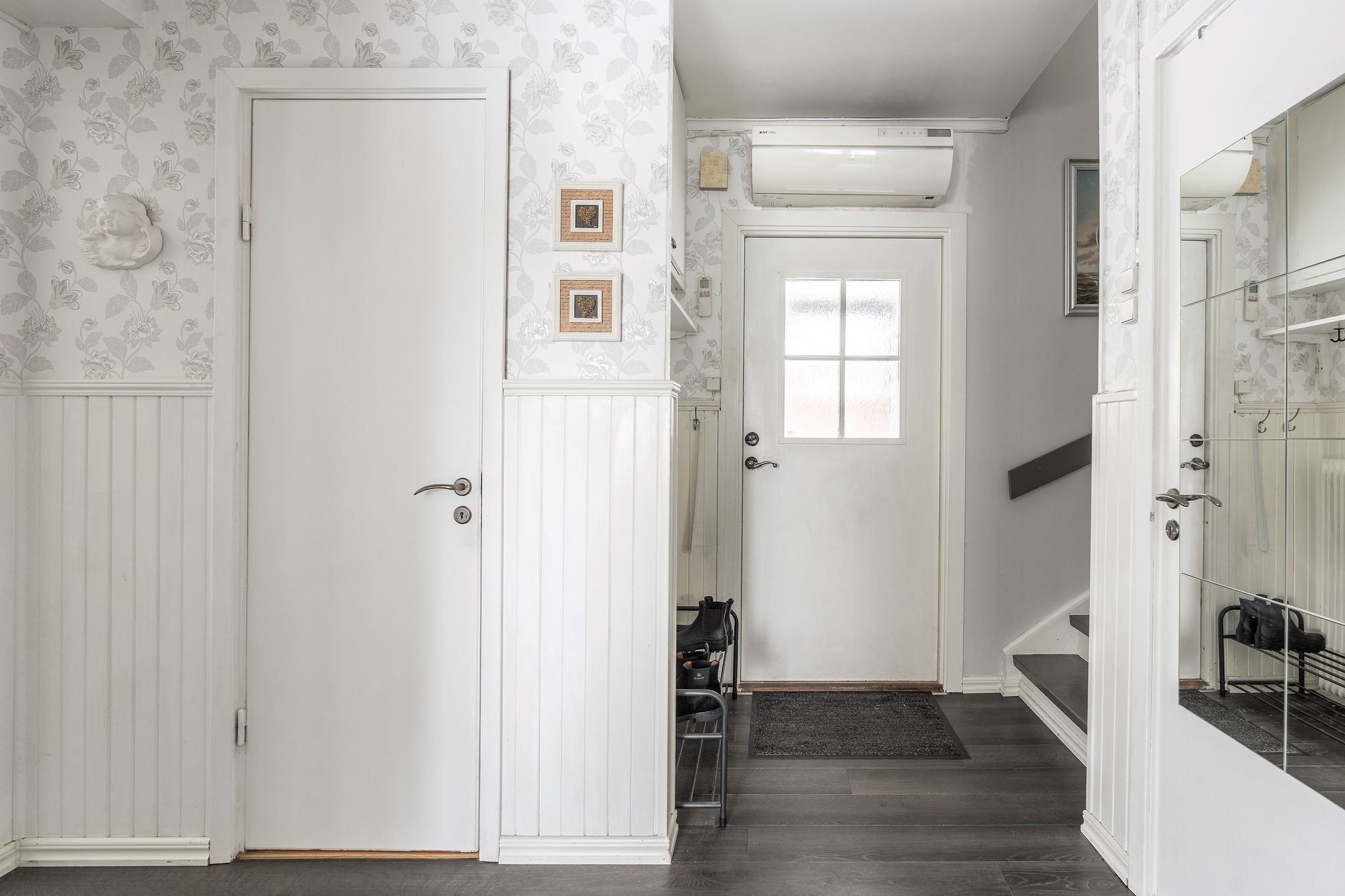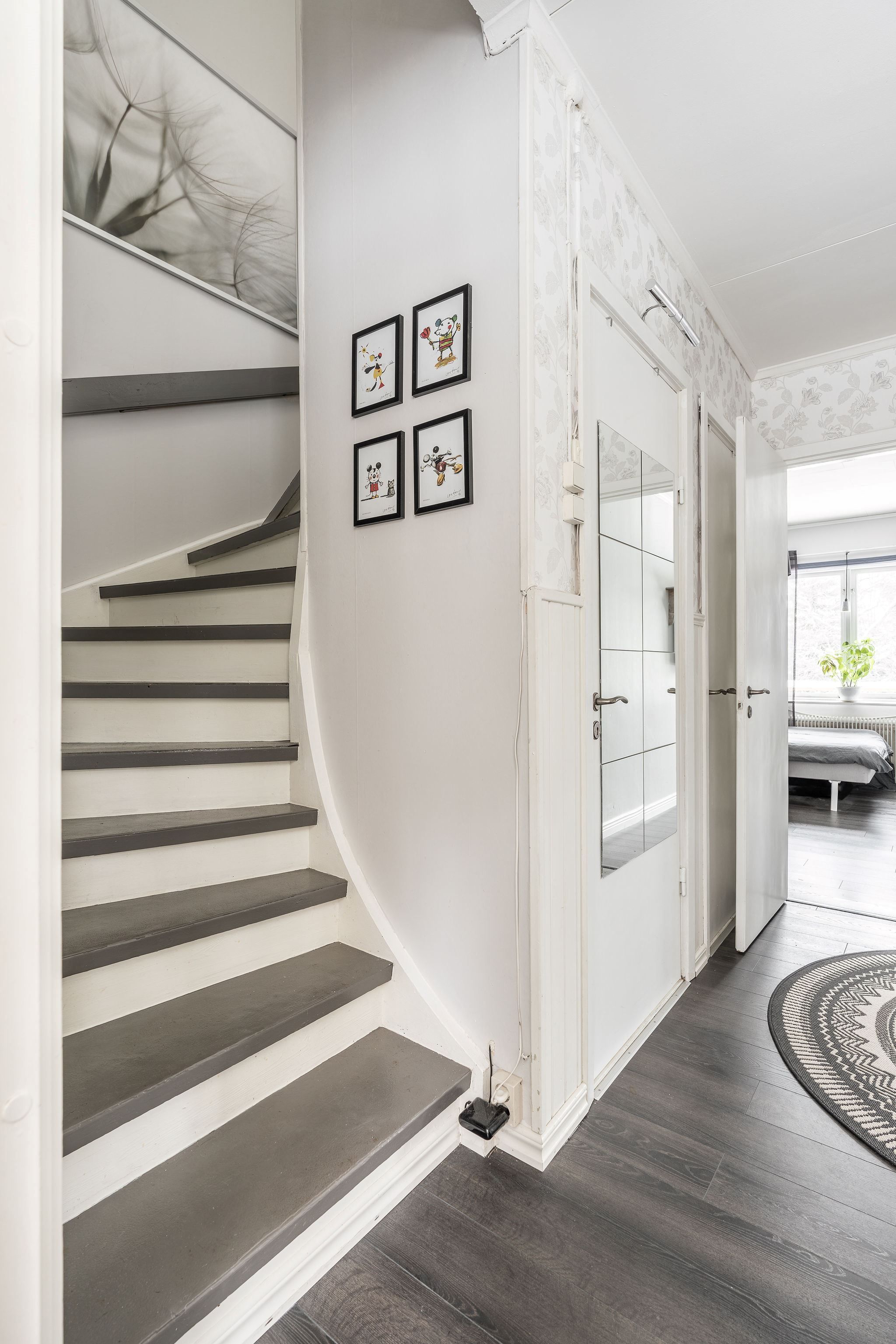 Bostaden erbjuder en trivsam och funktionell planlösning med ljusa sällskapsytor och tre sovrum. Här finns gott om plats för både vardagsliv och sociala tillställningar. En värmande kamin finns installerad i vardagsrummet för de kyligaste dagarna och wc finns på båda våningsplanen.