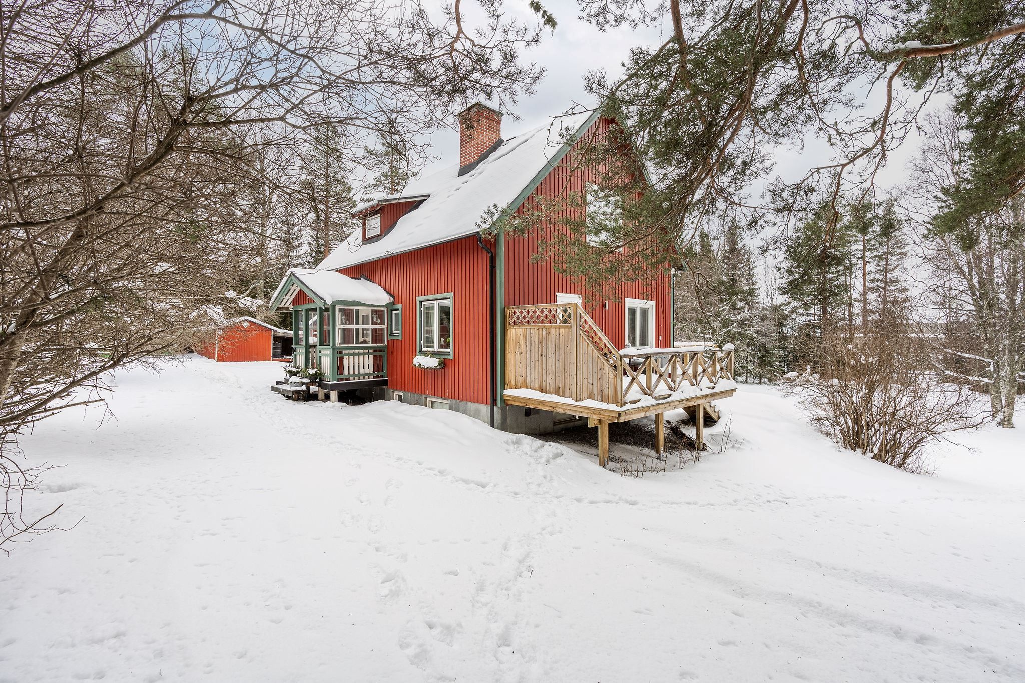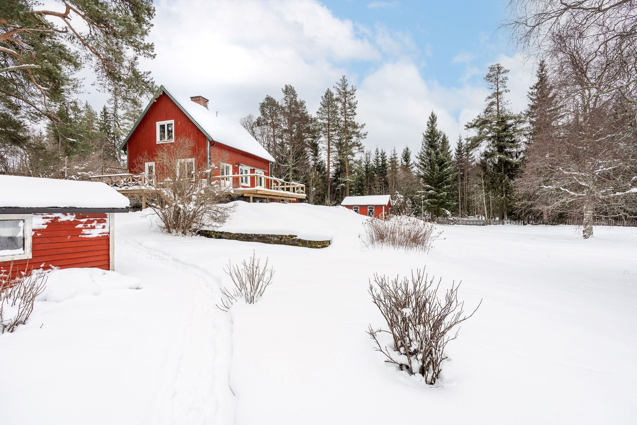 På den rymliga tomten finns ett större förråd för praktisk förvaring och goda möjligheter att anlägga ett större garage för bästa trivsel.