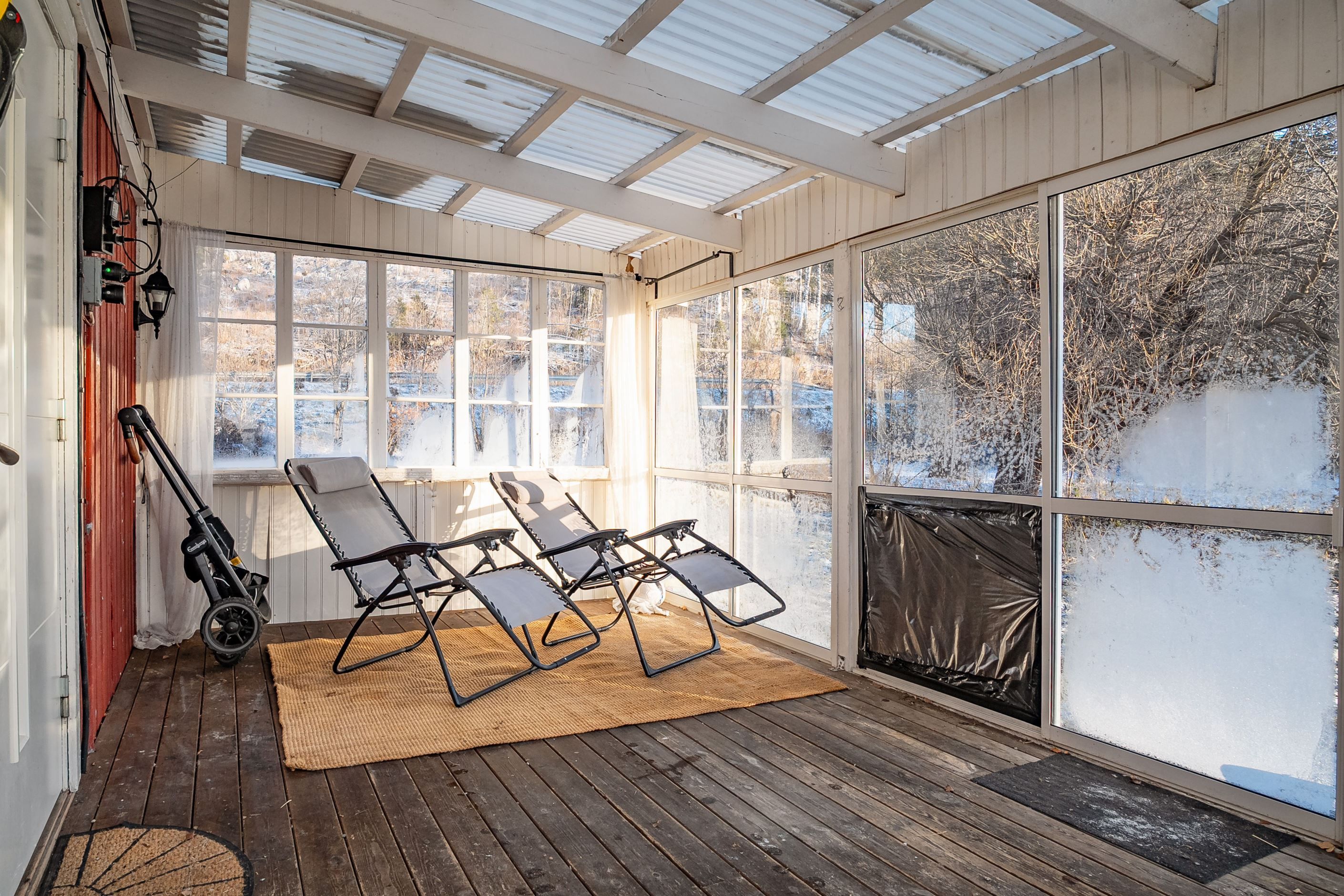Villan erbjuder ett mysigt boende med stora sällskapsytor och en genomtänkt planlösning. På övre plan finns två generösa sovrum, båda med plats för både dubbelsäng och extra förvaring. På entréplanet möts du av ett inbjudande vardagsrum, ett rymligt kök med vedspis som skapar både värme och stämning samt en praktisk inglasad entré som förlänger säsongen.