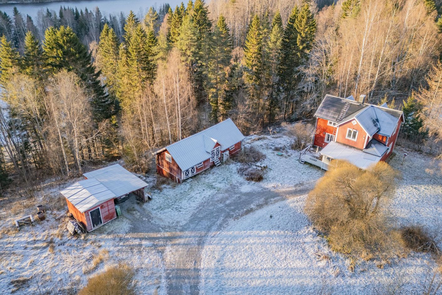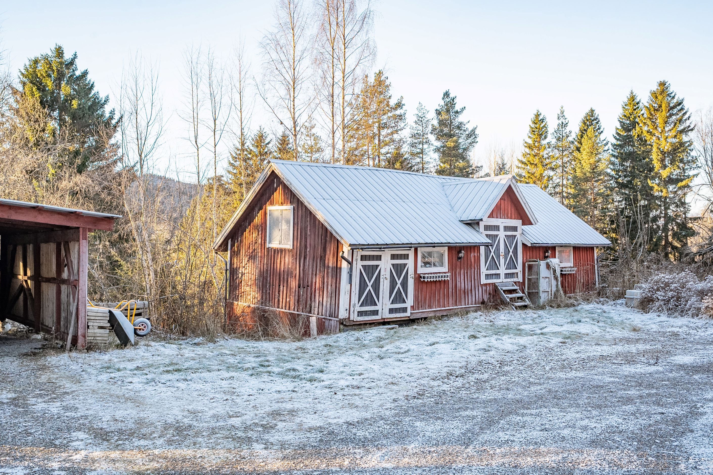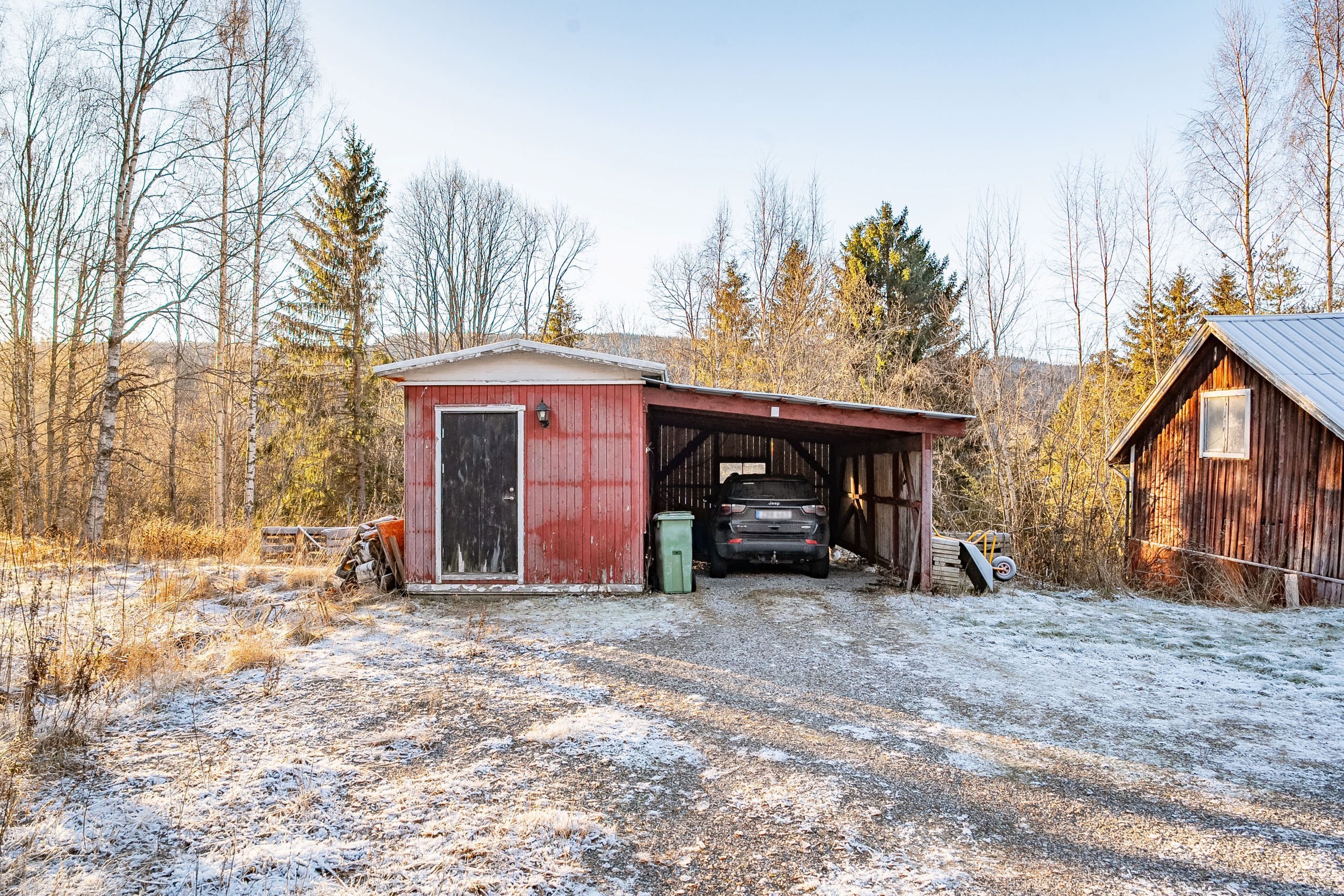 Tomten om ca 5 200 kvm erbjuder gott om utrymme för odling, lek och framtida projekt. Här finns även en mindre äldre ladugård, perfekt som loge, förvaring eller kanske en stämningsfull matplats för sommarens fester. En carport med tillhörande förrådsbod ger både skydd och smarta förvaringsmöjligheter.