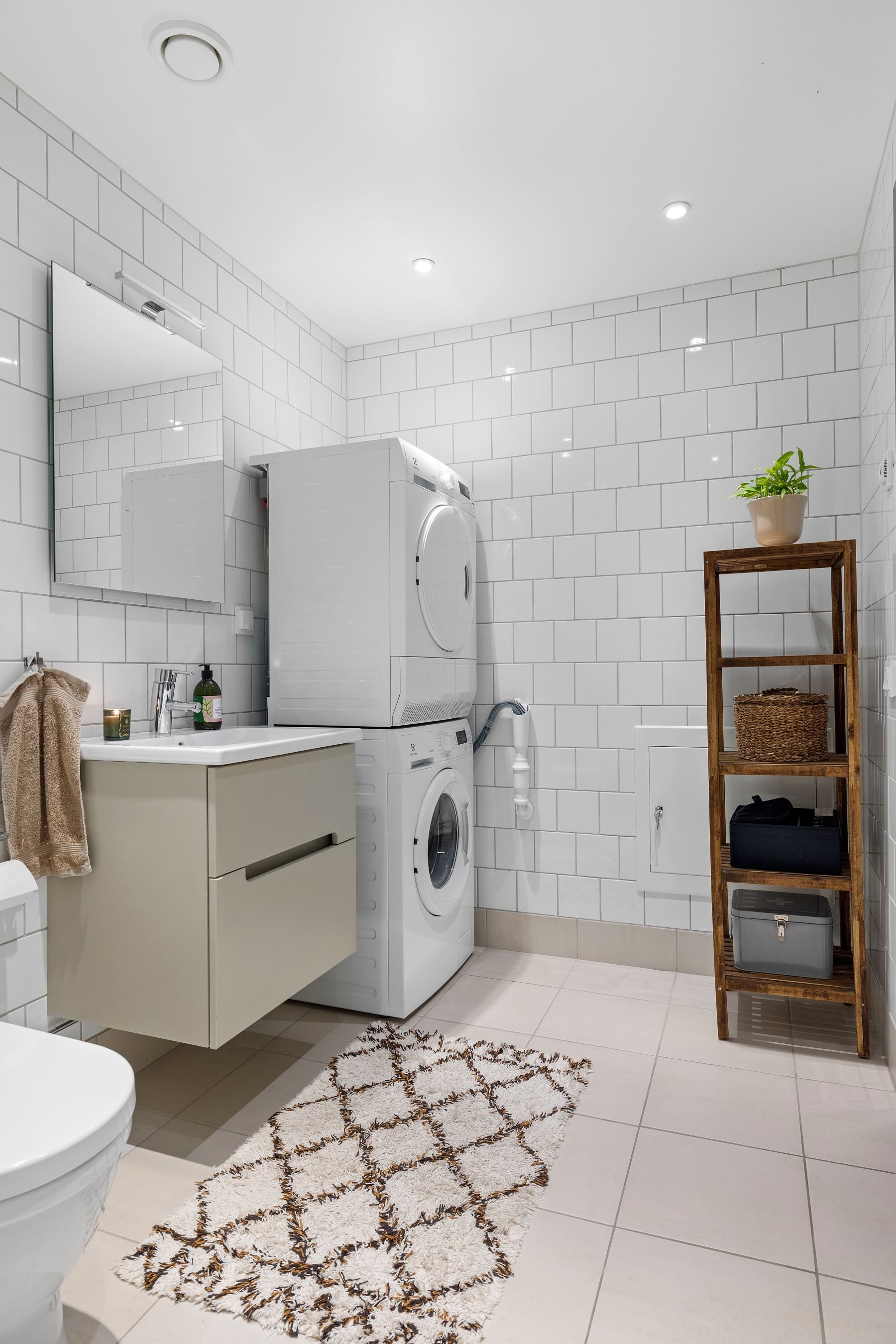 Lägenheten har ett modernt och välutrustat kök med diskmaskin, kyl/frys, induktionshäll, fläkt, mikro samt varmluftsugn med ångfunktion. Smart planlösning gör att lägenheten är mycket lättmöblerad med plats för matbord, soffmöblemang samt TV-möbel. Här kan man samla familjen eller kompisgänget för trivsamt umgänge. Den rymliga sovalkoven har gott om plats för dubbelsäng och här finns en stor garderob för förvaring. Det stora exklusiva badrummet har duschhörna, handfat i kommod, spegel, handdukstork samt tvättpelare. Balkongen har storslagen utsikt över Bällstaån och har plats för både loungemöbel samt kaffébord och stolar. Föreningen har en välutrustad tvättstuga samt relaxavdelning med bastu, föreningslokal samt garage.