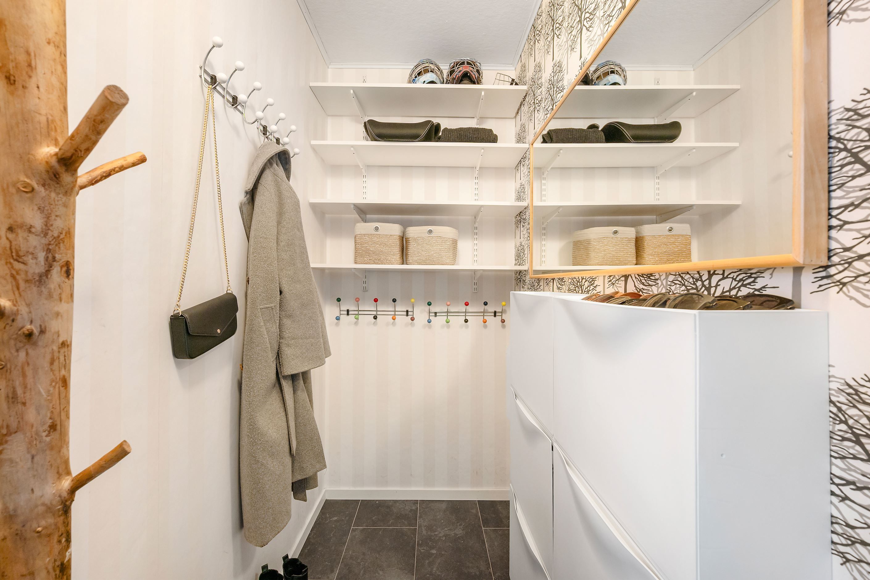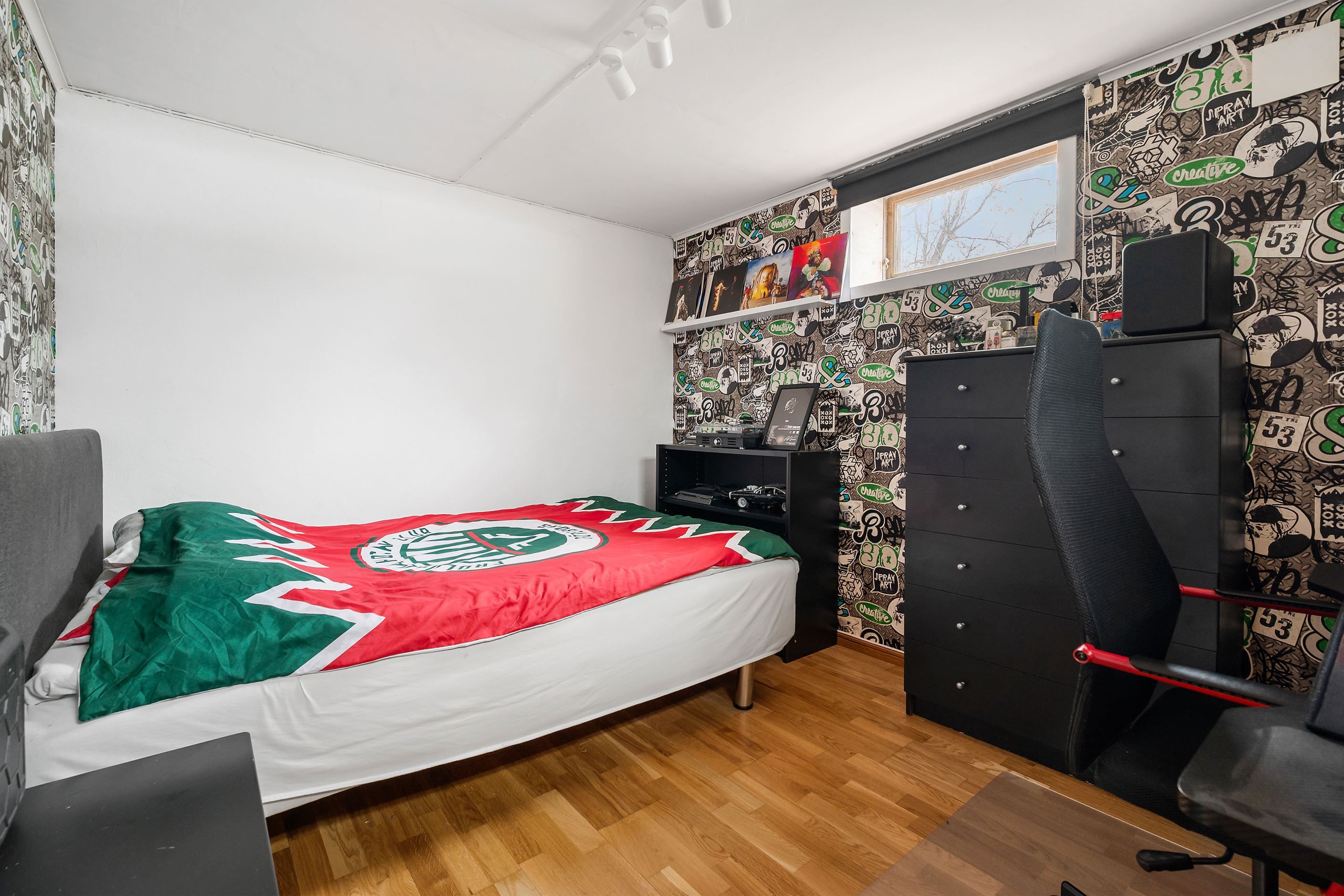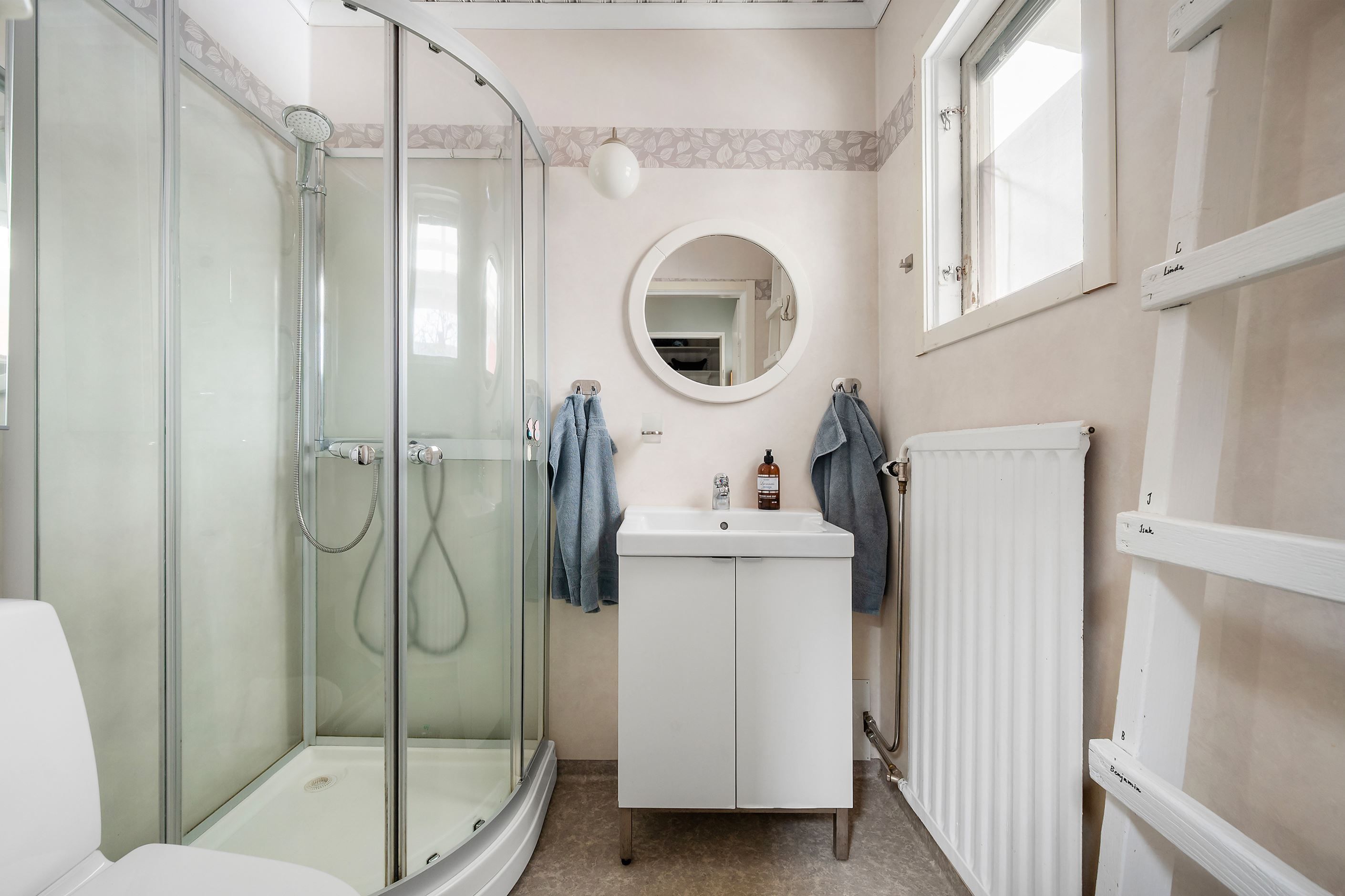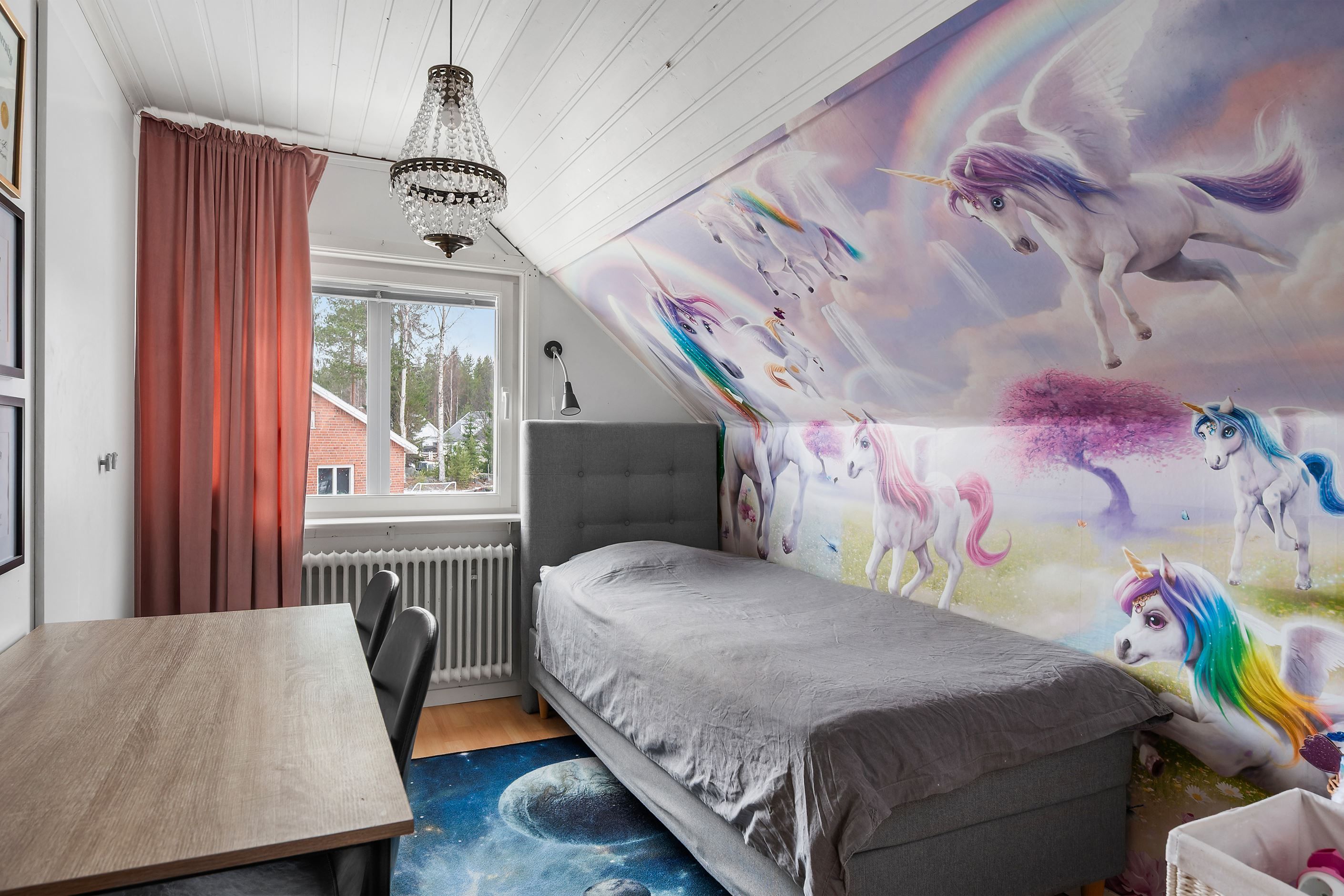 På övre plan finns två sovrum samt en renoverad toalett (februari 2026). I samband med detta byttes även stammar från kök upp till toaletten – en trygg och värdefull uppdatering. Ett större sovrum har tidigare delats av för att skapa två mindre (2012), vilket ger totalt fyra sovrum i huset – perfekt för barnfamiljen eller för dig som vill kombinera sovrum och hemmakontor.