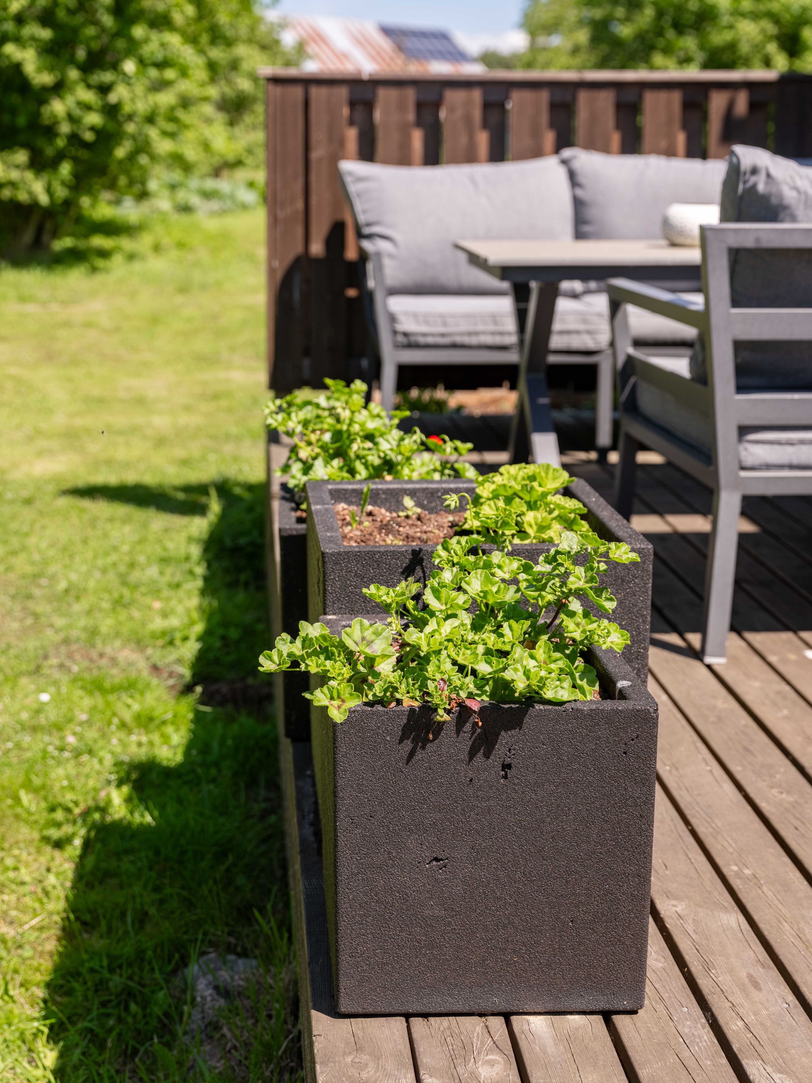 Utemiljön är en lika självklar del av vardagen som interiören. Två uteplatser gör det lätt att följa solen, vinden eller stämningen. Den skyddade parkeringen med tillhörande förråd gör vardagen enkel, och gästparkeringen intill välkomnar nära och kära.