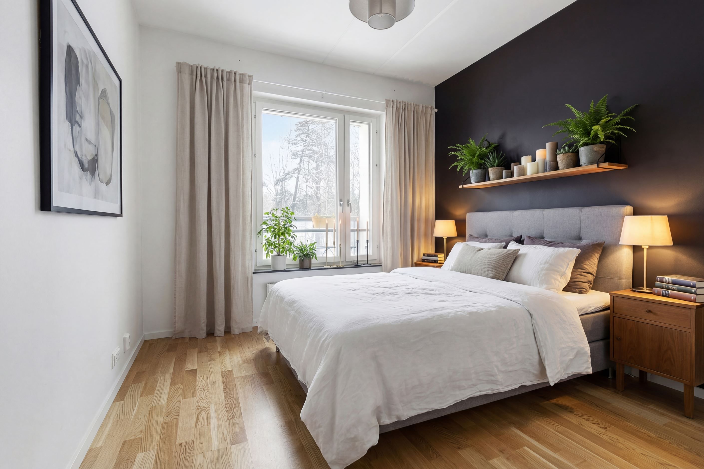 - Fantastisk 2:a från 2012 med modernt kök och öppen planlösning med stora fönsterpartier. Lyxigt badrum med egen tvättstuga och fina materialval. Svart kök med matchande fondvägg av svart natursten i vardagsrummet. Generösa sociala ytor med härligt ljus från de stora fönsterpartierna i högt och fritt läge. Mysig balkong med privat läge i nord-väst mot skogsparti. Sovrum som rymmer dubbelsäng och sängbord på vardera sida och en klädkammare i nära anslutning till sovrum samt badrum. Det stora vardagsrummet och den öppna planlösningen ger dig flertalet möbleringsalternativ. Här kan du duka upp ett festligt långbord och/eller ha större möbelgrupper samt hemmakontor.
