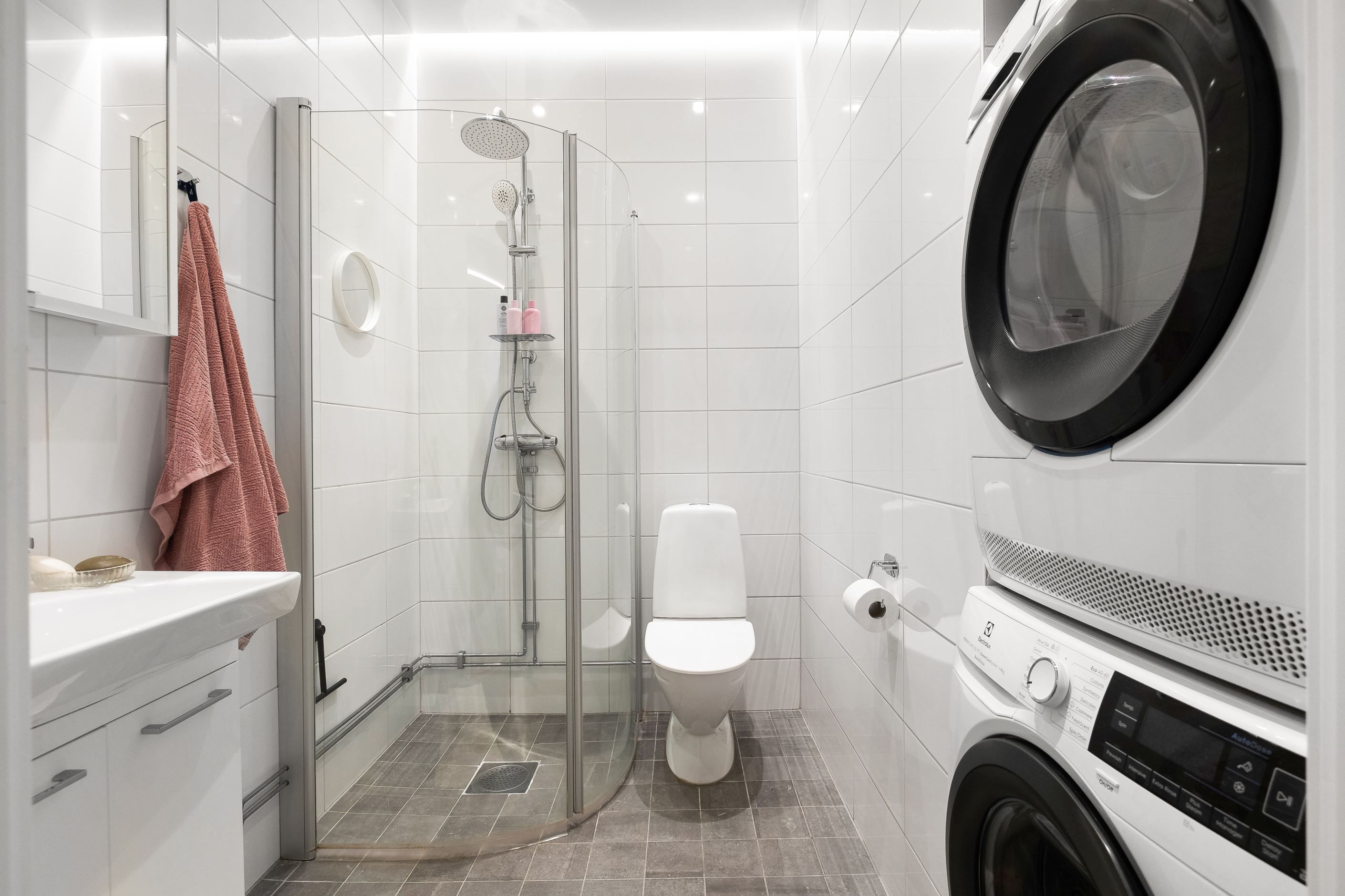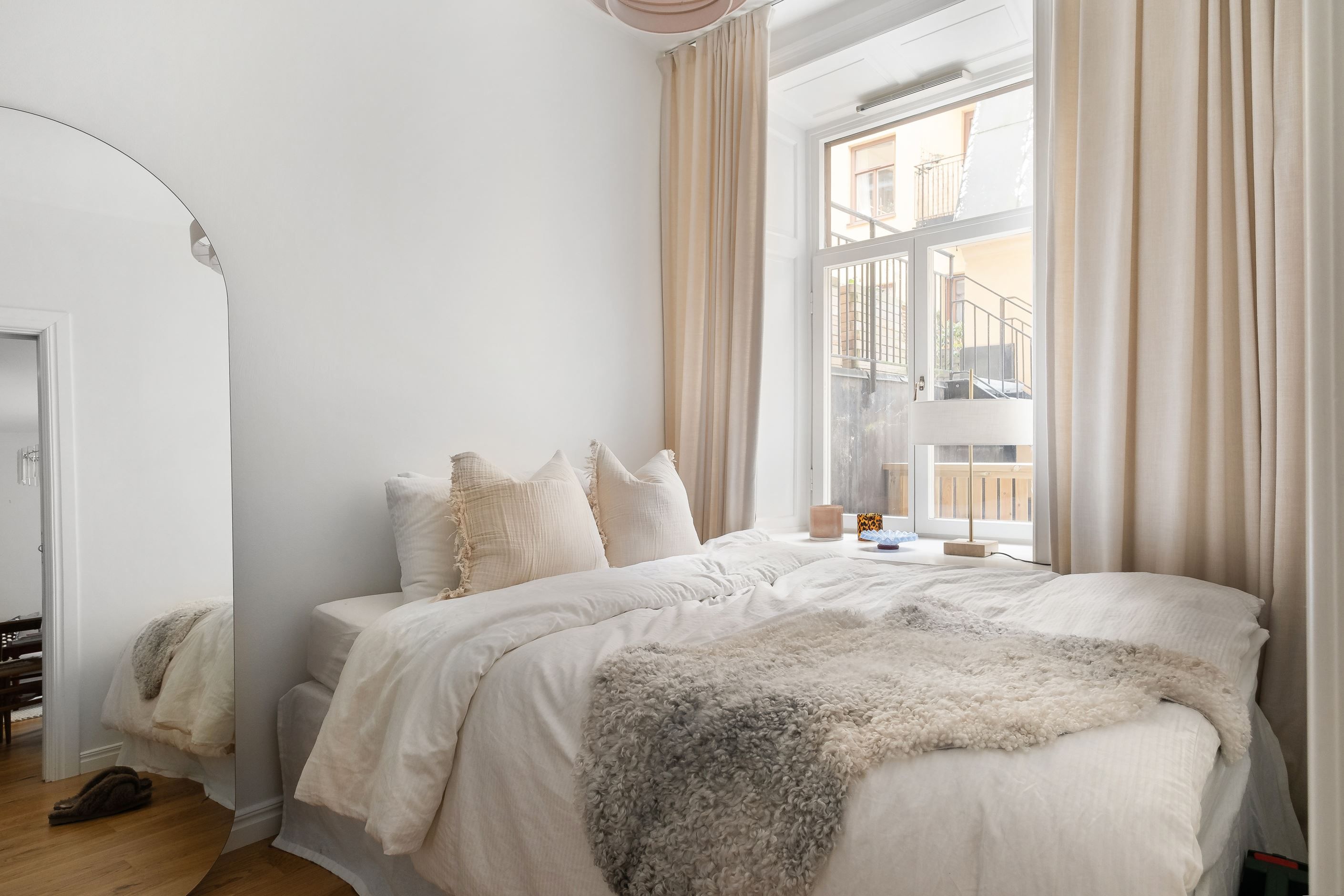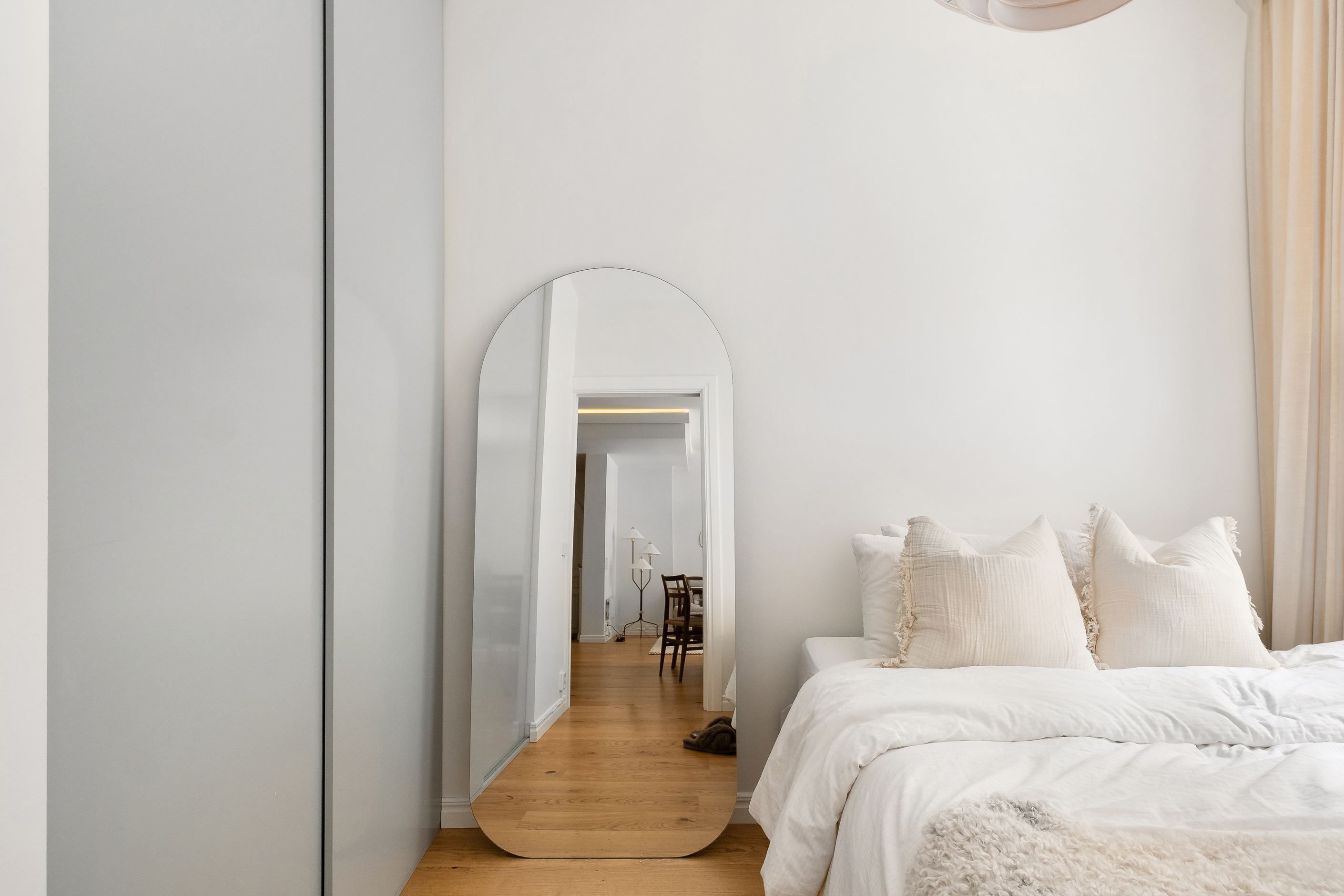 Vardagsrummet är lättmöblerat med gott om plats för både matgrupp och soffgrupp samt ytterligare möbler vid behov. Sovrummet är rofyllt med ett stort fönster som släpper in rikligt med ljus och erbjuder god förvaring i en stilren skjutdörrsgarderob. Det rymliga badrummet är helkaklat och utformat i en modern och funktionell stil.