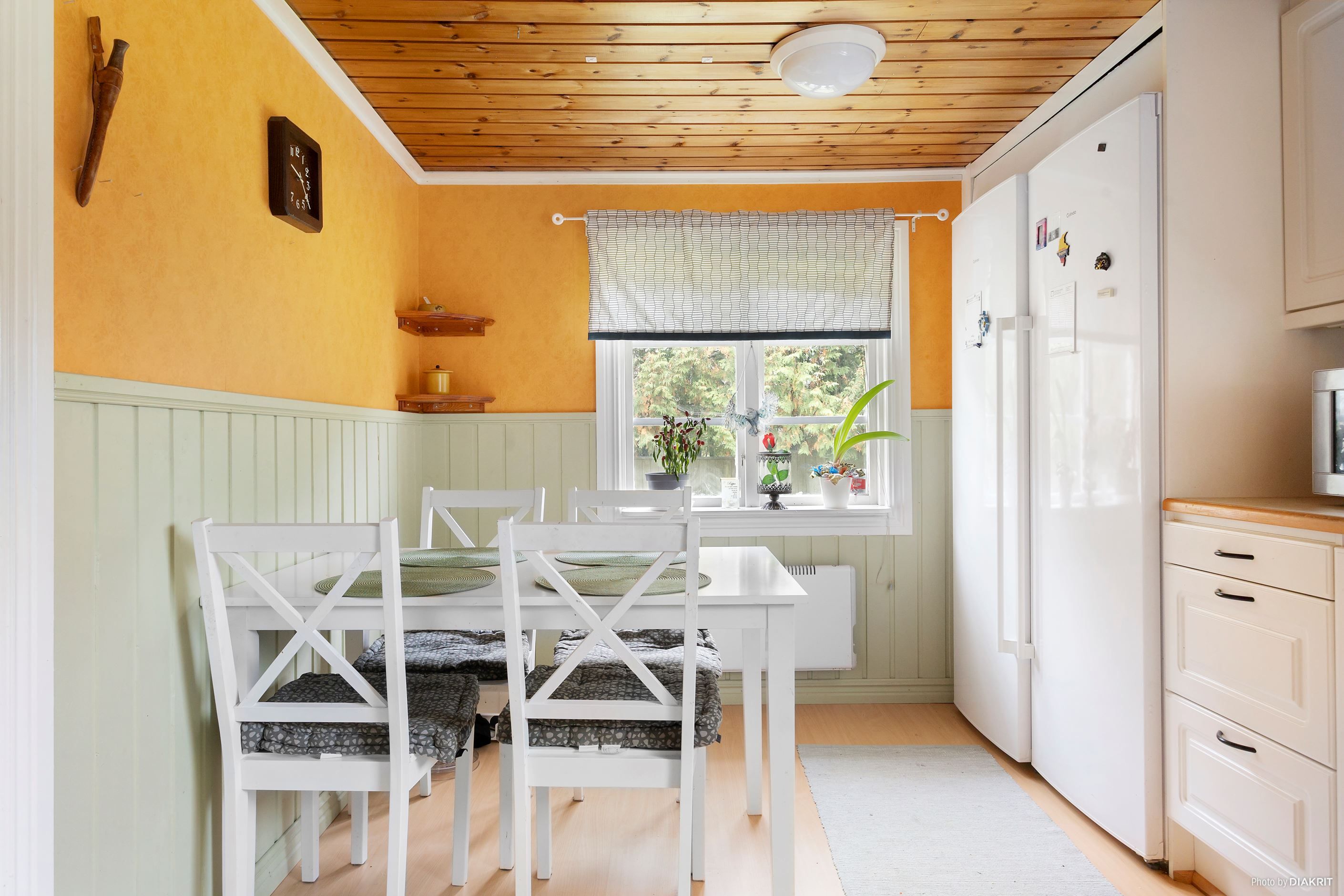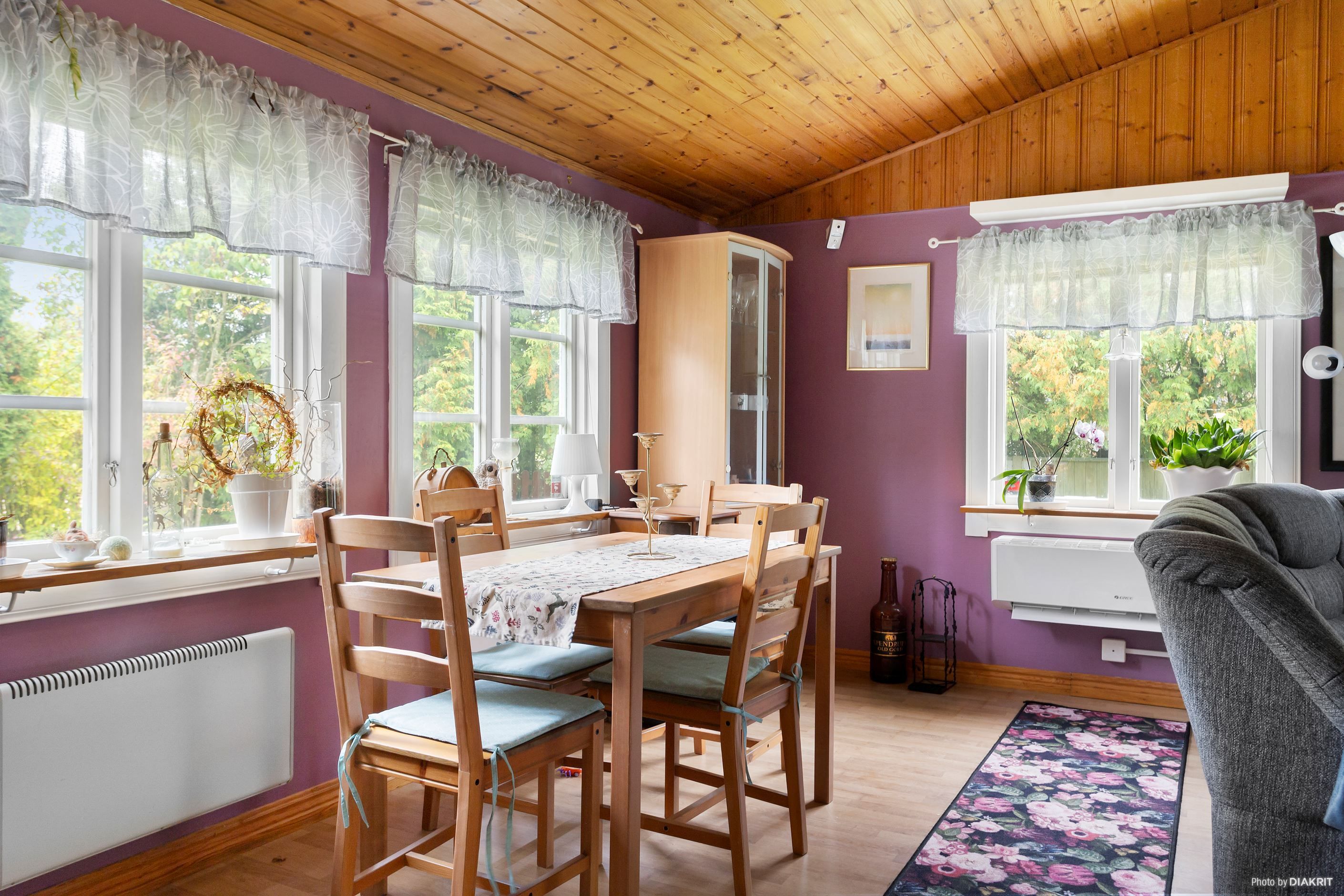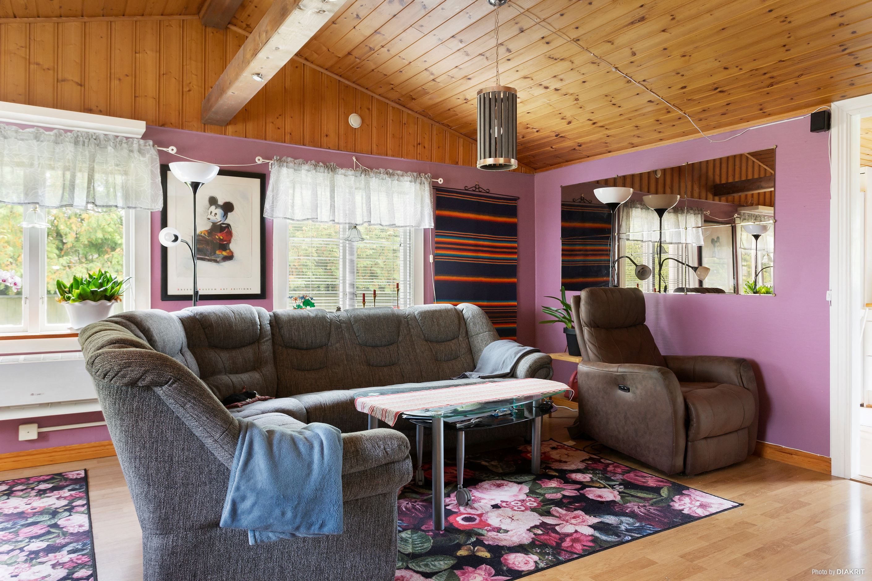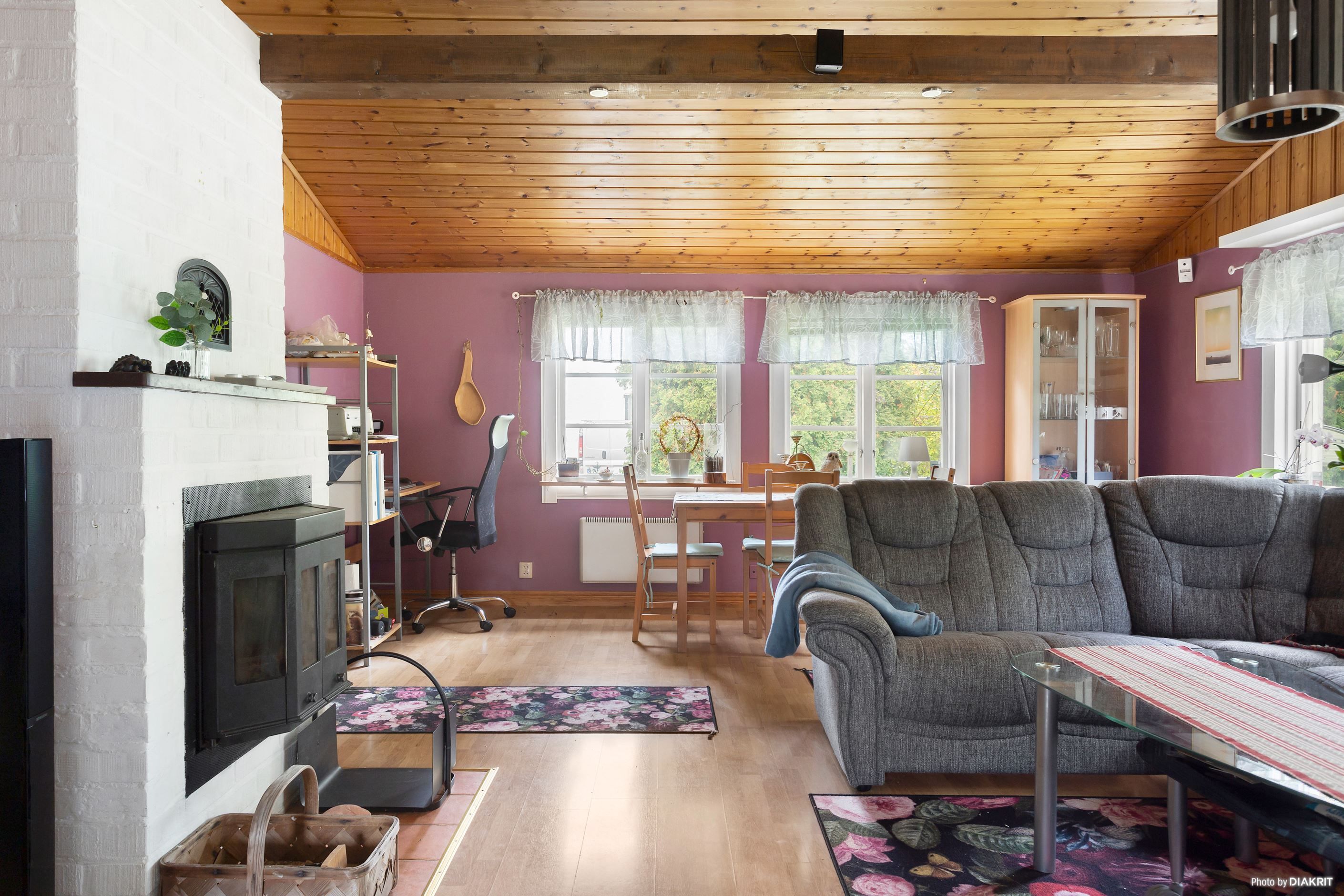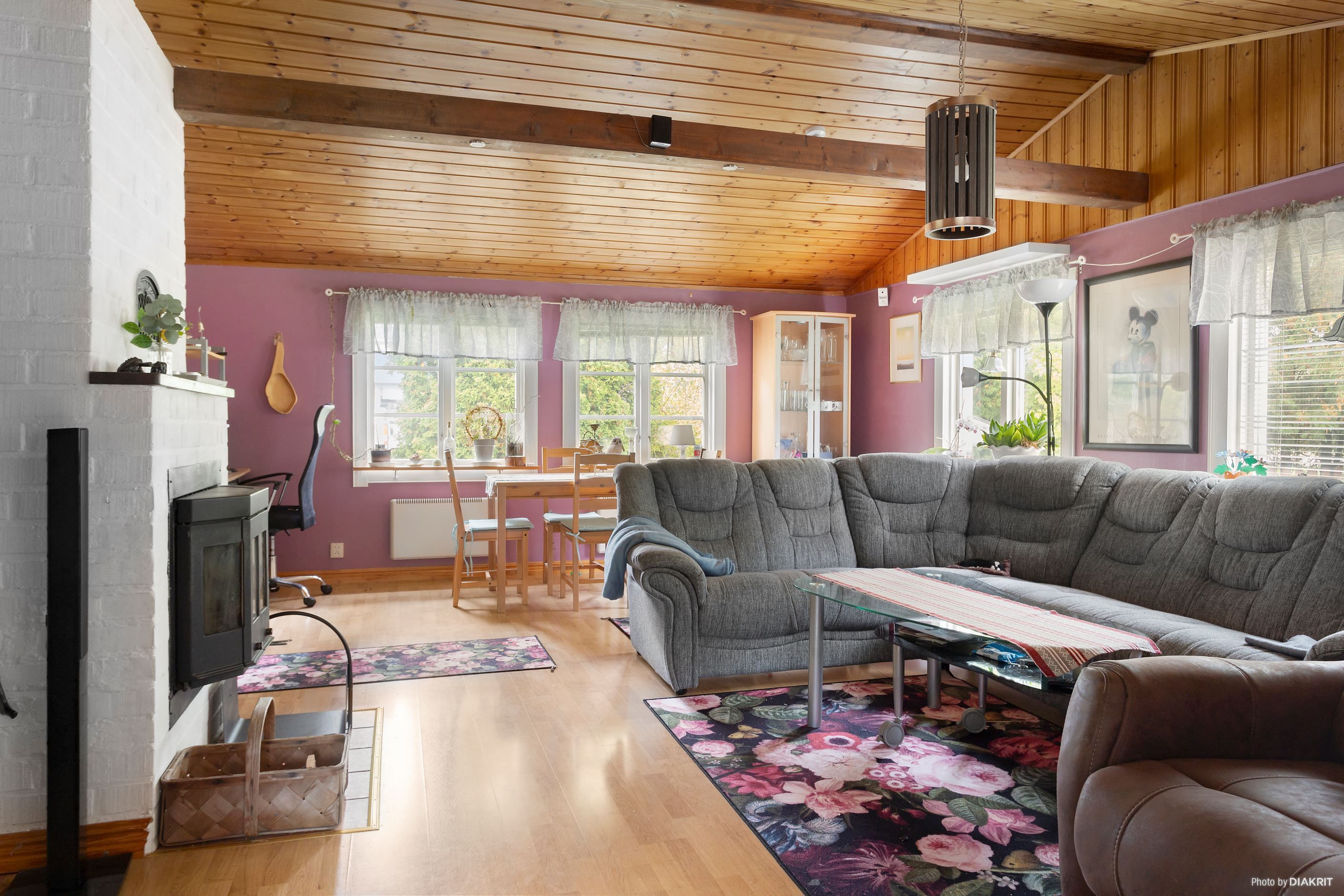 Bostaden är hemtrevlig med trevliga sociala ytor i vardagsrum och kök medans de mer privata ytorna finns avskilda i andra delen av huset.