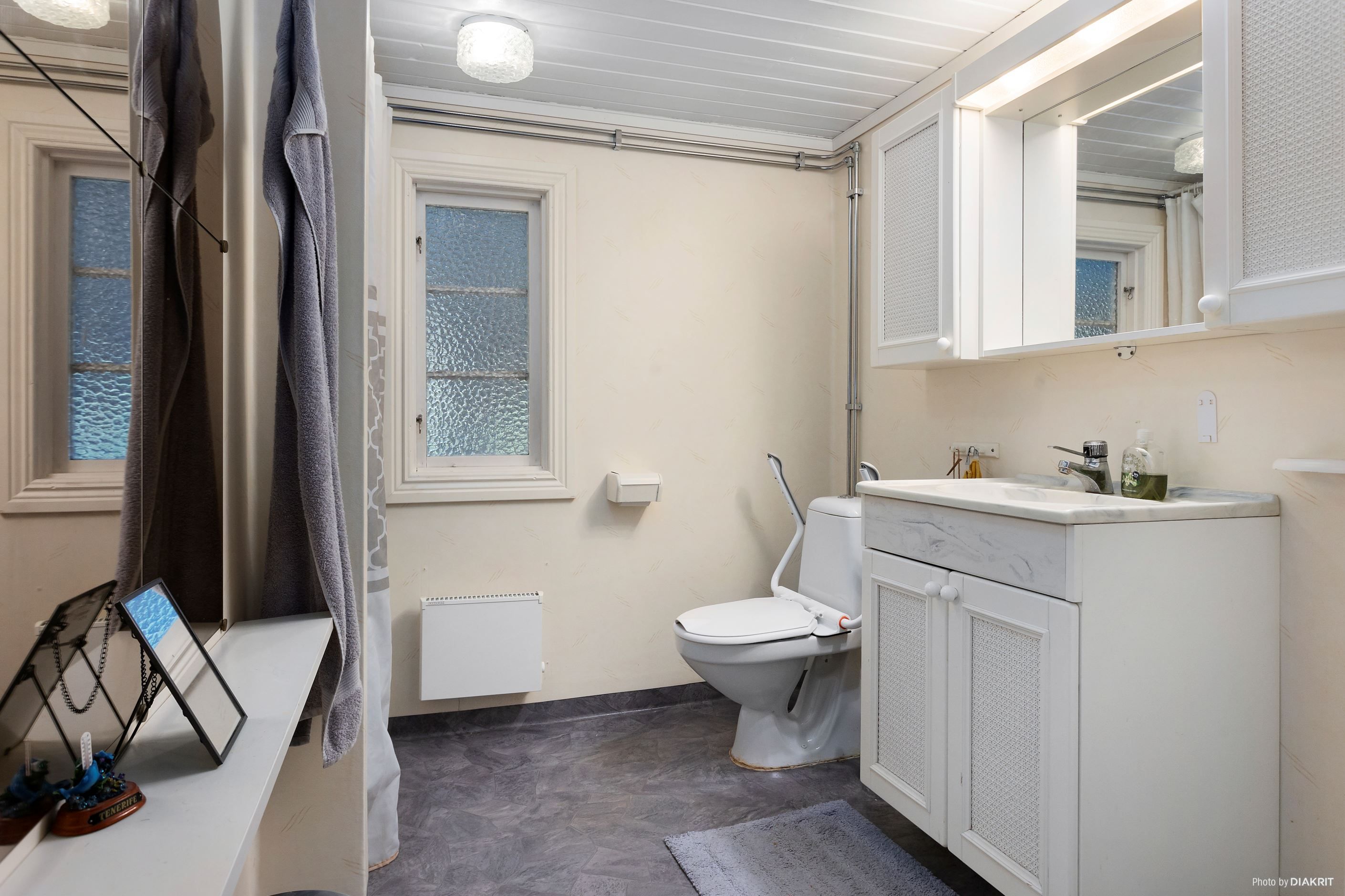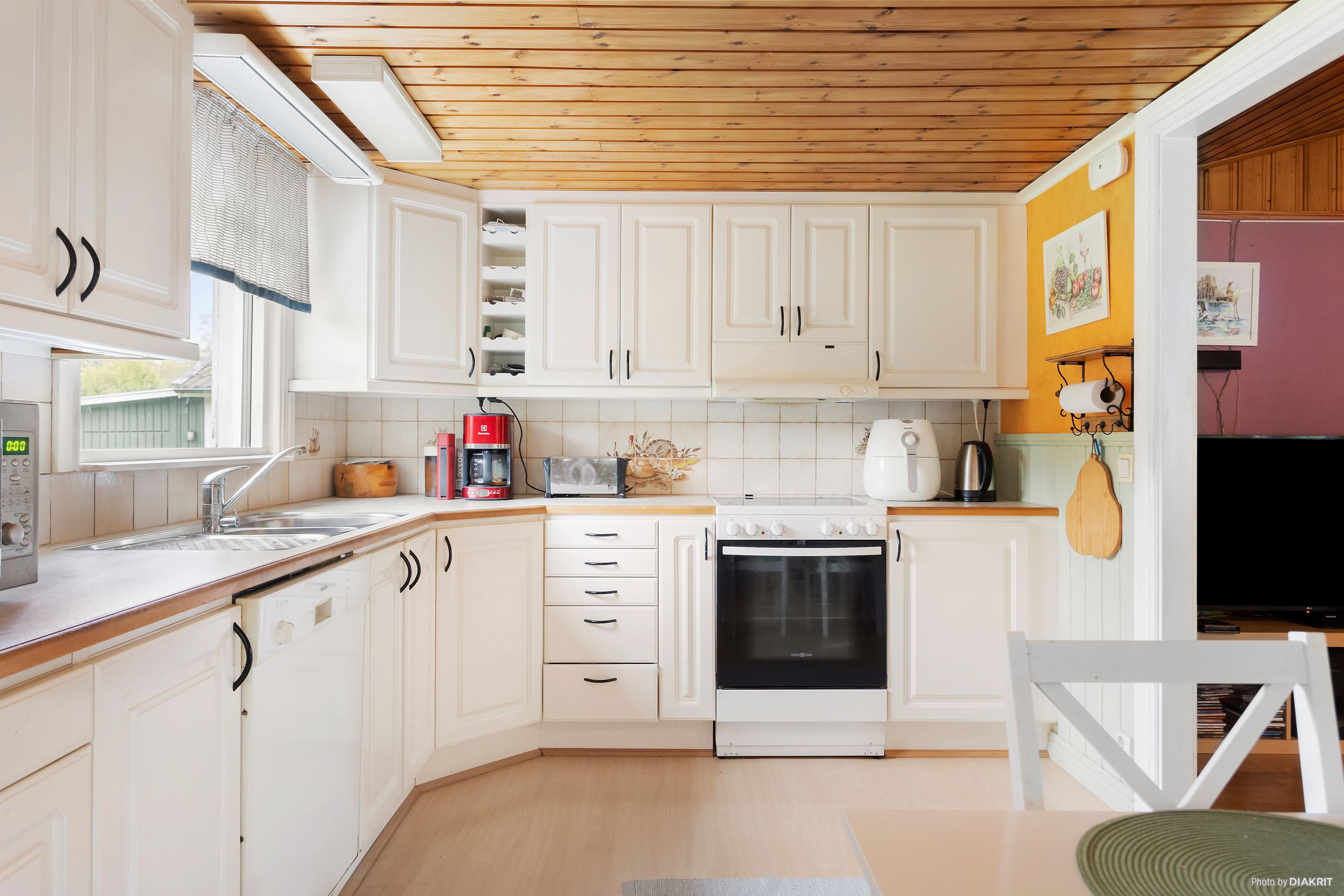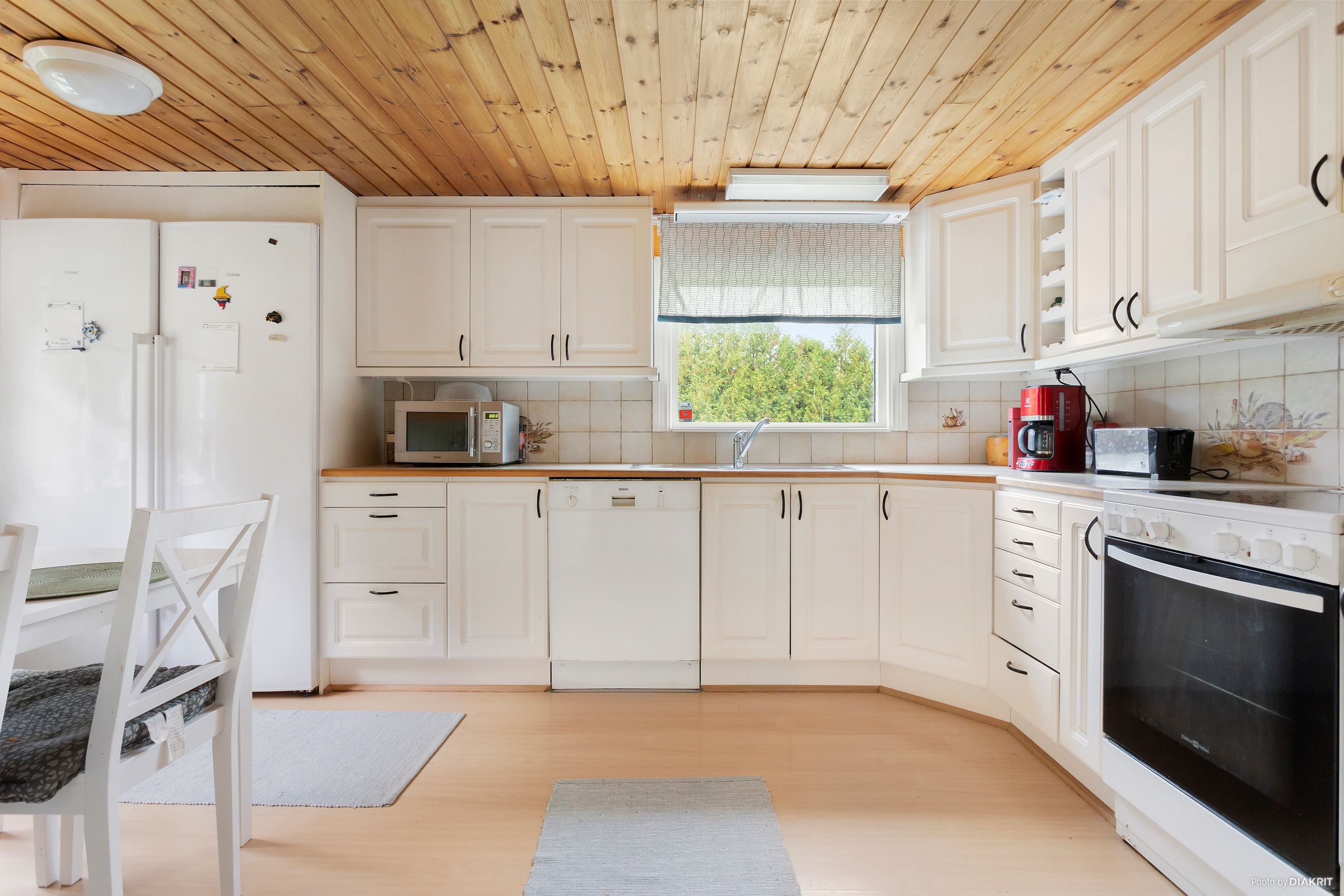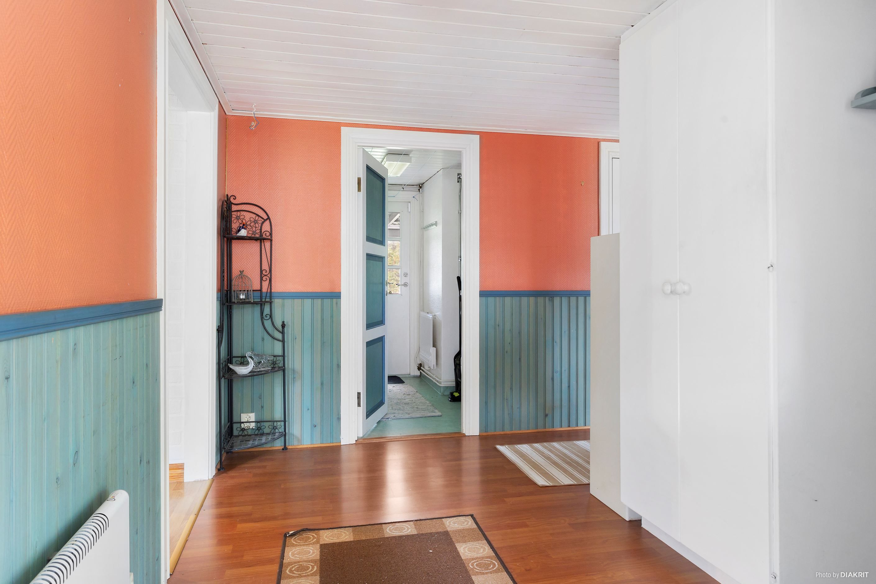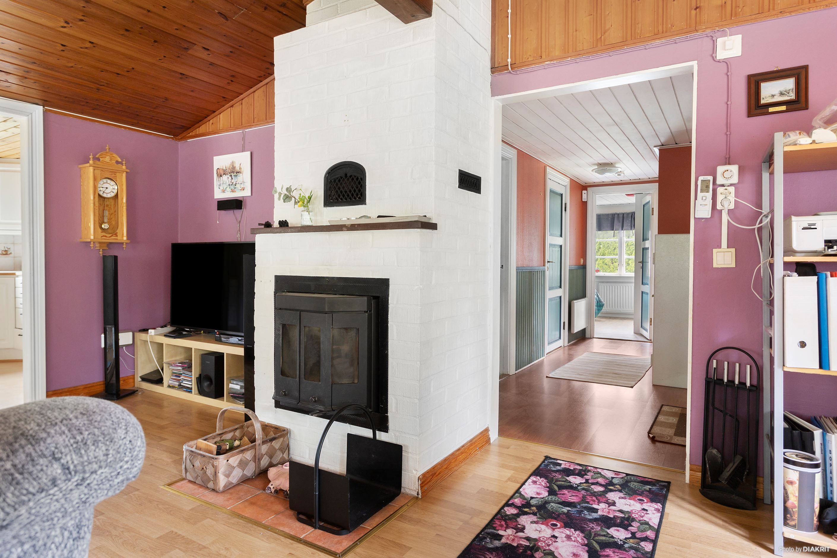 Bostaden är hemtrevlig med trevliga sociala ytor i vardagsrum och kök medans de mer privata ytorna finns avskilda i andra delen av huset.