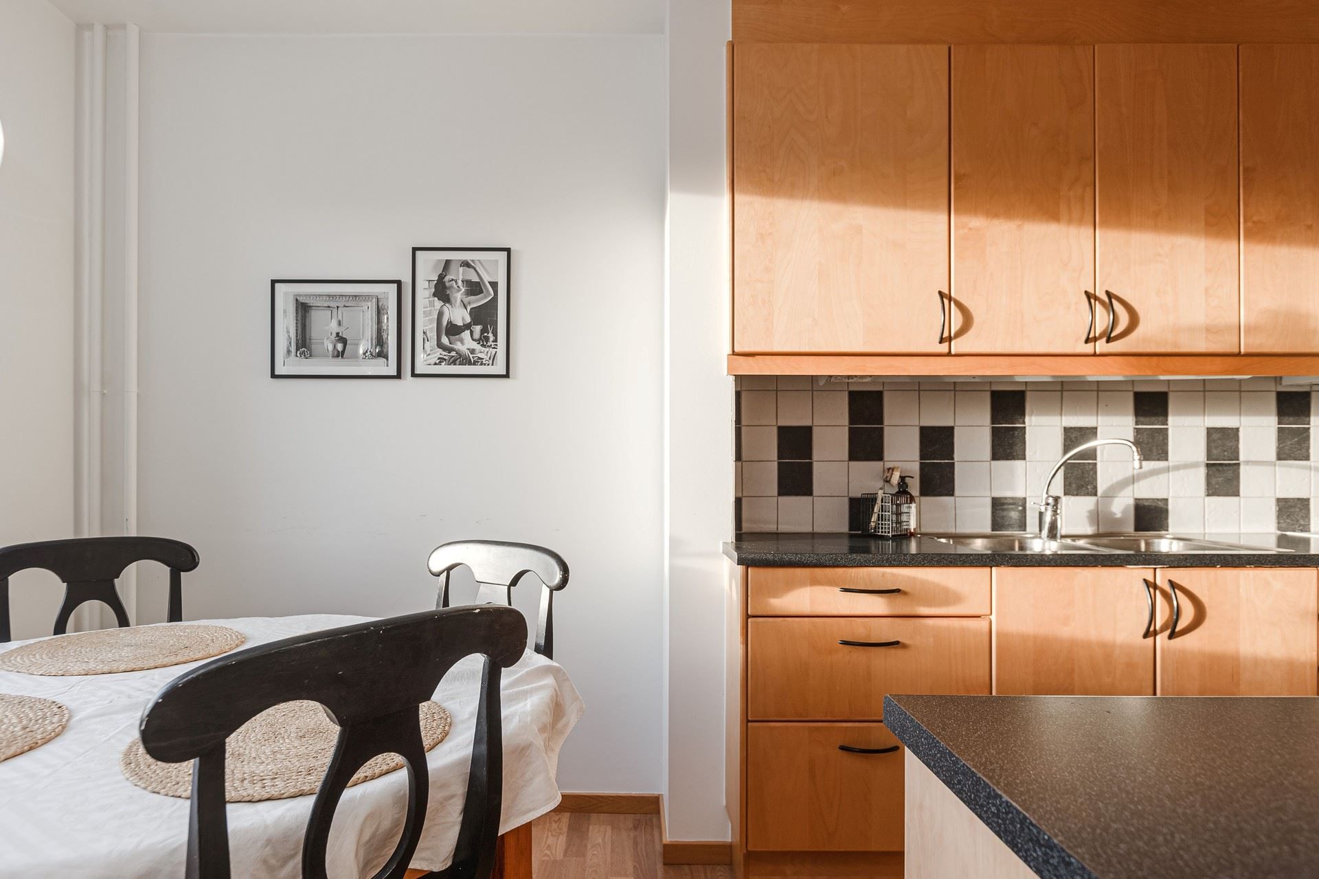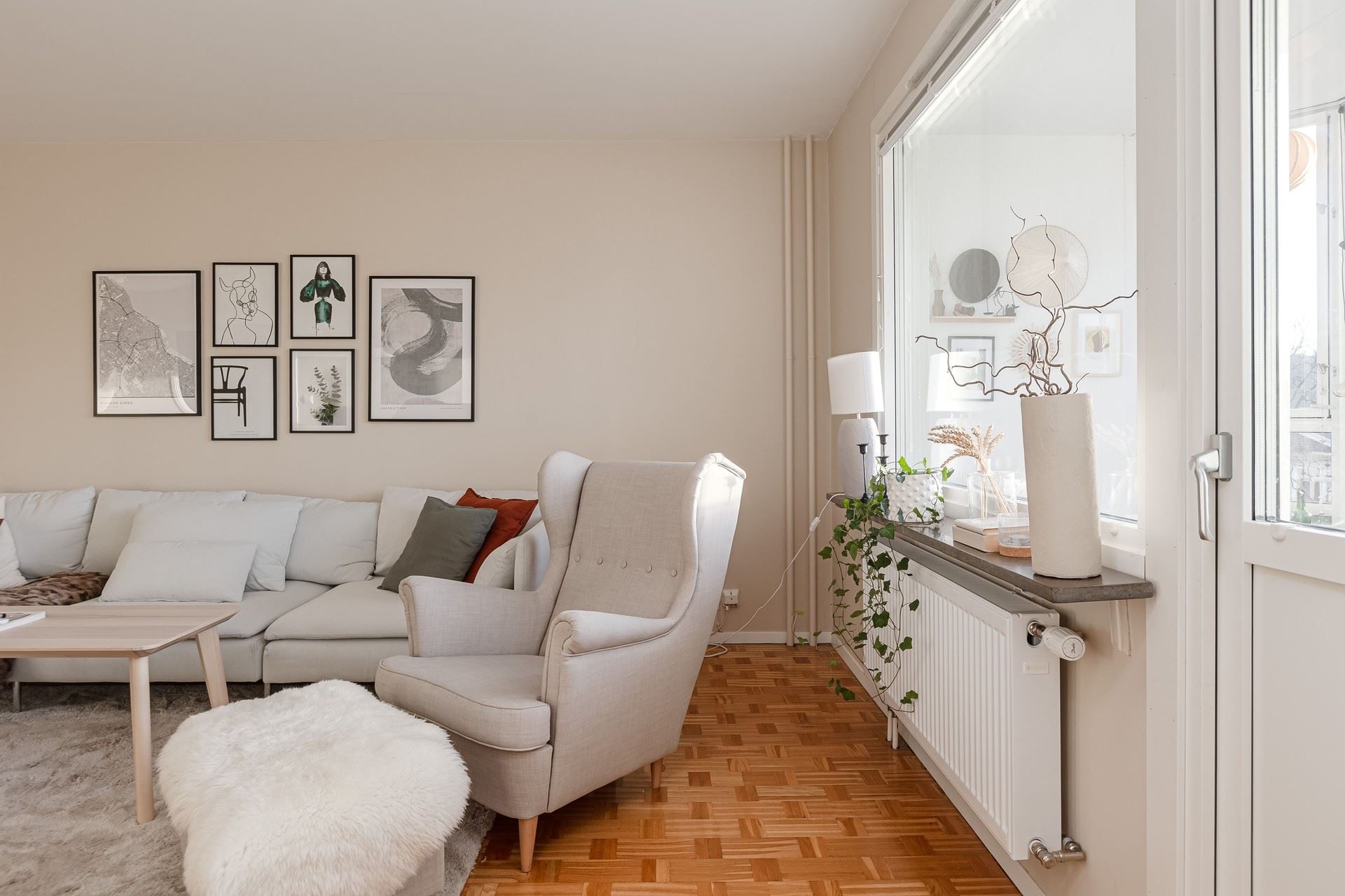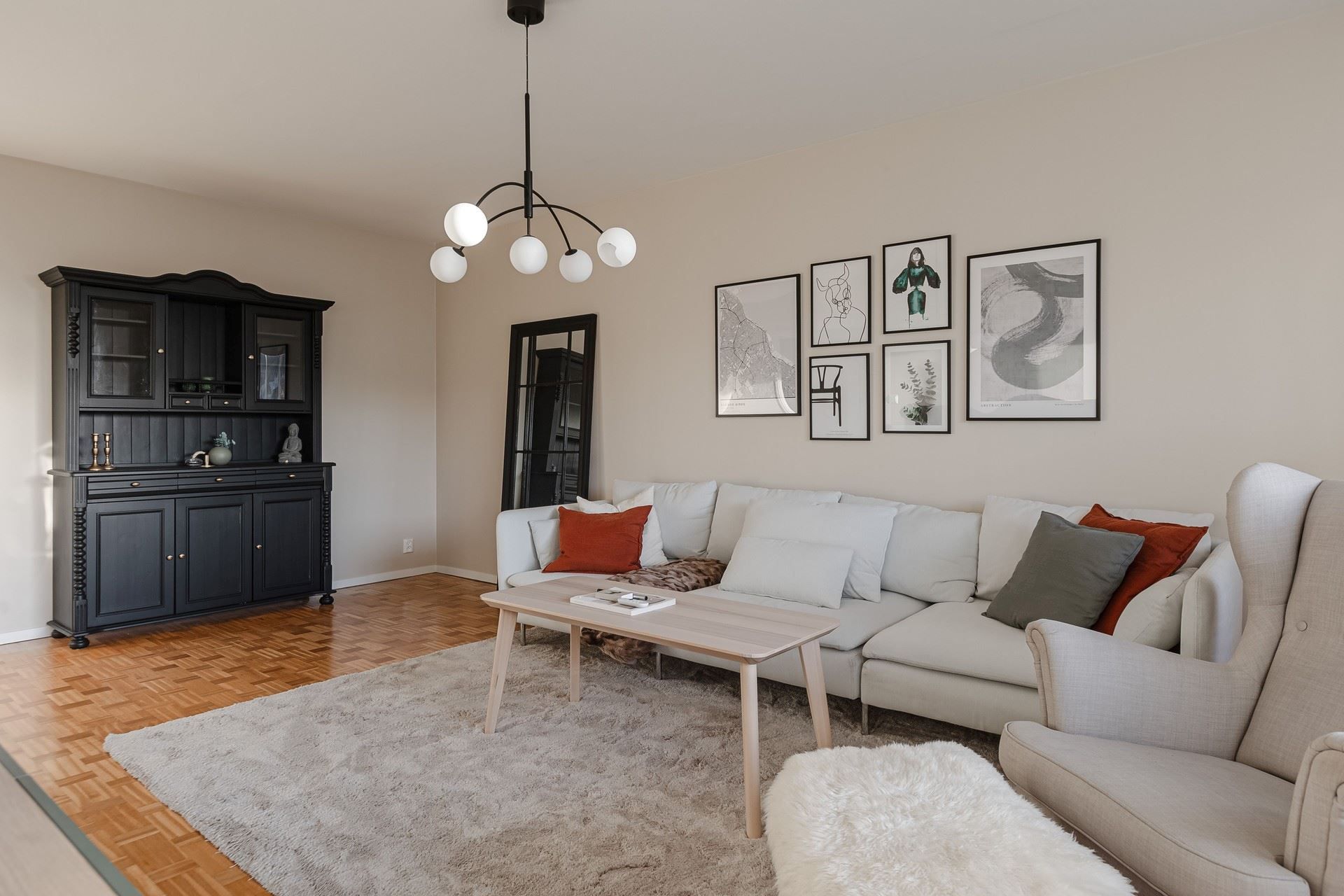 Invändigt är bostaden stilfullt renoverad med moderna materialval och en genomtänkt planlösning. Det rymliga vardagsrummet ger gott om plats för både avkoppling och middagsbjudningar, medan det trivsamma köket är redo att bli hemmets hjärta. Här finns allt du behöver för ett bekvämt och bekymmersfritt boende.