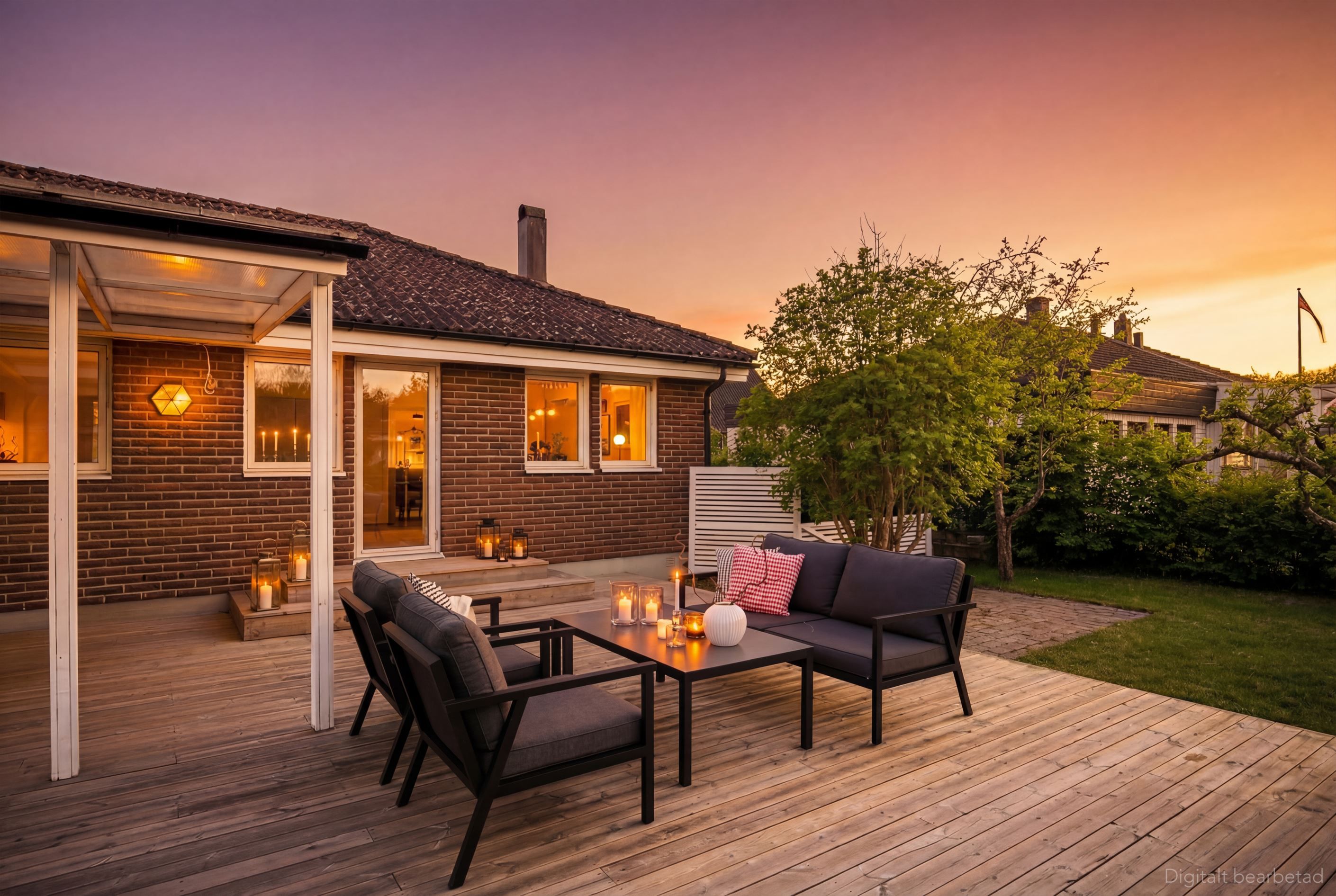 Stilrent renoverad tegelvilla med öppen planlösning, garage, påkostat kök och ett soligt altandäck!