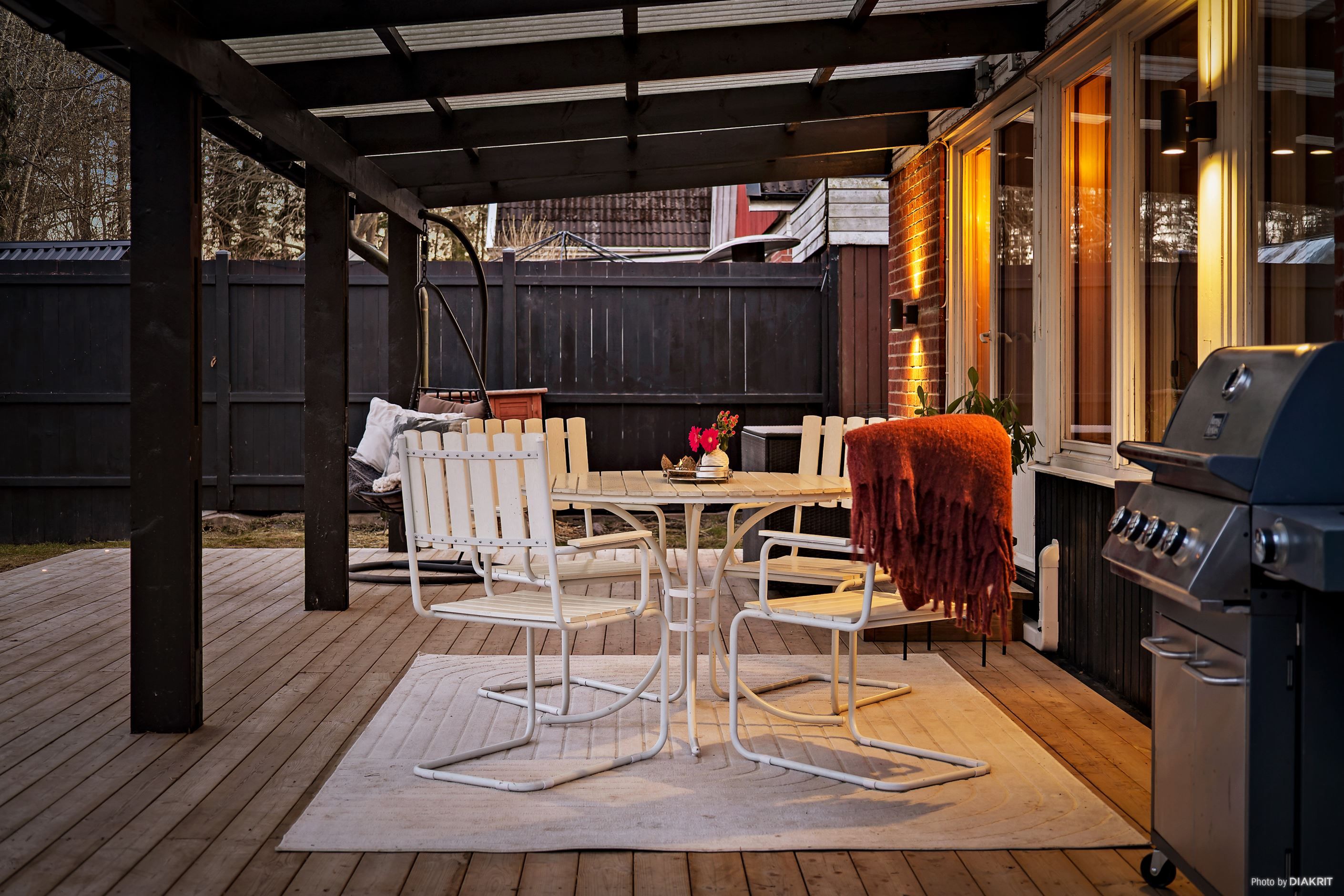 Välskött trädgård med fruktträd, bärbuskar och fin gräsmatta både på framsidan och baksidan huset bjuder in till skoj och lek. Förråd samt garageutrymme. Gångavstånd till Nacka golvbanan, Ekedalsspåret och cykelavstånd till badsjö samt Skeviksgården. Några minuters bilfärd till Norra Lagnö samt pendelbåt till City. Genväg till förskola och skola i Munkmora. Nära alla faciliteter i Gustavsbergs centrum.