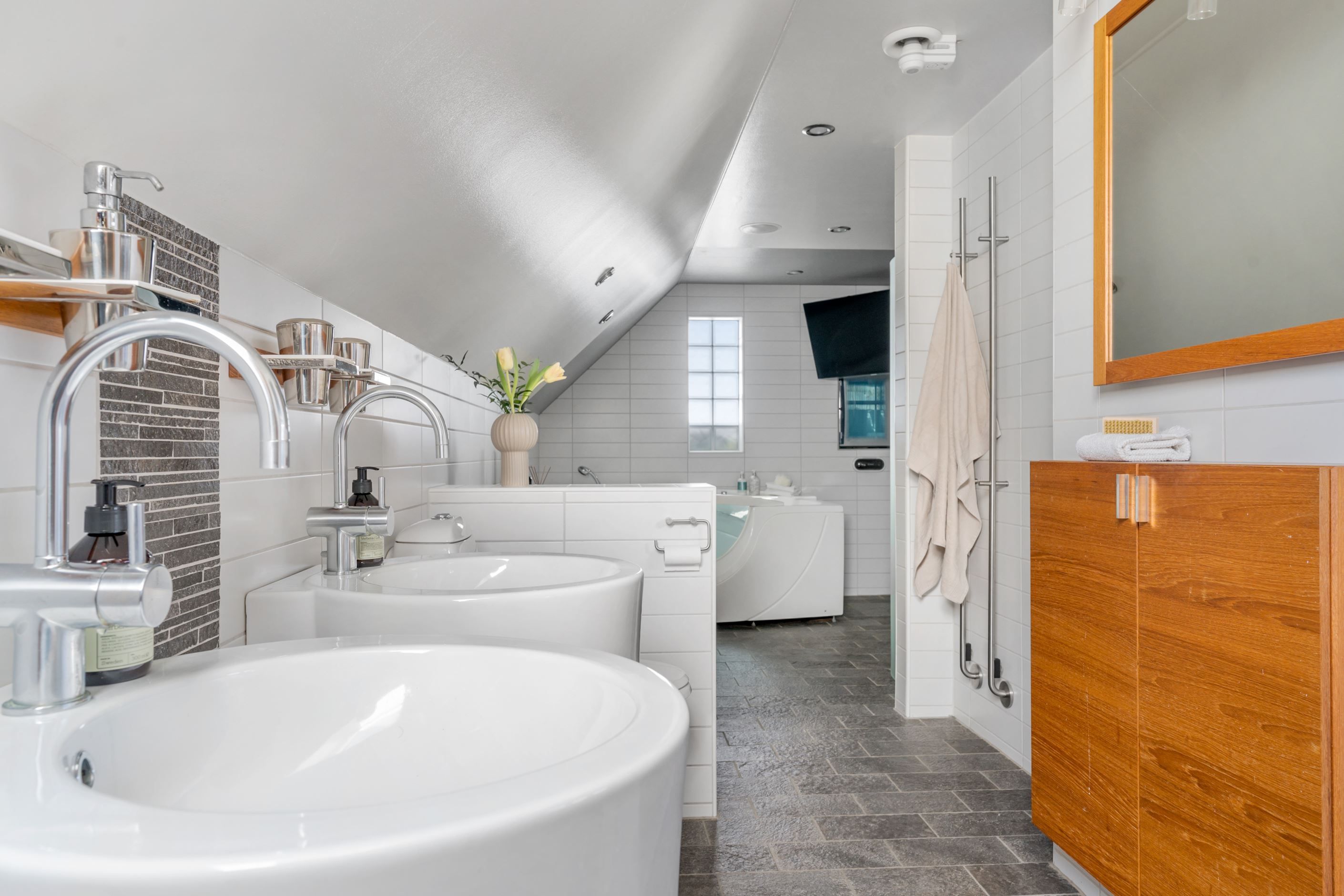 Planlösningen erbjuder dessutom flera bra sovrum, flexibla ytor som kan användas efter familjens behov samt ett tilltalande badrum på övre plan med relaxkänsla, bastu och bubbelbad, vilket ger bostaden en extra dimension. Även de praktiska kvaliteterna är många. Här finns ett rymligt garage med liten verkstadsdel, laddbox installerad för elbil samt en generös infart med plats för upp till fyra bilar, vilket gör vardagen smidig för den moderna familjen. Utöver detta finns vattenburen golvvärme i hela entréplanet, med undantag för gästrummet som har heltäckningsmatta. Sammantaget är detta ett hem som erbjuder både god funktion och hög trivselfaktor, i ett område där många gärna bor kvar länge.