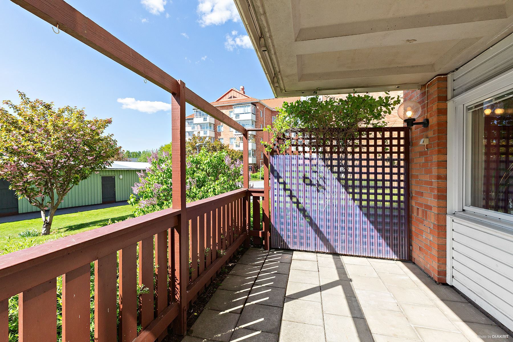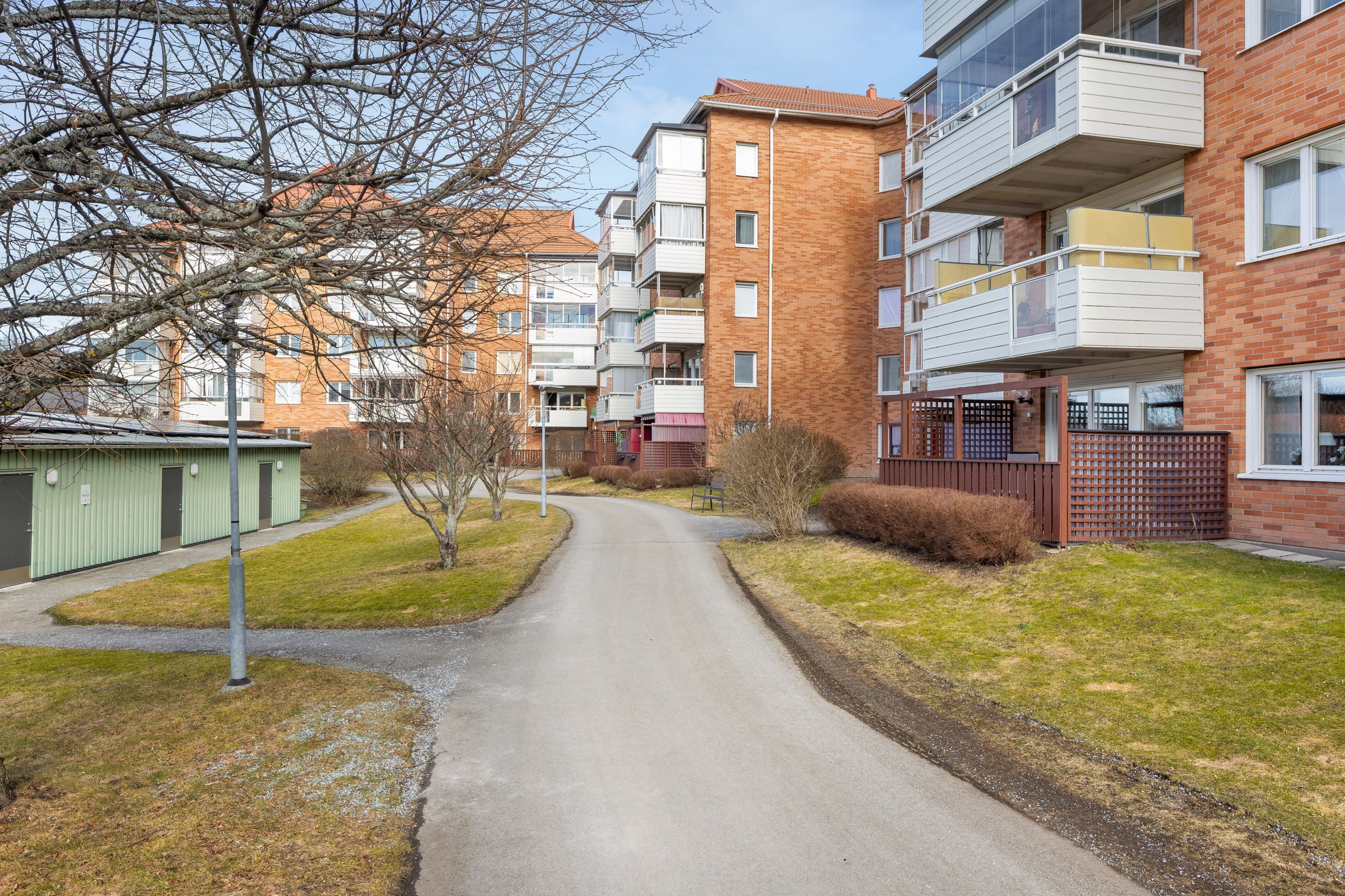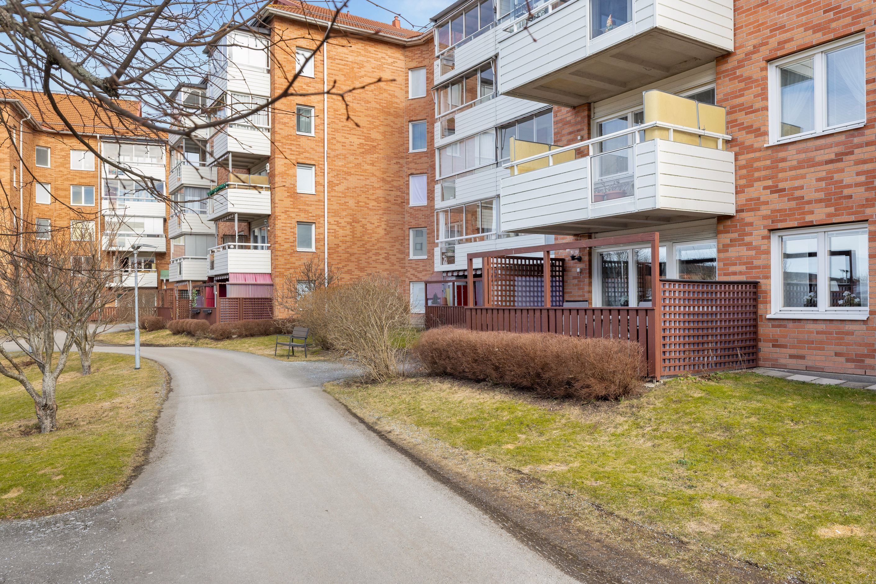 Här lever man ett bekvämt och enkelt lägenhetsliv med närhet till allt man behöver såsom mataffärer, apotek, bussar, pendeltåg, caféer, restauranger och övrigt serviceutbud. Lägenheten erbjuder en hall med gott om avhängningsmöjligheter, badrum med dusch och förberett för tvättmaskin, sovalkov, rymligt kök med matplats och ett vardagsrum med utgång till den stora uteplatsen.