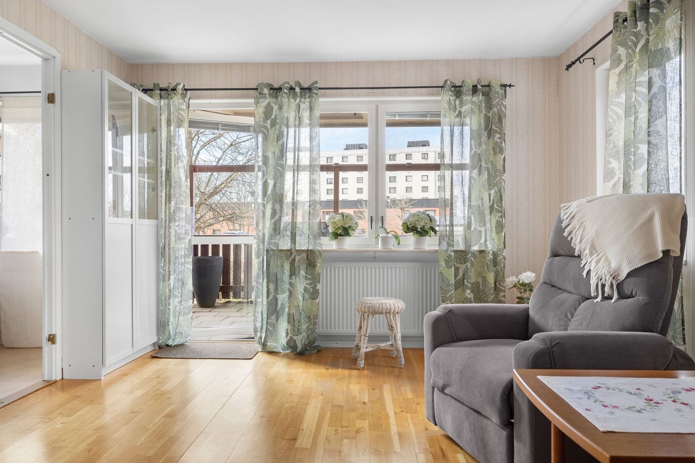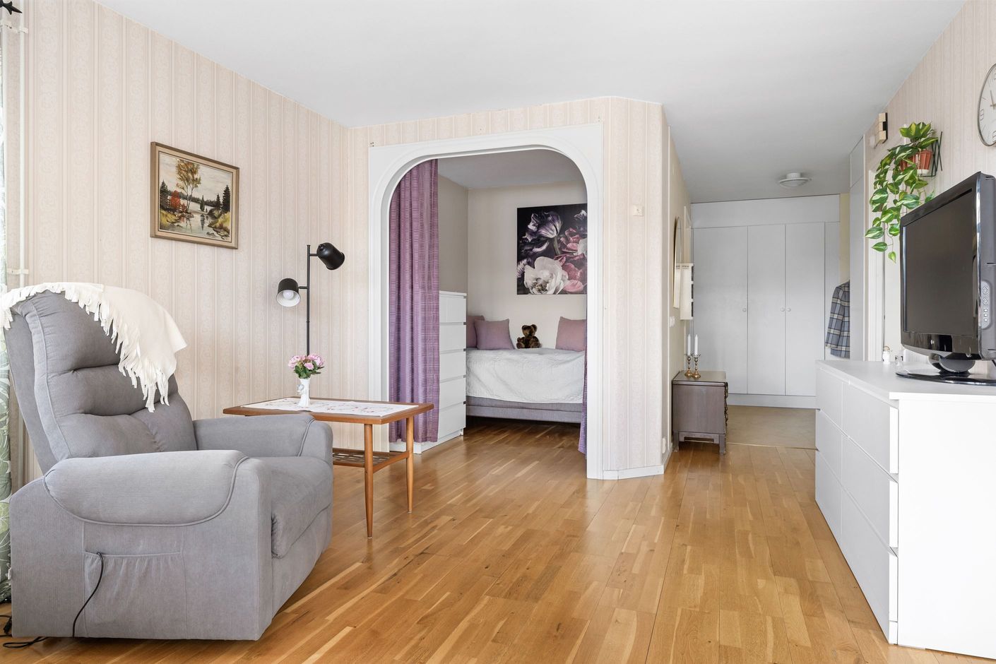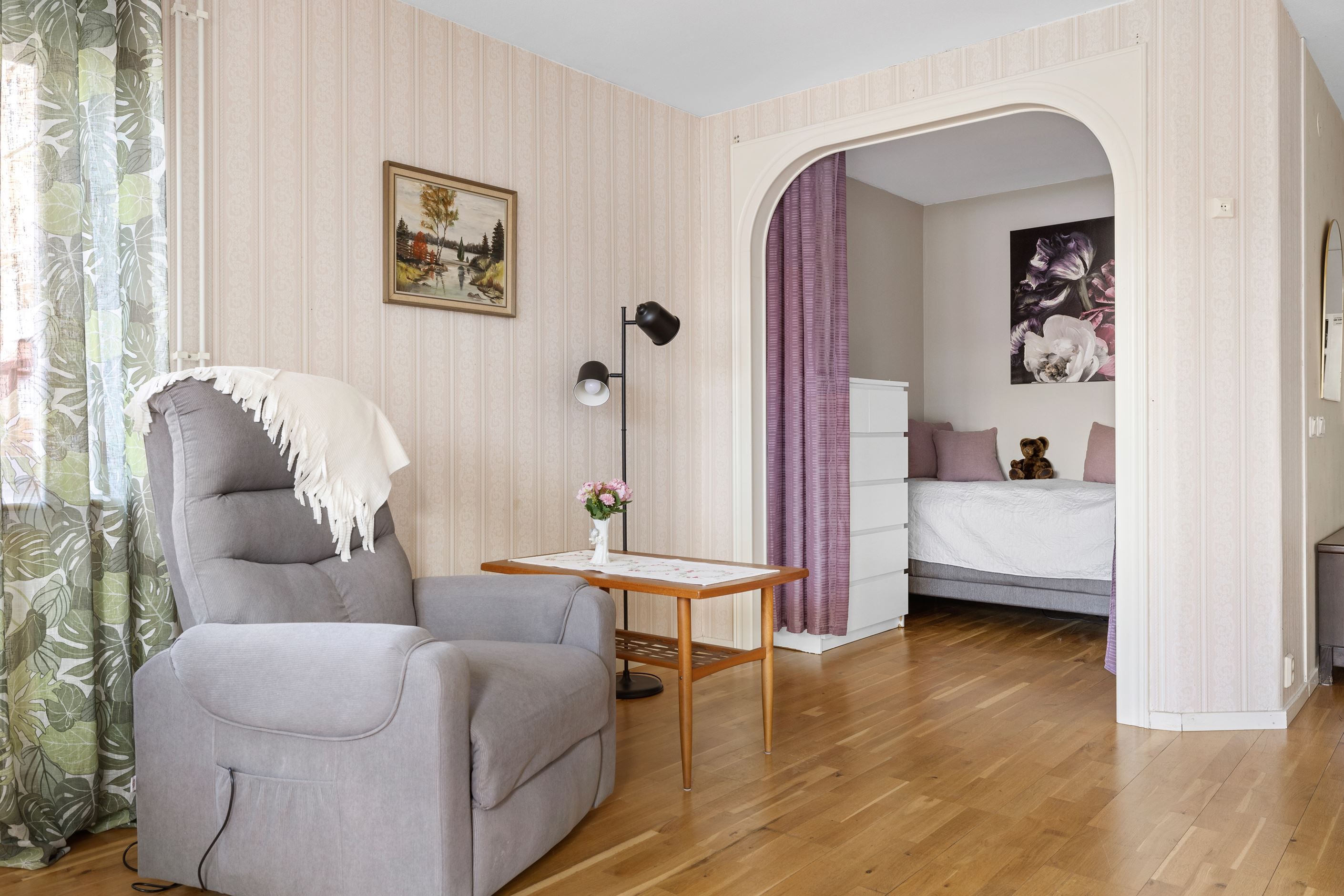 Här lever man ett bekvämt och enkelt lägenhetsliv med närhet till allt man behöver såsom mataffärer, apotek, bussar, pendeltåg, caféer, restauranger och övrigt serviceutbud. Lägenheten erbjuder en hall med gott om avhängningsmöjligheter, badrum med dusch och förberett för tvättmaskin, sovalkov, rymligt kök med matplats och ett vardagsrum med utgång till den stora uteplatsen.