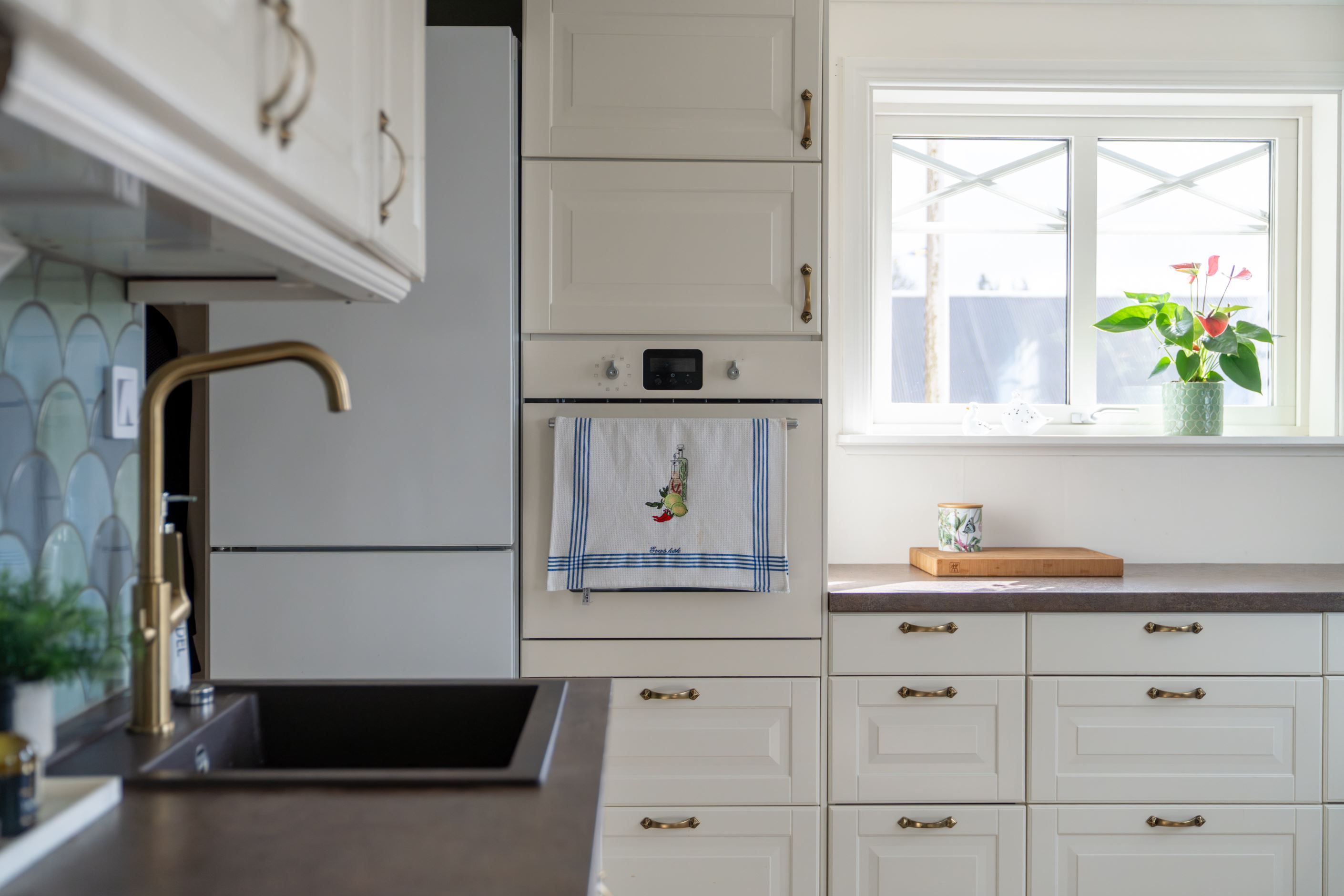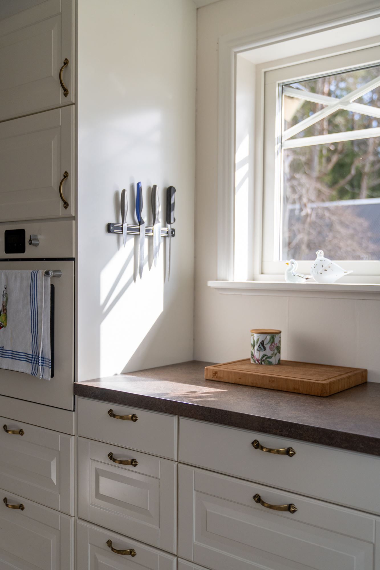 Det stilrena köket har nyligen smakfullt förnyats med ny keramikhäll, köksbänk, kran/blandare och belysning under köksskåpen. Köket erbjuder gott om förvaring och generösa arbetsytor. Här finns plats för ett större matbord och fönster i två väderstreck som skapar en ljus och inbjudande matplats.