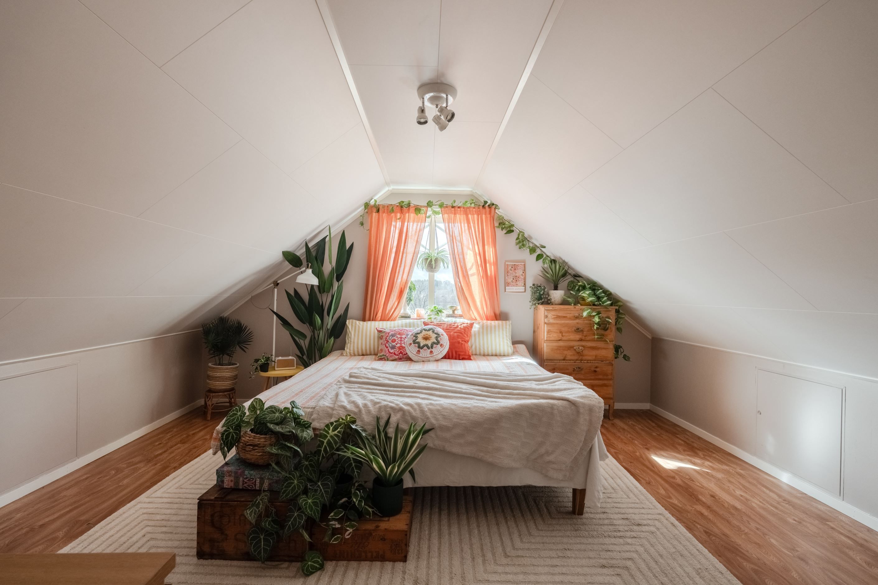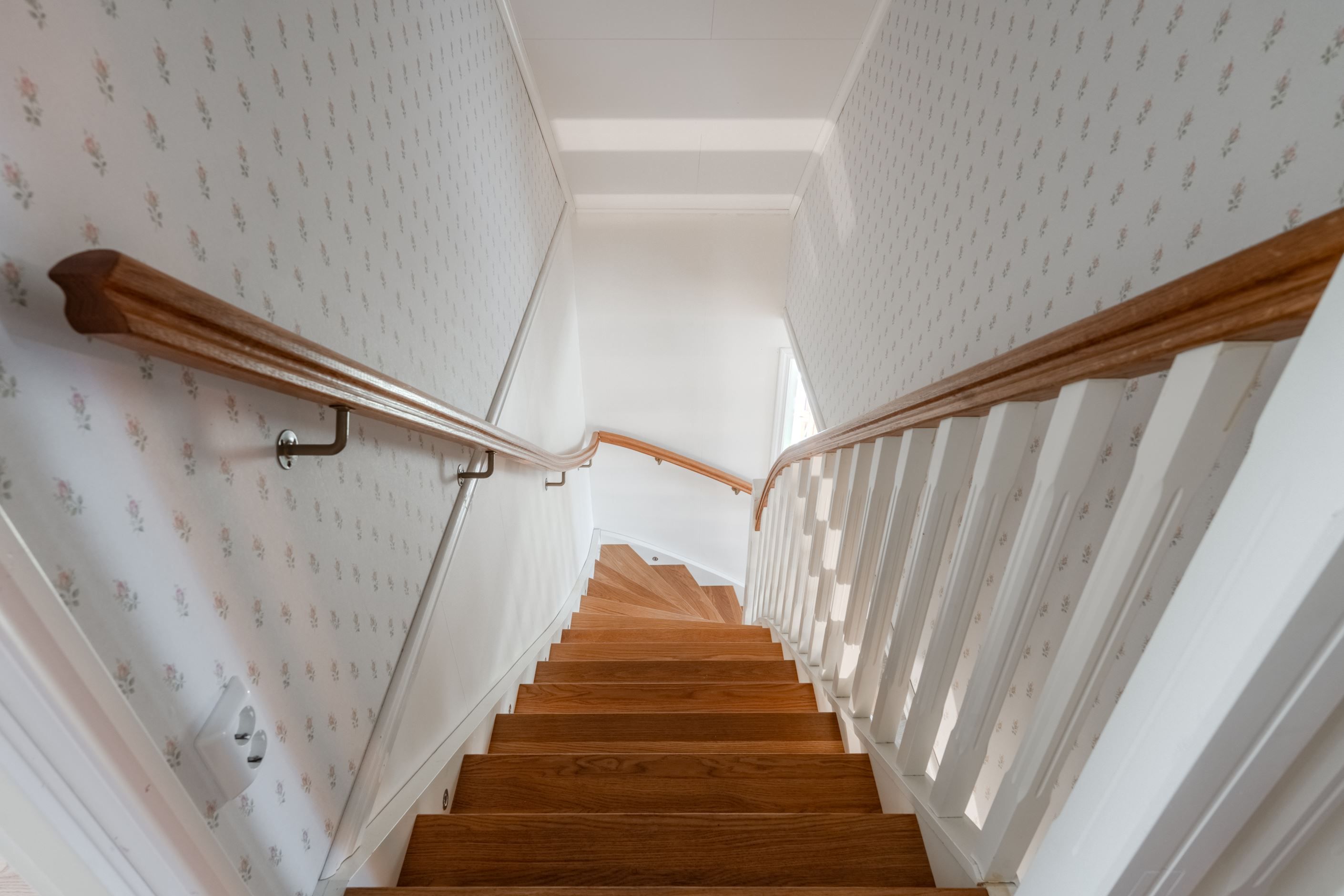 En trappa upp väntar två rogivande sovrum med snedtak och behagligt ljus. Här finns även goda förvaringsmöjligheter i form av klädkammare samt en praktisk WC i anslutning till det ena sovrummet.