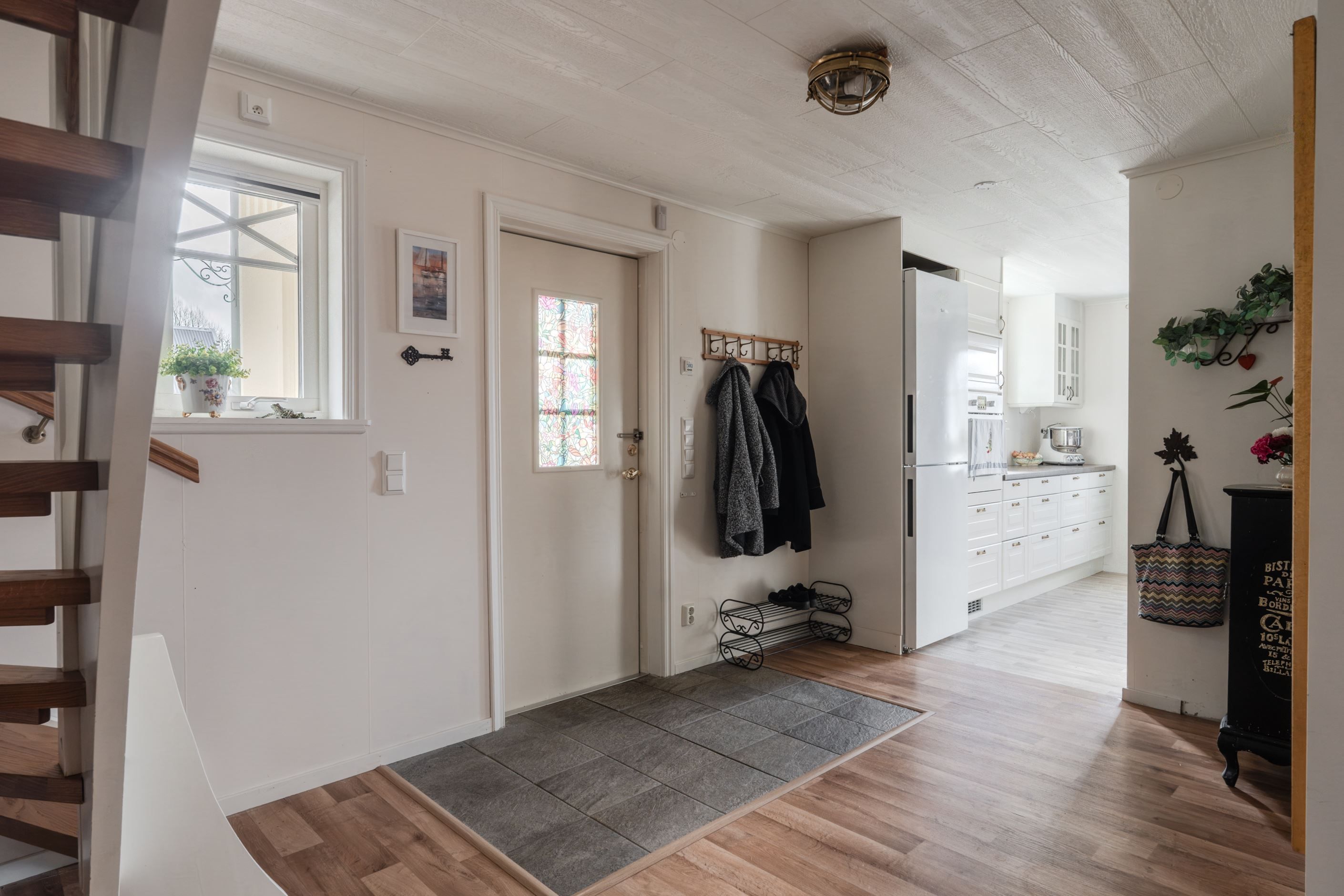 Här möts du av en välplanerad bostad där varje kvadratmeter är genomtänkt för att skapa både funktion och trivsel. Entréplanet erbjuder en ljus och välkomnande hall som kan inredas med förvaringsmöbler såsom skohylla och byrå eller annan önskad möblering.