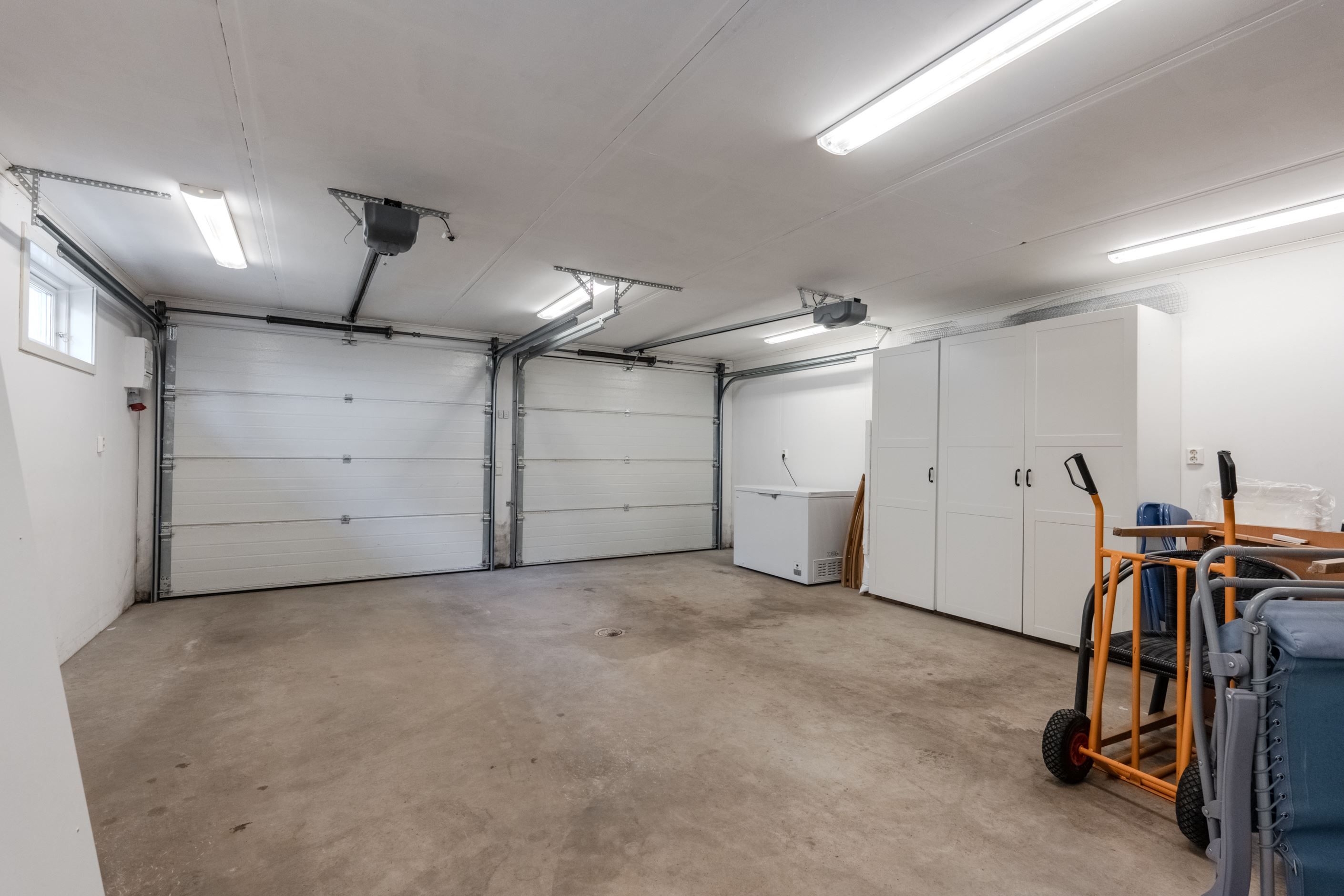 Utomhus erbjuds en stor trädgård med gott om plats för lek, odling eller avkoppling. Här finner du massor av olika bärbuskar som blåbär, hallon, krusbär, svarta och röda vinbär och blåbärstry. I anslutning till bostaden finns även dubbelgarage samt ett rymliga förråd - perfekt för dig som behöver extra utrymme.