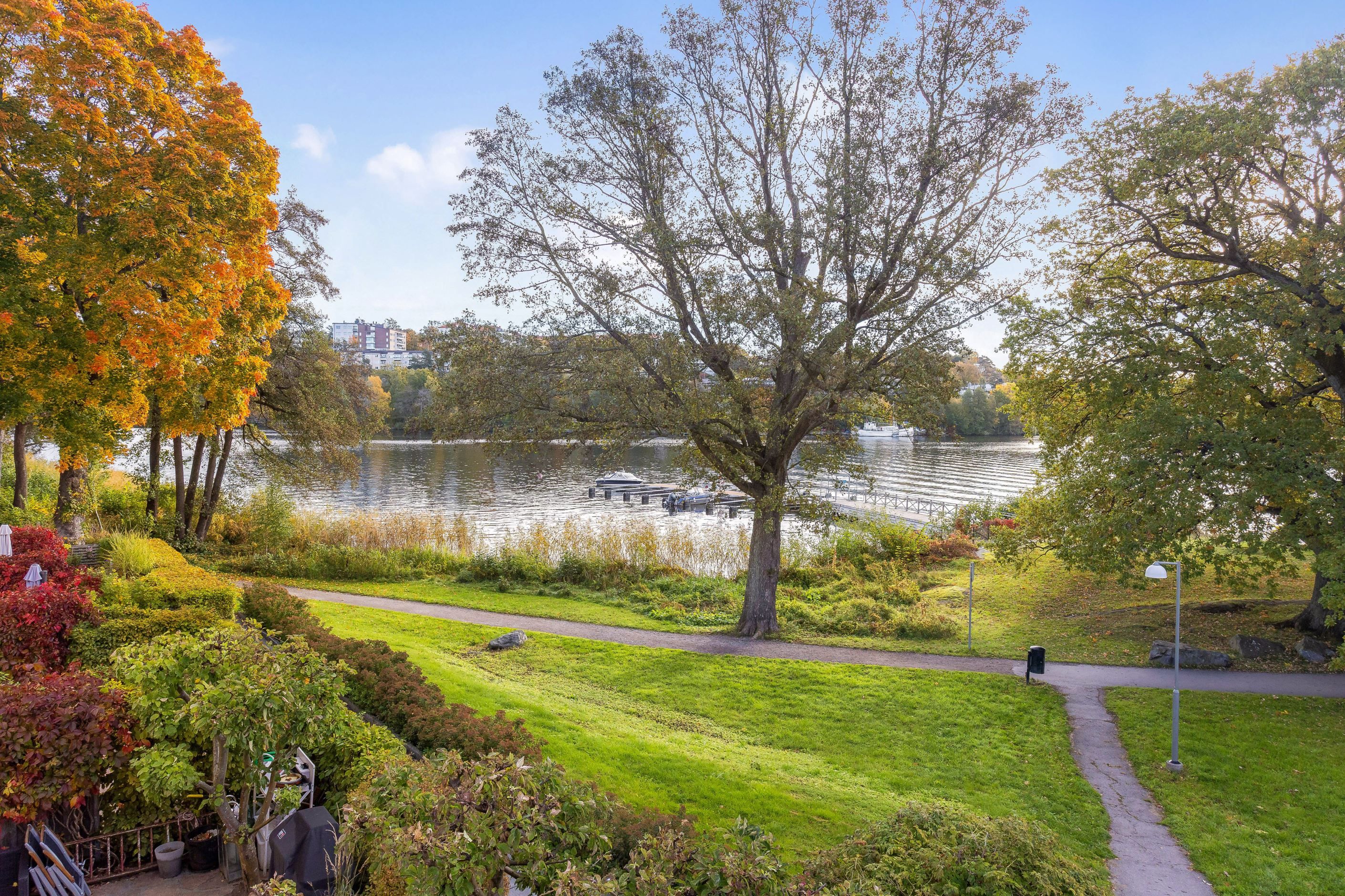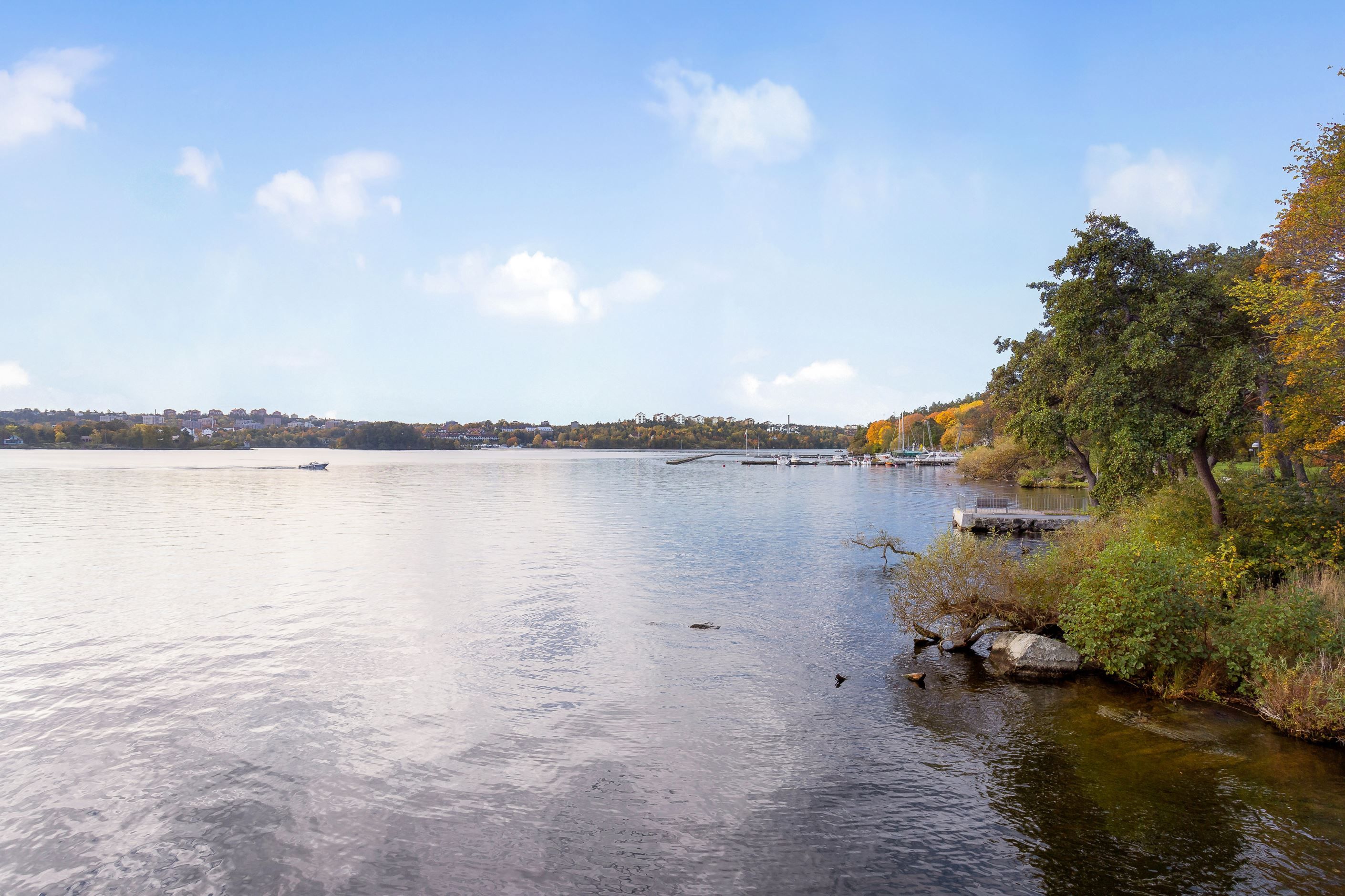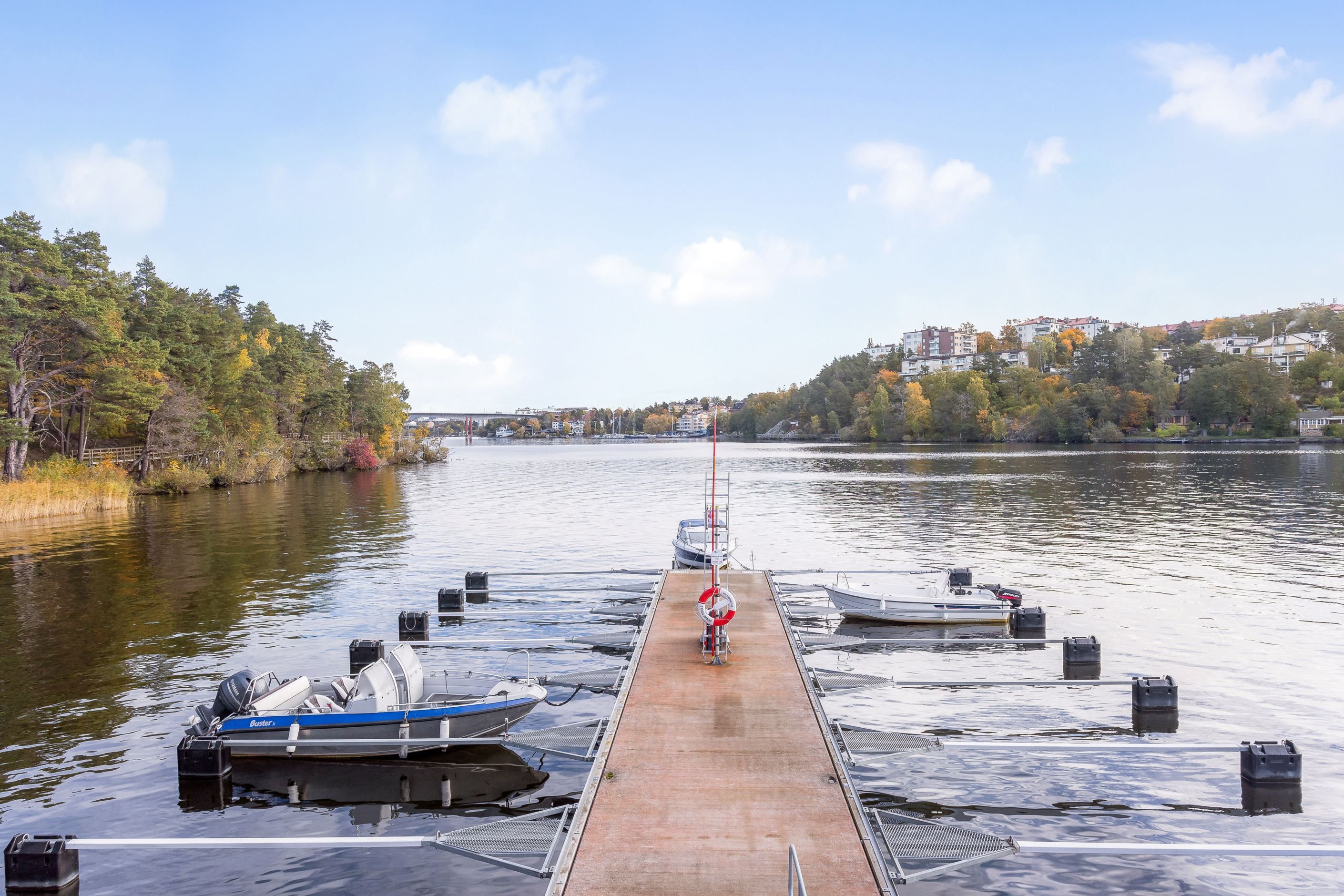 Synnerligen tilltalande lägenhet i ett fantastiskt Mälarläge med strandkanten endast ca 100 meter från fastigheten. Vågskvalp samt fint blickfång runt huset ner mot vattenspegeln, där morgondoppet- och båtliv lockar. Ett absolut drömboende med allt vad man kan önska sig. Öppen spis adderar vardagslyx! Planlösningen är väl genomtänkt, yteffektiv och väldigt trivsam. Läget invid den grönskande strandpromenaden med fina strövstigar och naturbad erbjuder något för alla åldrar, inklusive eventuellt husdjur. Kort sagt, ett drömboende i lugnaste idyll med förstklassiga skolor, välsorterade butiker och gångavstånd till levande torg med gott om charmiga småbutiker. En oas men samtidigt så nära stadens puls. På endast ett par minuters promenad ligger den lokala välsorterade ICA-butiken Smelivs, Äppelviksskolan (årskurs 6-9). Smedslättskolan, Ålstensskolan och flera förskolor, även dessa i närområdet. 12- ans spårvagn som tar dig smidigt till Alviks Torg med dess breda butiksutbud samt goda kommunikationer i form av T-bana, tvärbana och bussar. Smidig väg in till city med endast ca 15-20 minuters pendelavstånd.