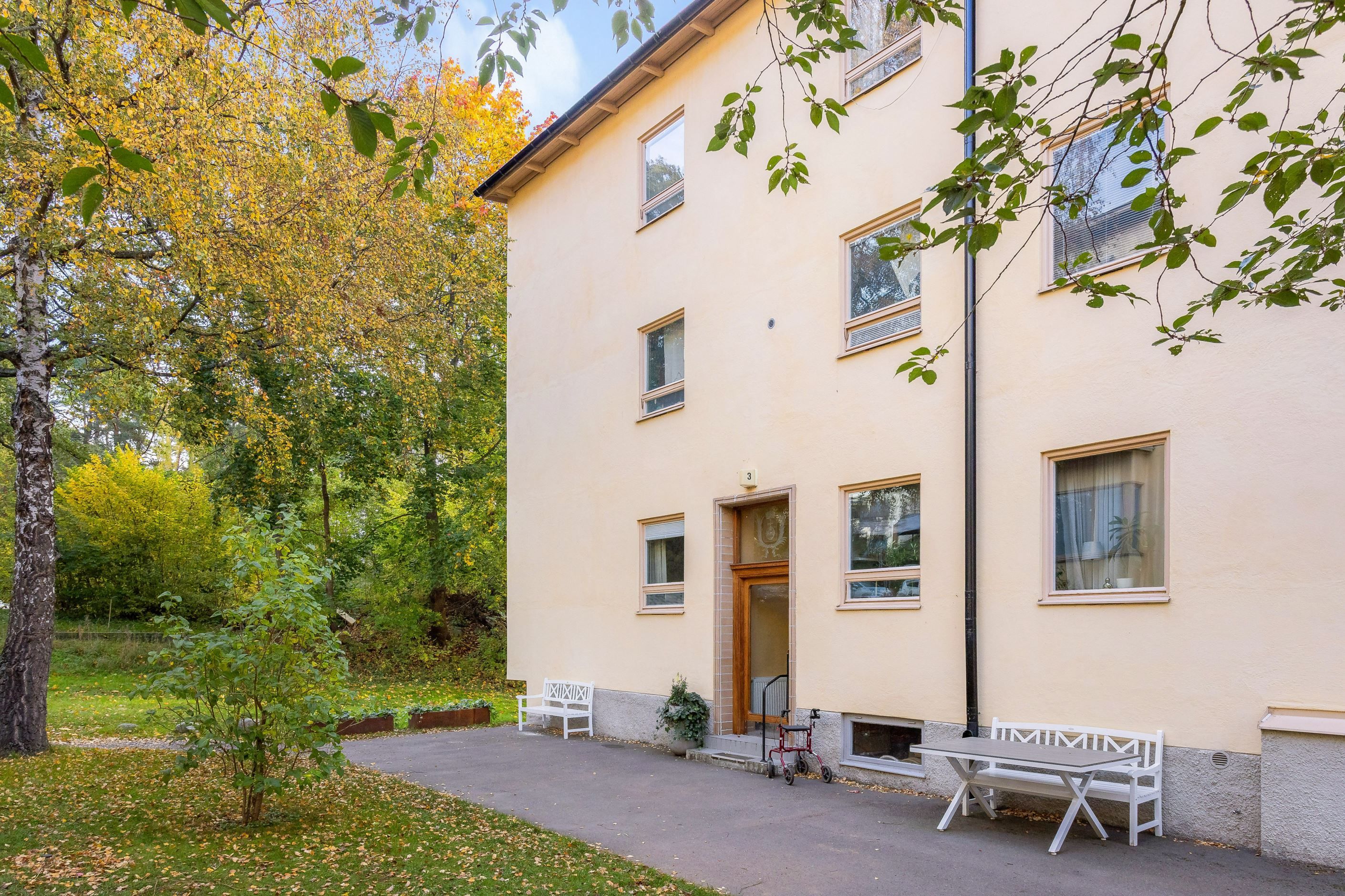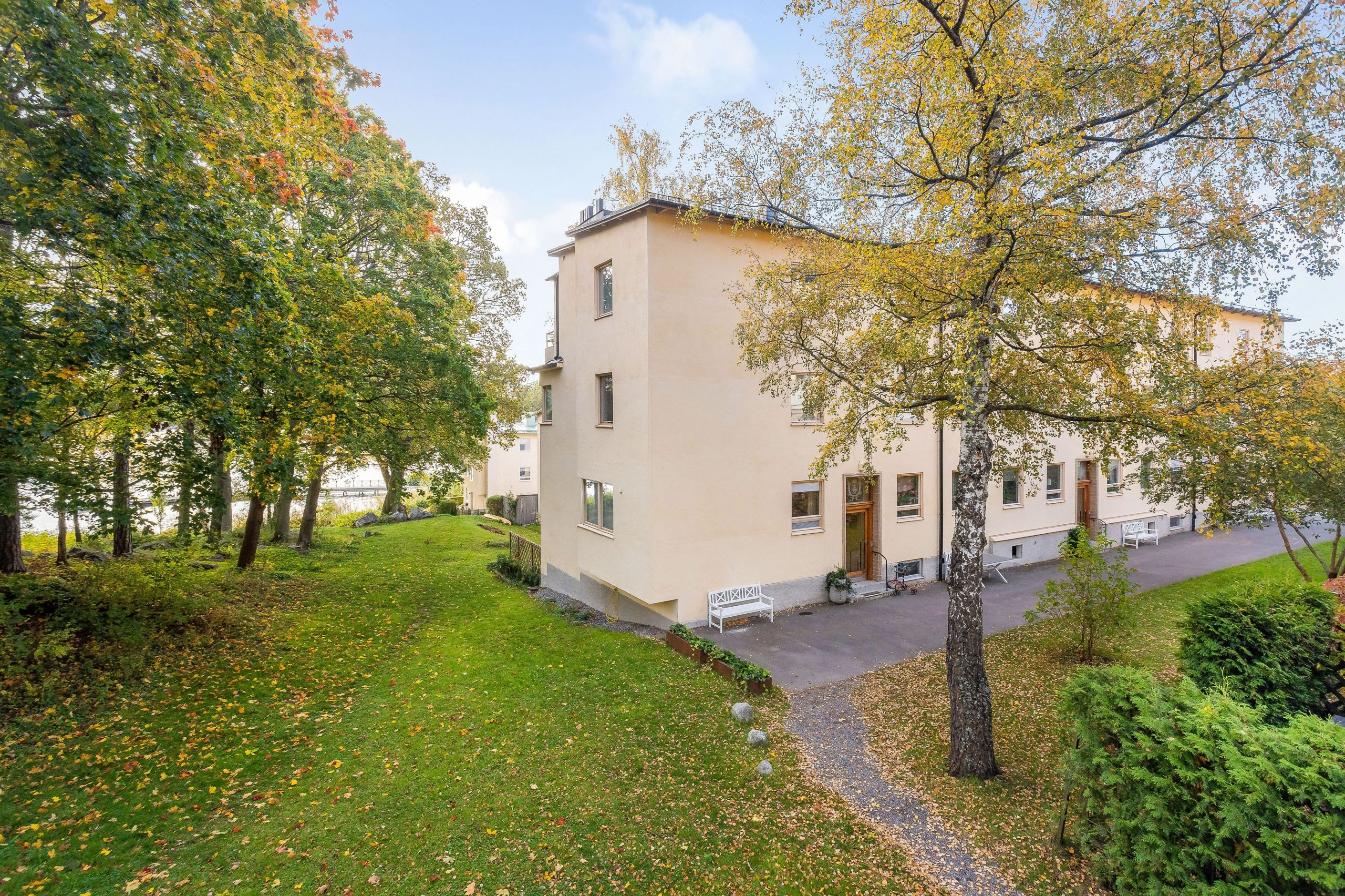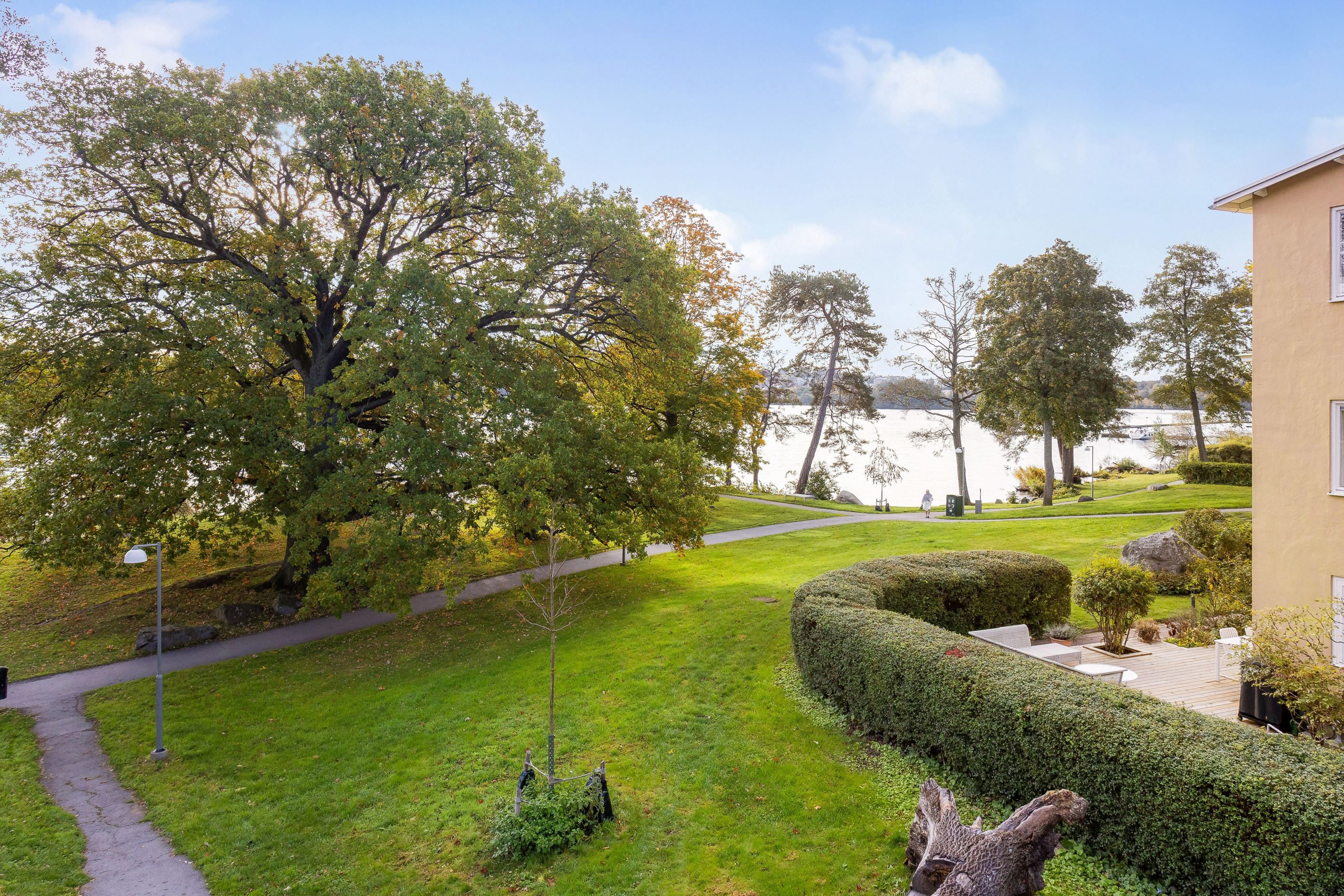 Synnerligen tilltalande lägenhet i ett fantastiskt Mälarläge med strandkanten endast ca 100 meter från fastigheten. Vågskvalp samt fint blickfång runt huset ner mot vattenspegeln, där morgondoppet- och båtliv lockar. Ett absolut drömboende med allt vad man kan önska sig. Öppen spis adderar vardagslyx! Planlösningen är väl genomtänkt, yteffektiv och väldigt trivsam. Läget invid den grönskande strandpromenaden med fina strövstigar och naturbad erbjuder något för alla åldrar, inklusive eventuellt husdjur. Kort sagt, ett drömboende i lugnaste idyll med förstklassiga skolor, välsorterade butiker och gångavstånd till levande torg med gott om charmiga småbutiker. En oas men samtidigt så nära stadens puls. På endast ett par minuters promenad ligger den lokala välsorterade ICA-butiken Smelivs, Äppelviksskolan (årskurs 6-9). Smedslättskolan, Ålstensskolan och flera förskolor, även dessa i närområdet. 12- ans spårvagn som tar dig smidigt till Alviks Torg med dess breda butiksutbud samt goda kommunikationer i form av T-bana, tvärbana och bussar. Smidig väg in till city med endast ca 15-20 minuters pendelavstånd.