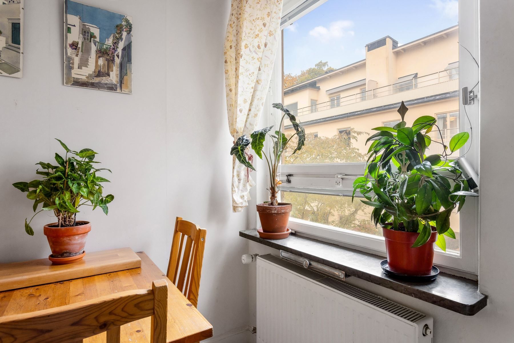 Interiören är mycket tilltalande och i genomgående gott skick, med fin charm från byggåret 1940 bevarad. Det fria läget ger luftiga rum och generösa funkisfönster gör att lägenheten "badar i" rymd och ljus. Generös takhöjd på ca 2,70 och med fönster i två väderstreck adderar ytterligare ljus och rymd.