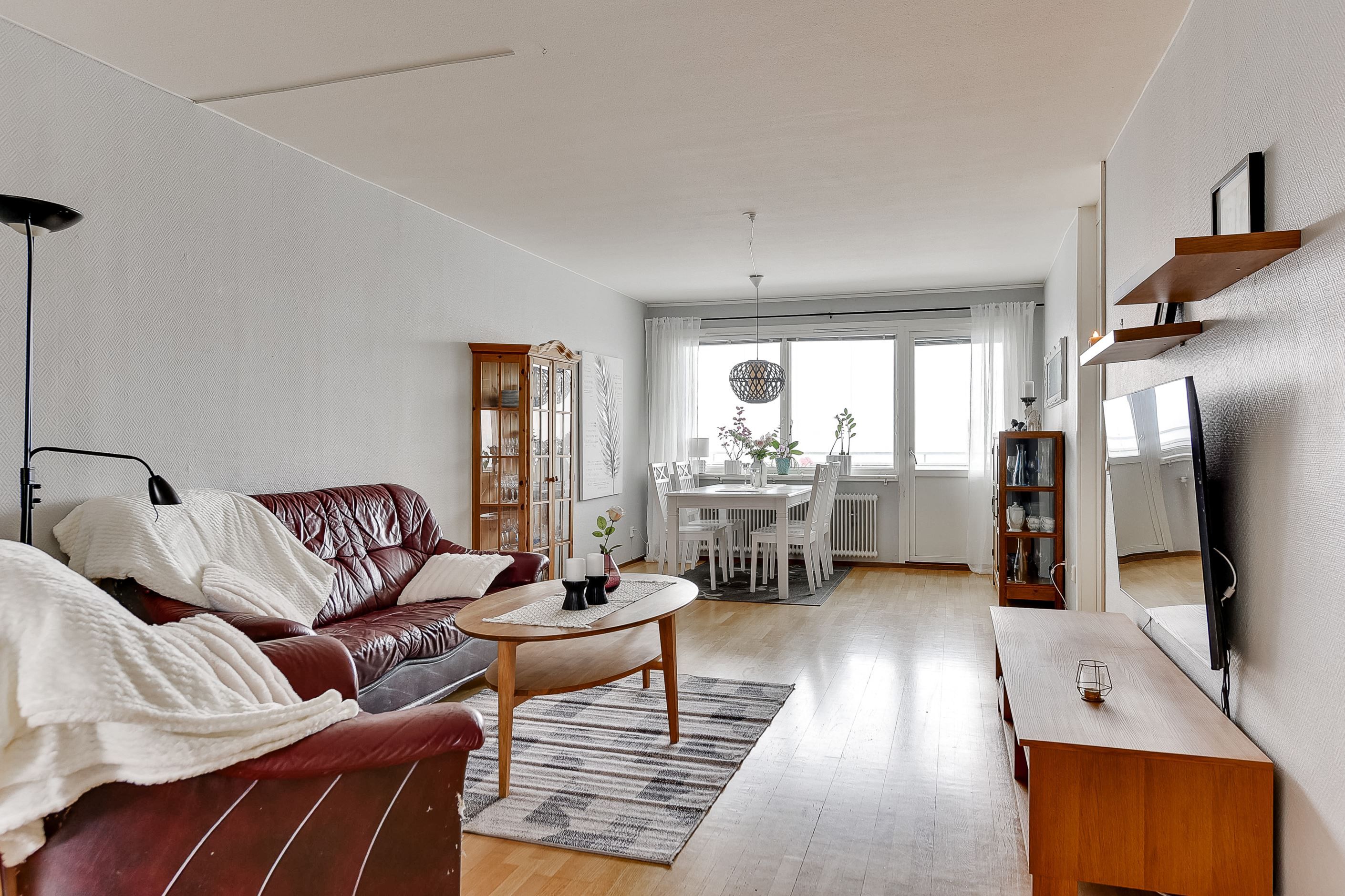 På våning 3 av 3 hittar ni denna rymliga 3:a om 76 kvadratmeter – en bostad med stor potential för er som vill sätta er egen prägel. Här finns en trivsam och genomtänkt planlösning med två bra sovrum, ett luftigt vardagsrum och ett kök i äldre utförande som väntar på nästa ägare att lyfta fram dess möjligheter. Lägenheten har generöst ljusinsläpp tack vare fönster i två väderstreck och erbjuder även en praktisk klädkammare samt ett badrum med enklare standard. Den inglasade balkongen blir ett extra rum under stora delar av året och bjuder på en trevlig utsikt över området.