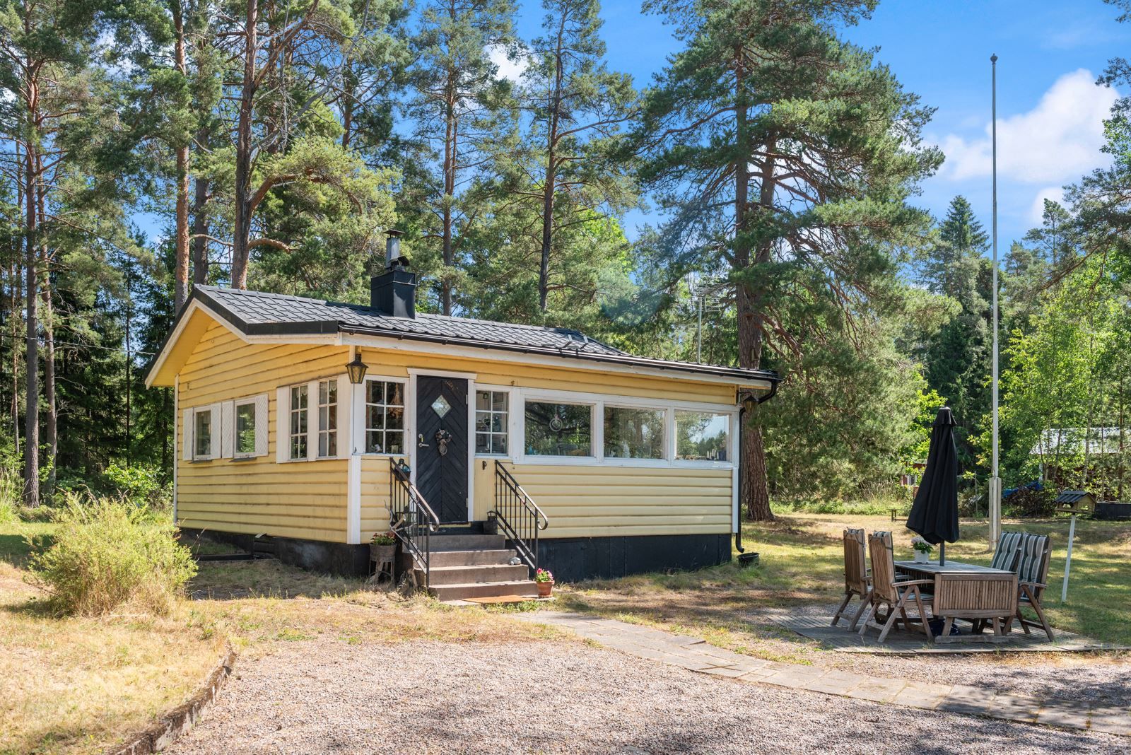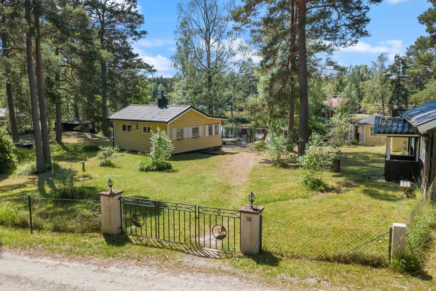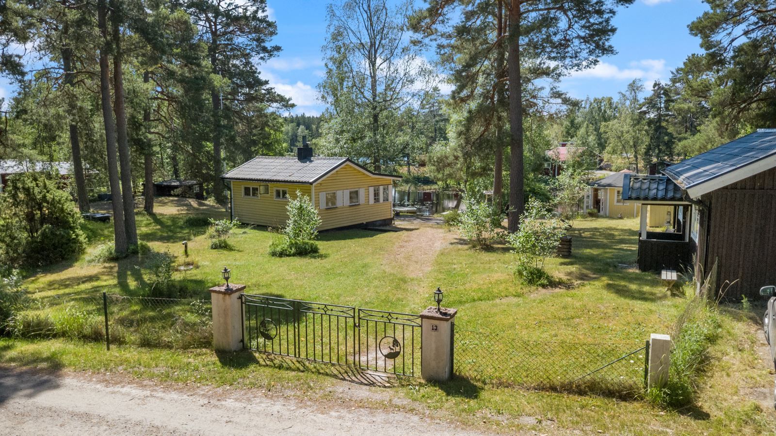Standarden är äldre men hjärtligt trivsam – en plats där minnen skapas snarare än stilmarkörer visas upp. Tomten är solig hela dagen och insynen minimal. Det är sällsynt att något så genuint och naturnära blir tillgängligt.