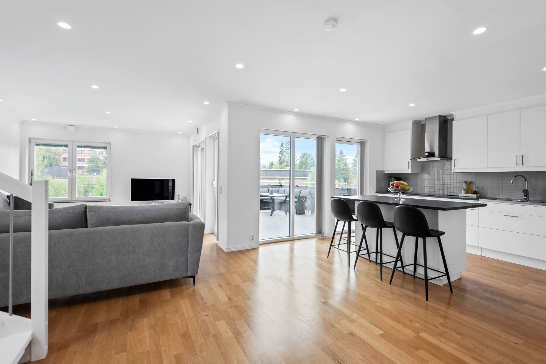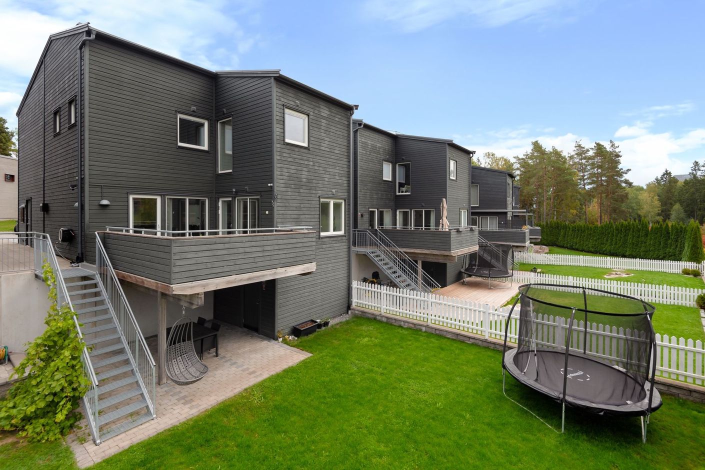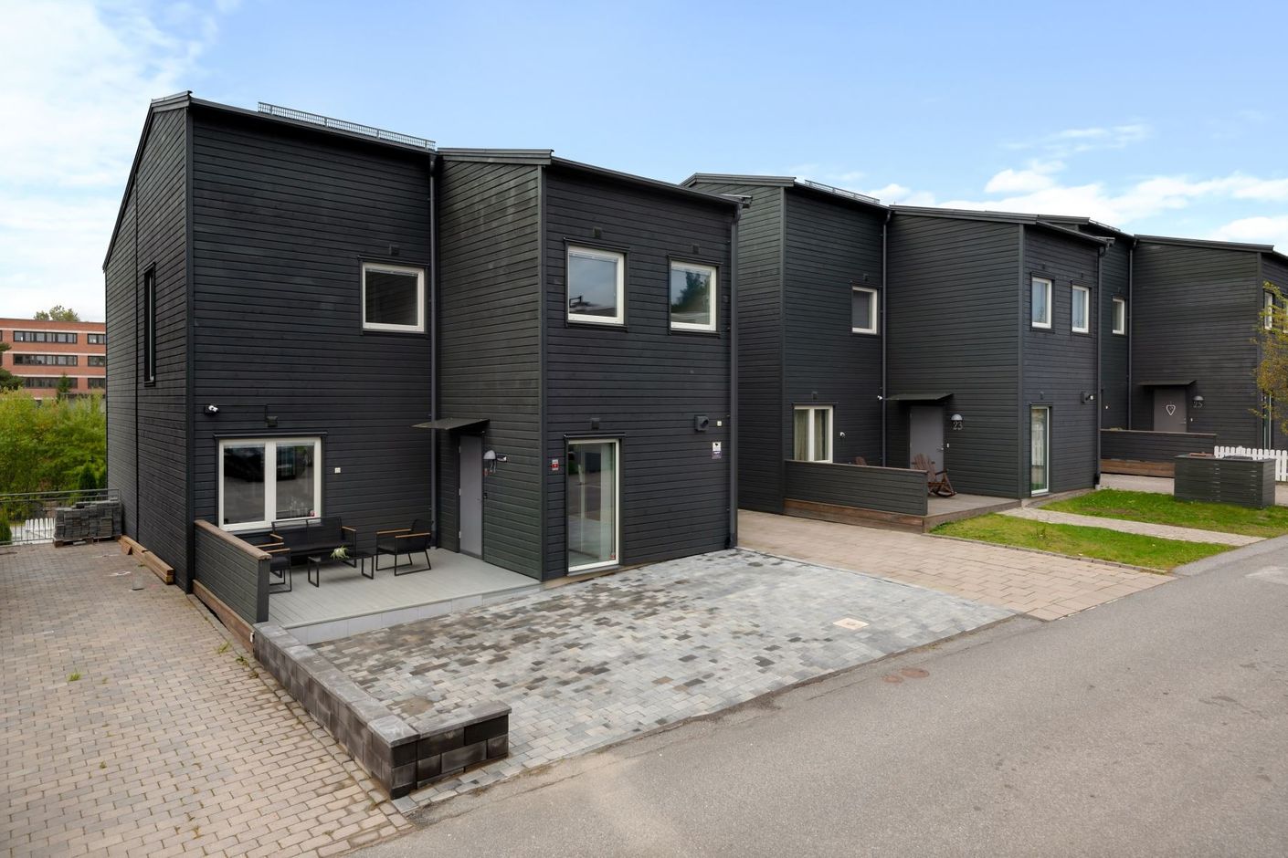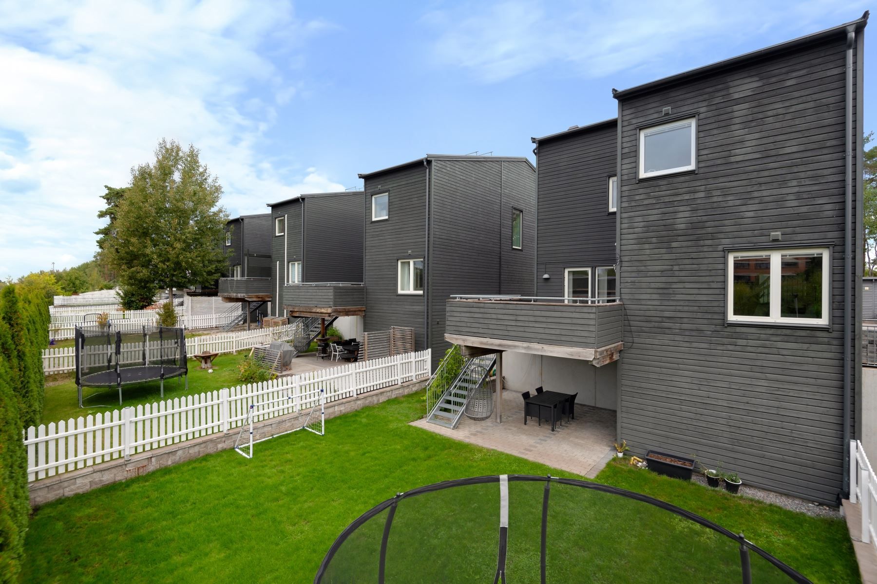 Entrévåningen är utrustad med golvvärme genom vattenburet system och stora fönsterpartier i hela bostaden! Vitt kök med alla vitvaror du önskar dig från kvalitétsmärket Siemens. Öppen planlösning gör det möjligt att bjuda över hela släkten till den härliga matplatsen som ligger i en social lösning med vardagsrummet. Vardagsrummet har en lättmöblerad utformning samt en matsalsdel som enkelt kan göras om till ett sovrum. Badrum med golvvärme på entréplanet samt ett stort badrum på övre plan - båda i modern layout med svart klinkergolv och vita helkaklade väggar. Huset erbjuder även en separat tvättstuga med egen ingång. 4 sovrum samt 2 vardagsrum med möjlighet att göra om planlösningen för den som önskar.