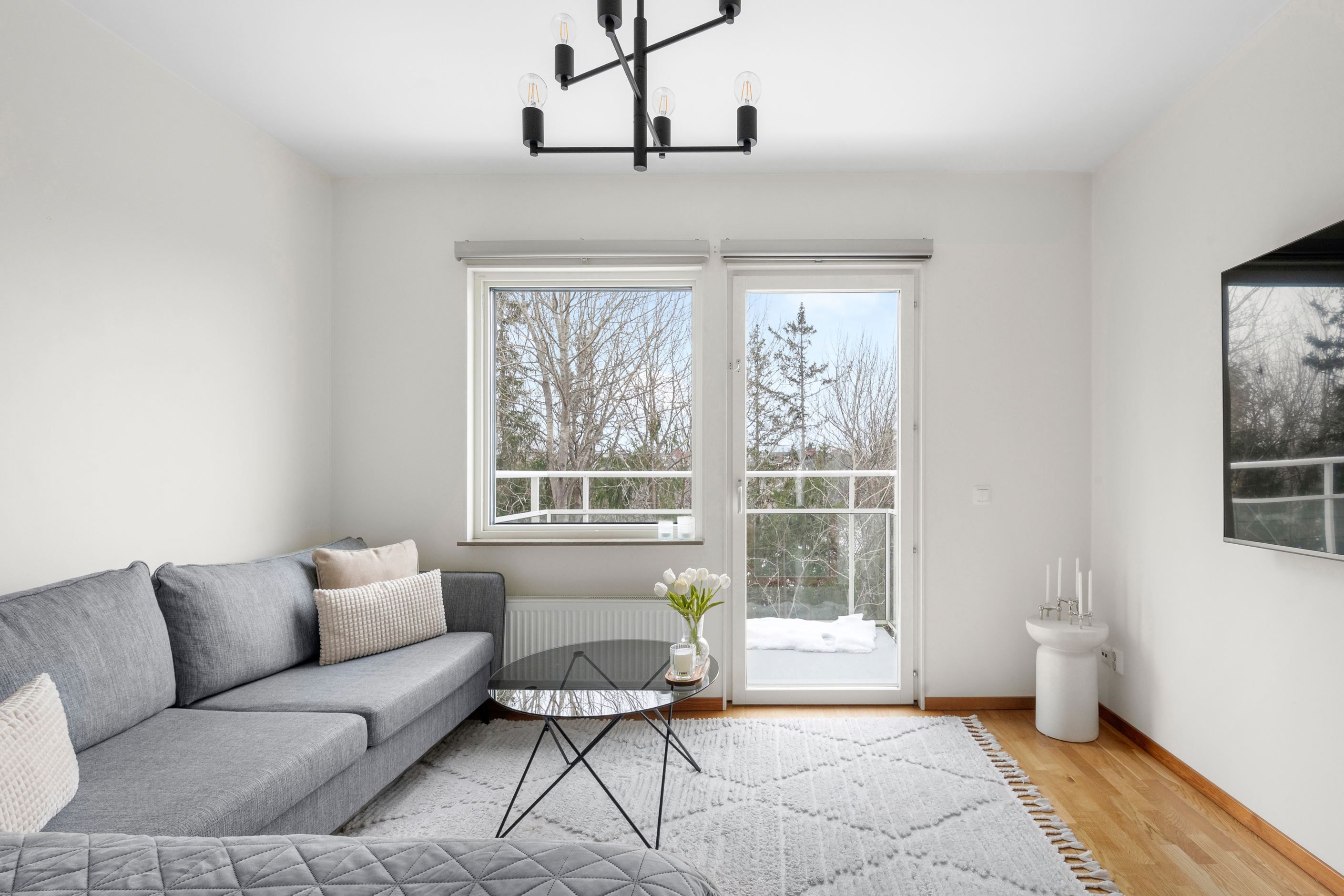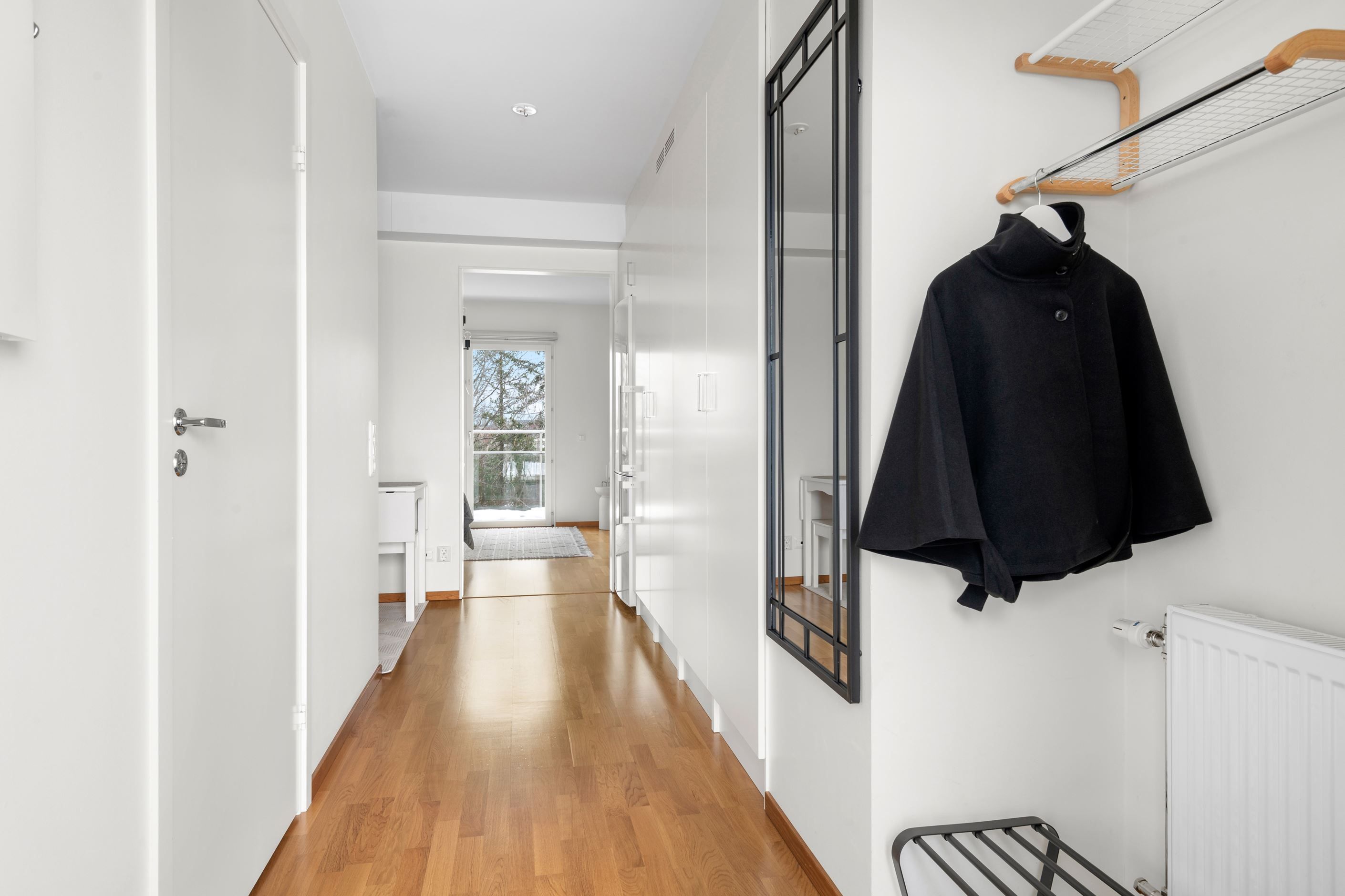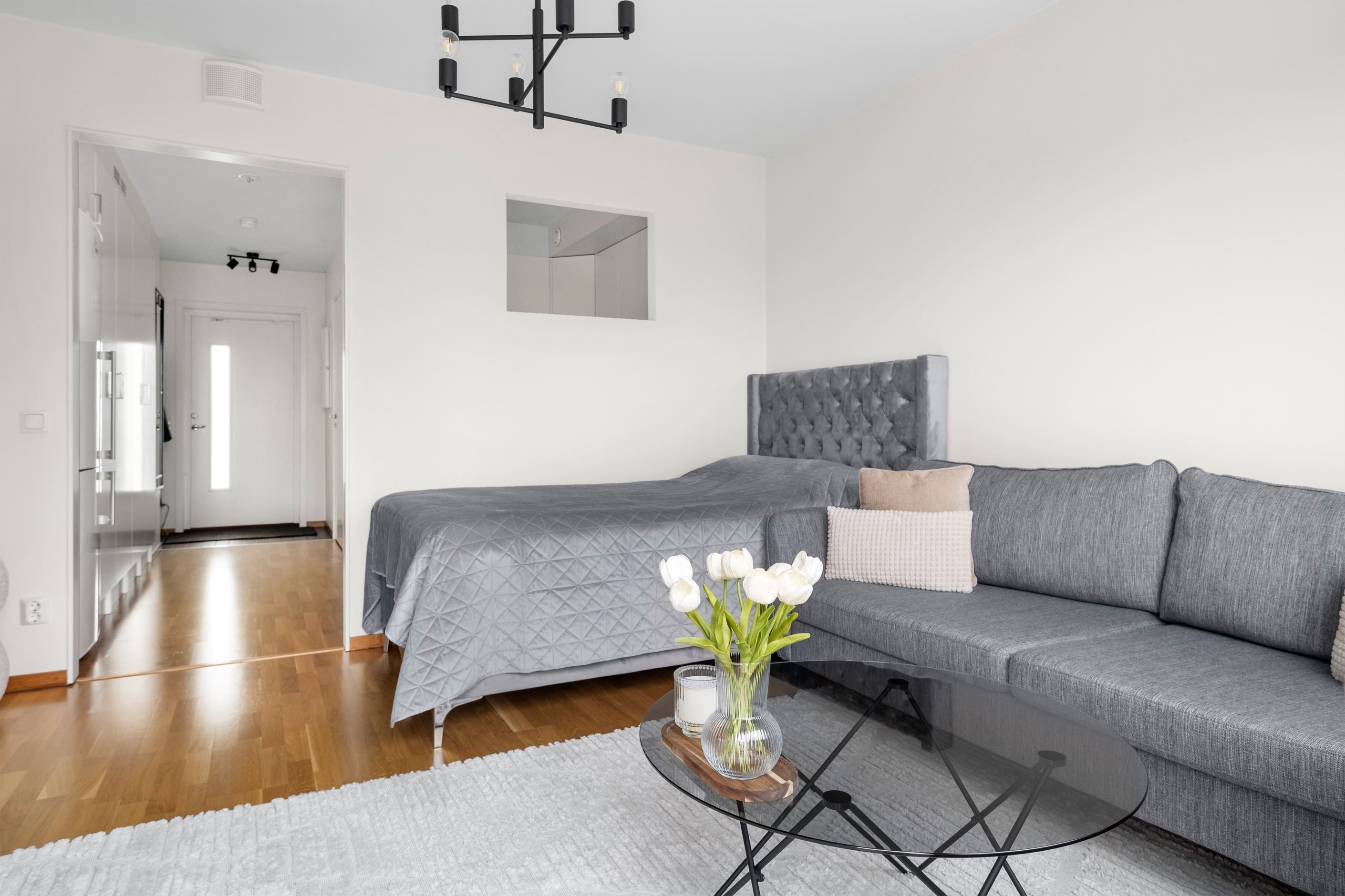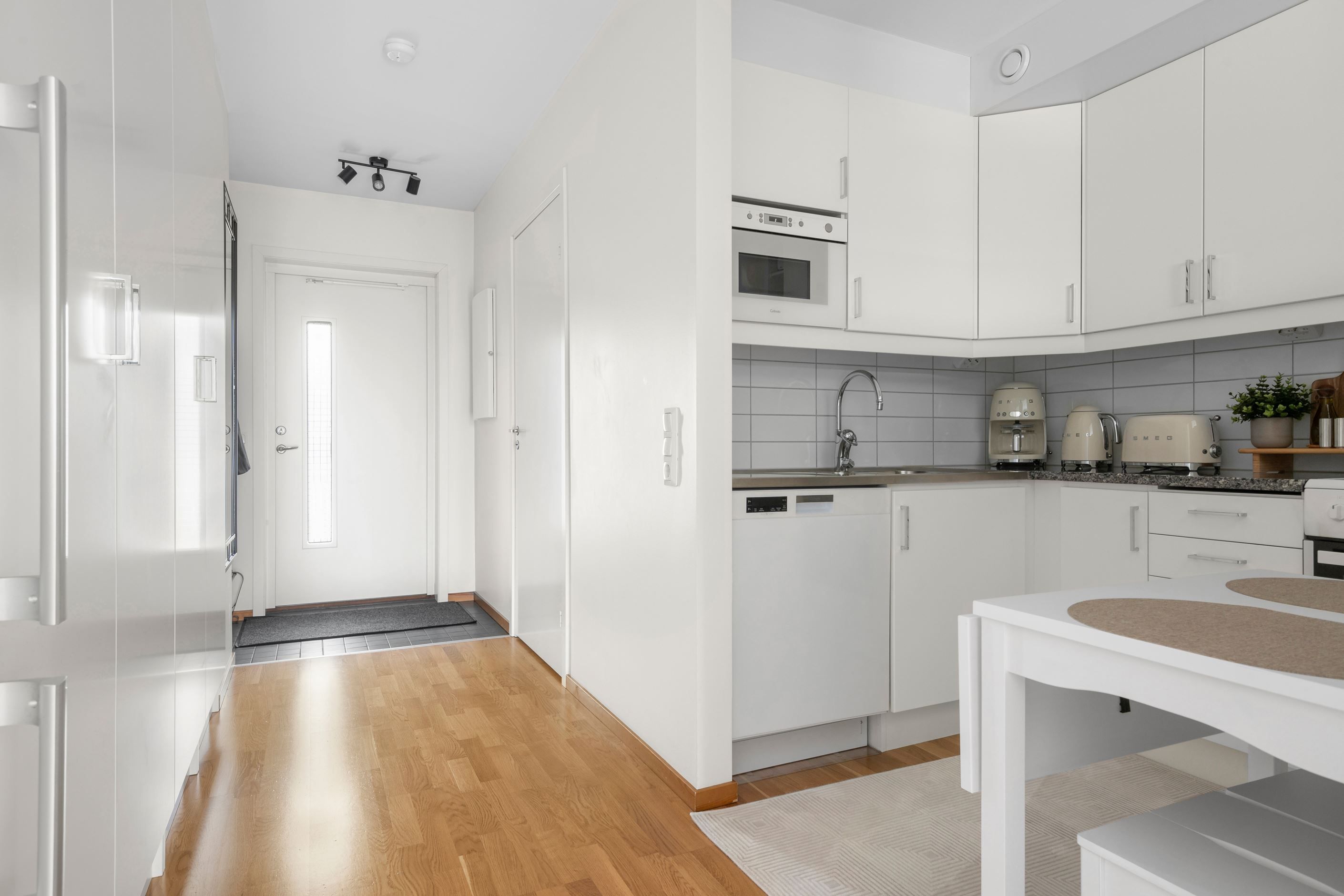 Ny bostad från 2016 med golvvärme i det stilrena badrummet samt granitskiva i det vita köket från Ballingslöv. Fullutrustat kök med diskmaskin och micro samt en hall med flertalet garderober som ger god förvaring. Härlig radhuskänsla då bostaden gränsar till radhus och skog. Egen ingång direkt från loftgång gör bostaden lättillgänglig och bekväm. Genomgående ekparkett med klinkergolv vid entrén. Kvadratsmart planlösning med plats för säng, soffa, tv samt matbord eller hemmakontor.