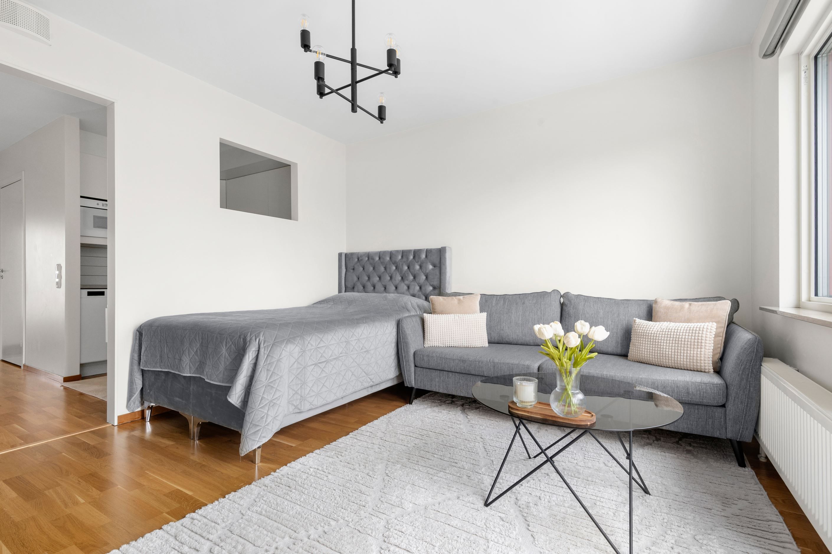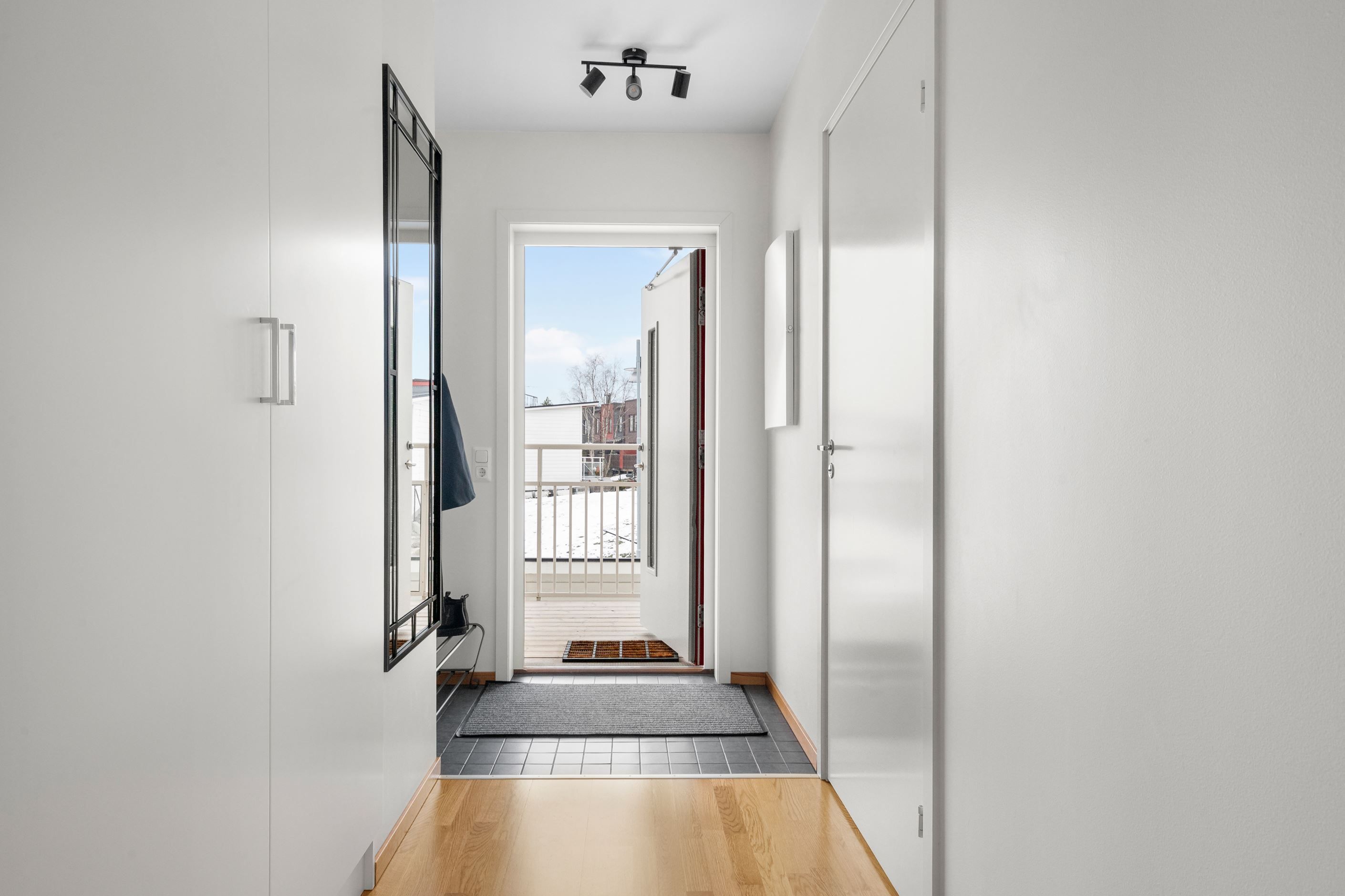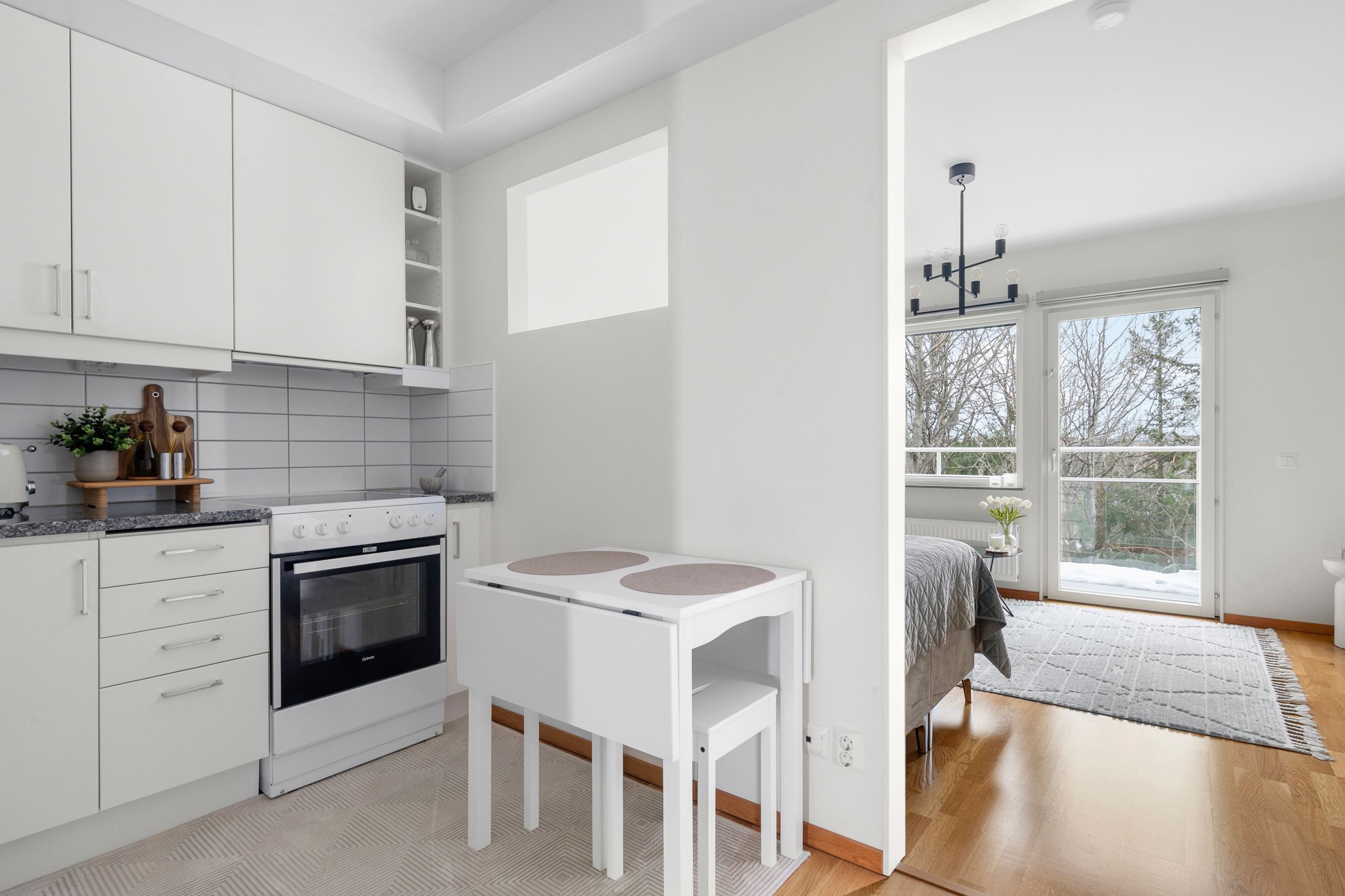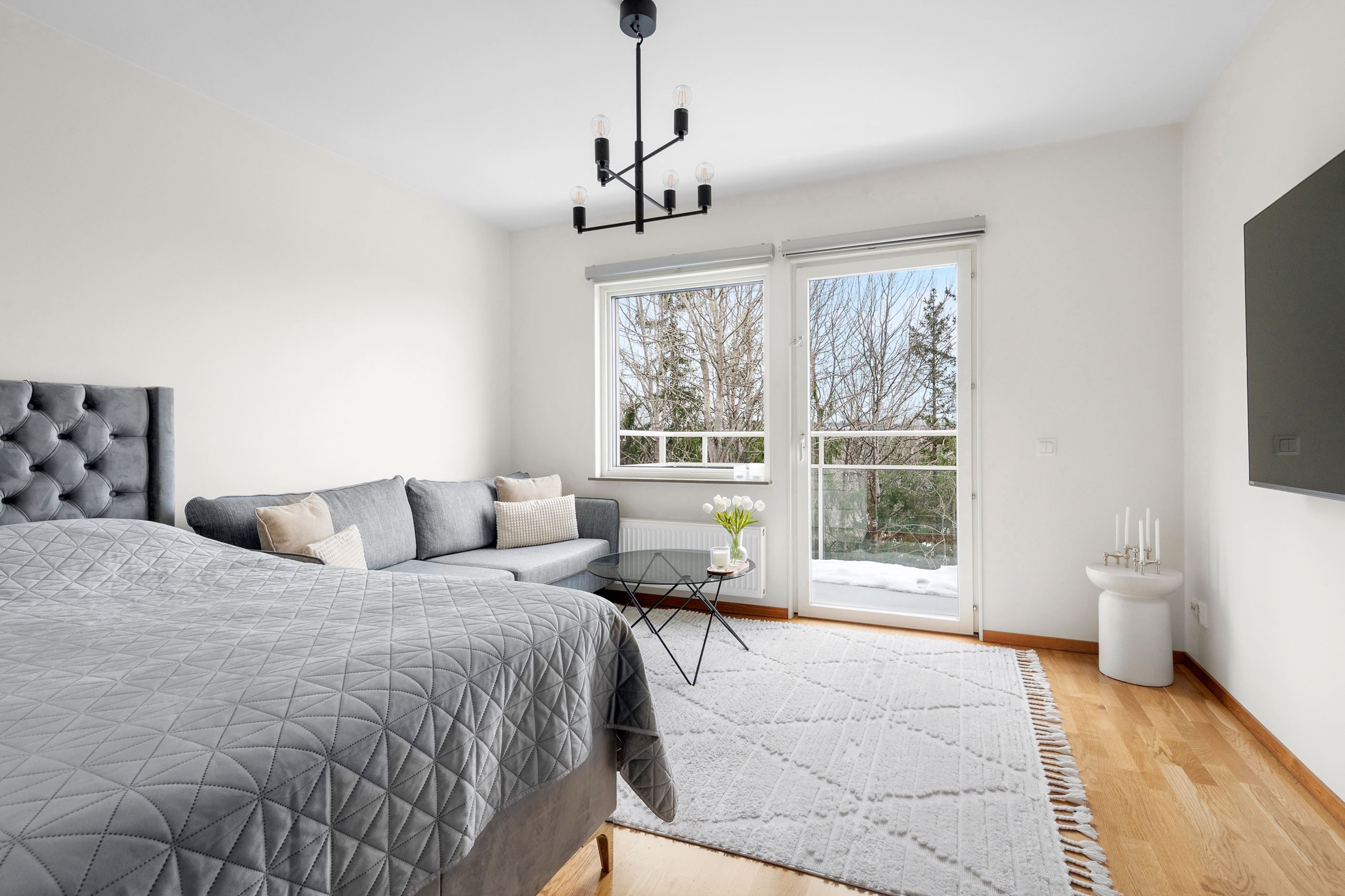 Ny bostad från 2016 med golvvärme i det stilrena badrummet samt granitskiva i det vita köket från Ballingslöv. Fullutrustat kök med diskmaskin och micro samt en hall med flertalet garderober som ger god förvaring. Härlig radhuskänsla då bostaden gränsar till radhus och skog. Egen ingång direkt från loftgång gör bostaden lättillgänglig och bekväm. Genomgående ekparkett med klinkergolv vid entrén. Kvadratsmart planlösning med plats för säng, soffa, tv samt matbord eller hemmakontor.
