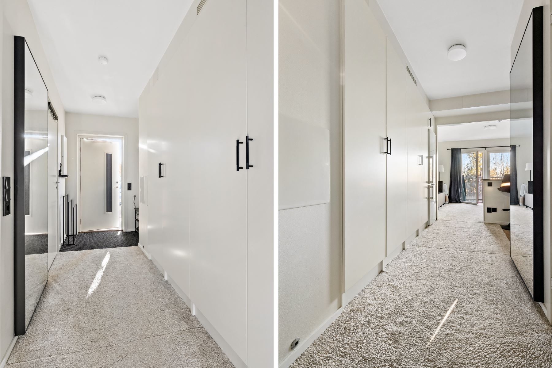 Välkommen till denna ljusa och luftiga bostad där modern design möter smarta lösningar. Med genomgående trestavig parkett i ek och nymålade vita väggar skapas en tidlös och harmonisk känsla. Hallen erbjuder praktisk förvaring och kompletteras av fyra garderober, varav två med antracit meshbackar för en stilren och funktionell inredning.