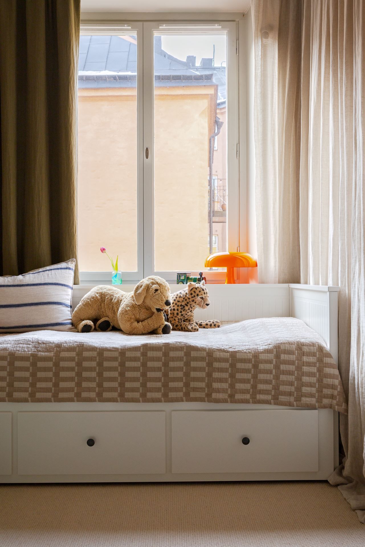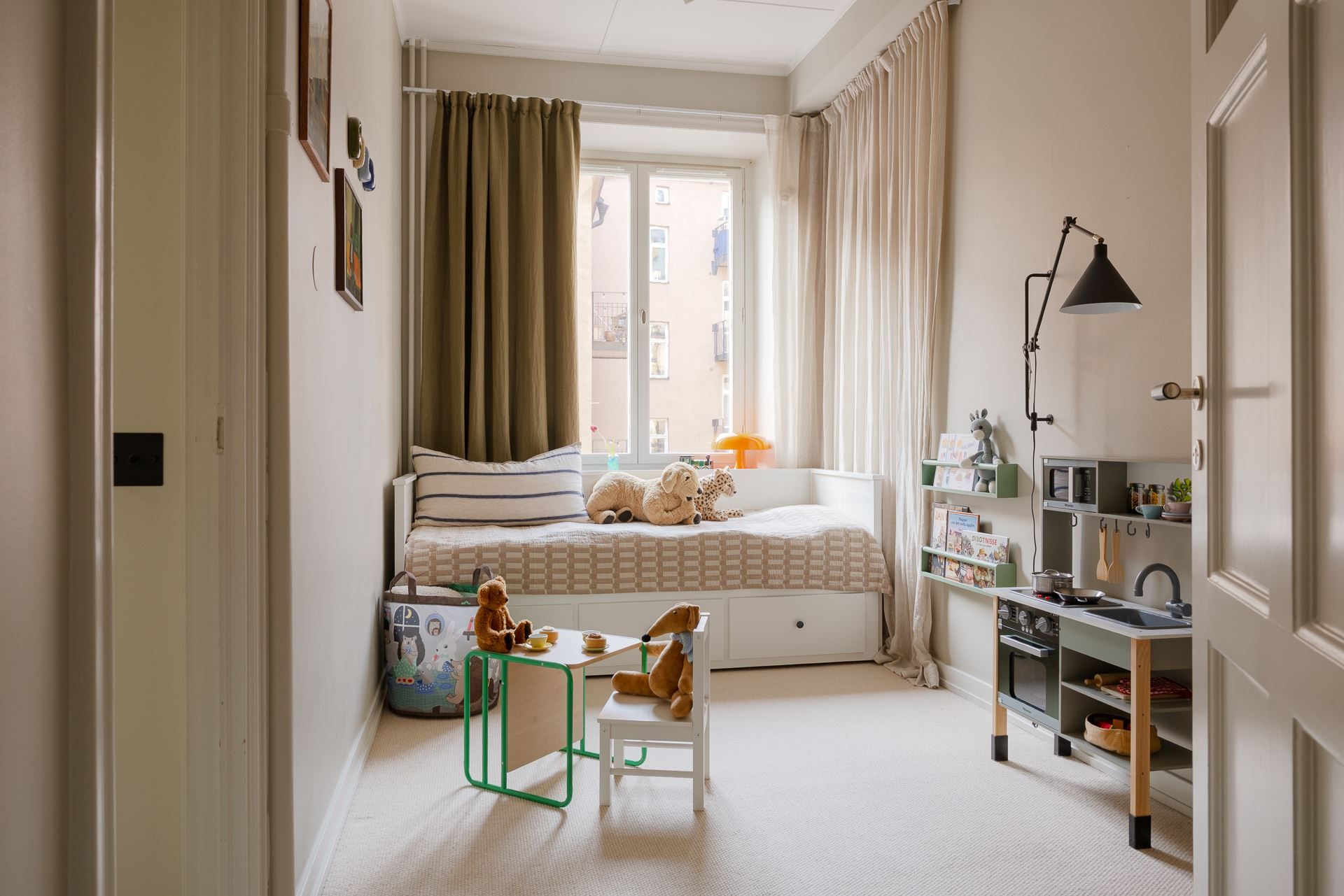 Härligt läge på balkongen mot en av de lummiga innergårdarna. Luftigt sovrum med plats för dubbelsäng med tillhörande sängbord samt generösa förvaringsmöjligheter tack vare den breda garderobsväggen. Härifrån nås bostadens andra balkong som även den vetter i fint gårdsläge. Det andra sovrummet lämpar sig perfekt som barnrum, gästrum eller lyxigt arbetsrum.