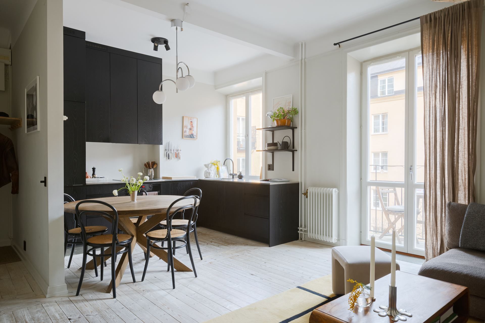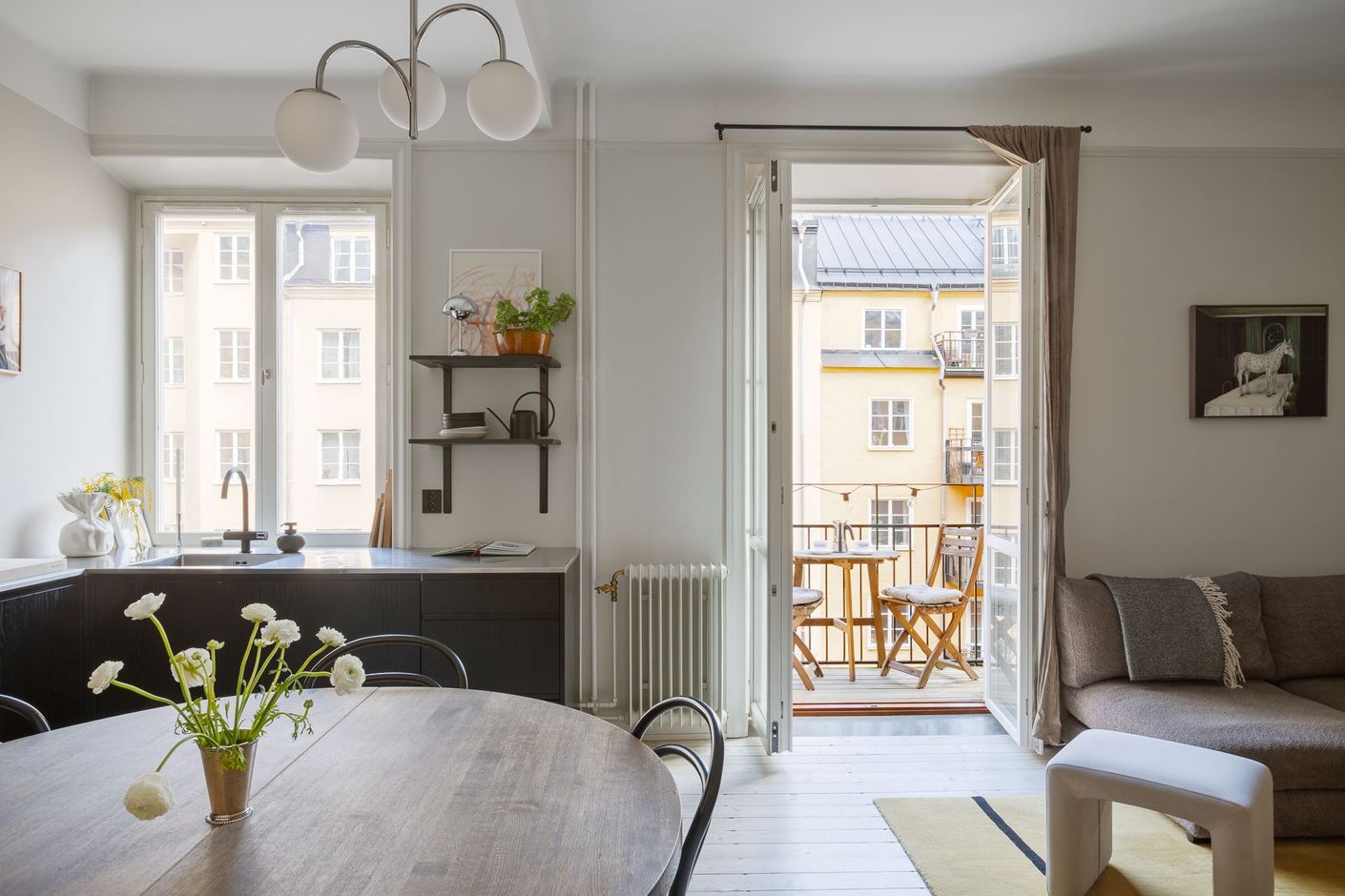 Optimalt planerad sekelskiftes-3:a med dubbla balkonger mot innergård. Ljuset flödar in i hemmet och skapar en harmonisk atmosfär i varje rum. Genomgående planlösning med tidstypiska detaljer i form av generös takhöjd och trägolv. Detta blandas upp med moderna materialval och hög standard i kök och badrum. Köket är arbetsvänligt med bra förvaring samt plats för matbord. Öppen planlösning mot vardagsrummet och bjuder in till socialt umgänge med familj och vänner. Här finns det plats för soffmöbel, samt ytterligare möblering efter önskemål.