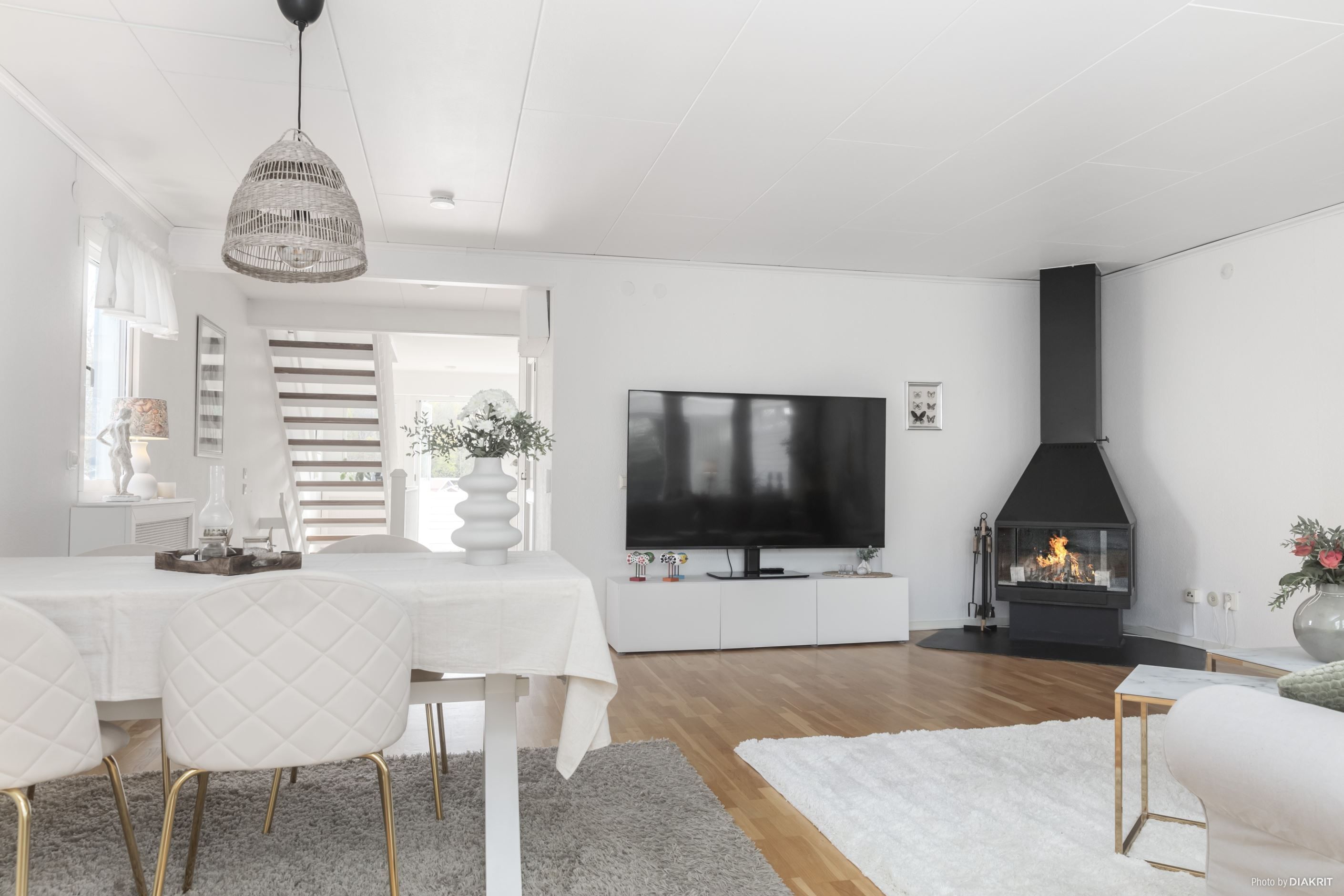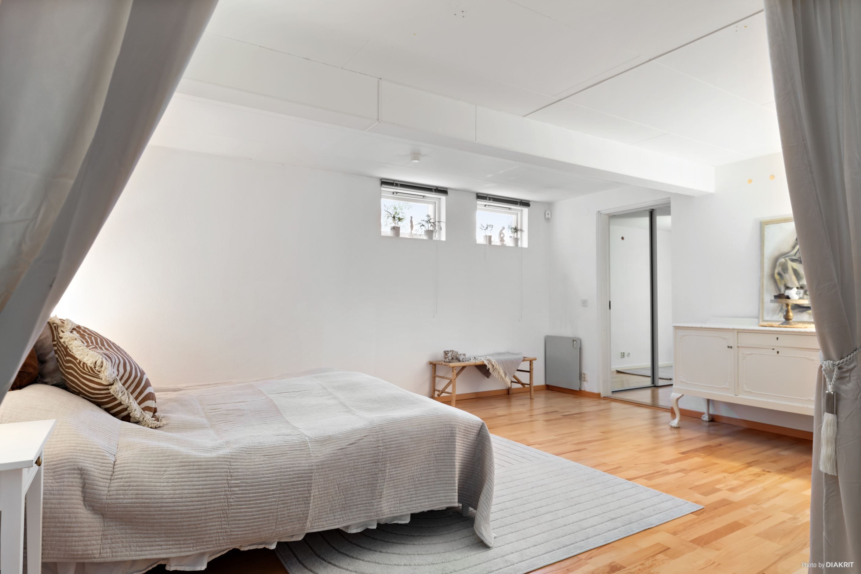 Planlösningen är väl disponerad med två till tre sovrum samlade på samma våningsplan, vilket underlättar vardagen och skapar en tydlig privat del. I suterrängplanet finns ytterligare ett rymligt rum med gavelfönster, ett flexibelt utrymme som med fördel kan användas som sovrum, gästrum, arbetsrum eller varför inte få möjligheten till att äntligen få till det där pingisrummet till barnen? Vardagsrummet är generöst och inbjudande, med braskamin som bidrar med både värme och trivsel, och den inglasade uteplatsen blir en naturlig förlängning av sällskapsytorna. Köket är modernt och funktionellt med goda arbetsytor och plats för matbord. Från köket nås balkongen med markis, vilket ger behaglig skugga under soliga dagar. Bostaden har två helkaklade badrum, placerade på var sitt våningsplan för bästa funktion i vardagen. Fiber är indraget och ger goda förutsättningar för arbete och studier hemifrån.