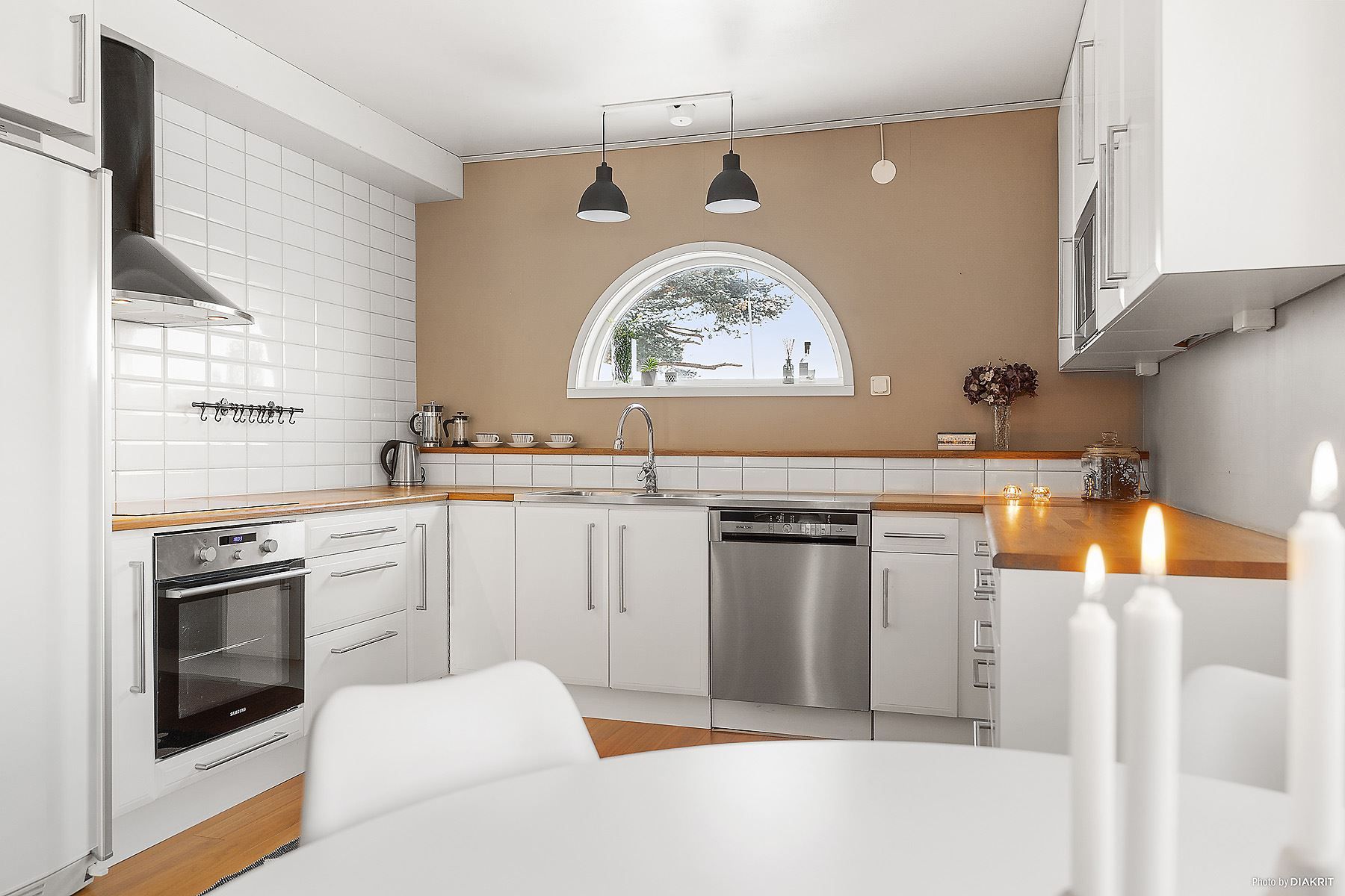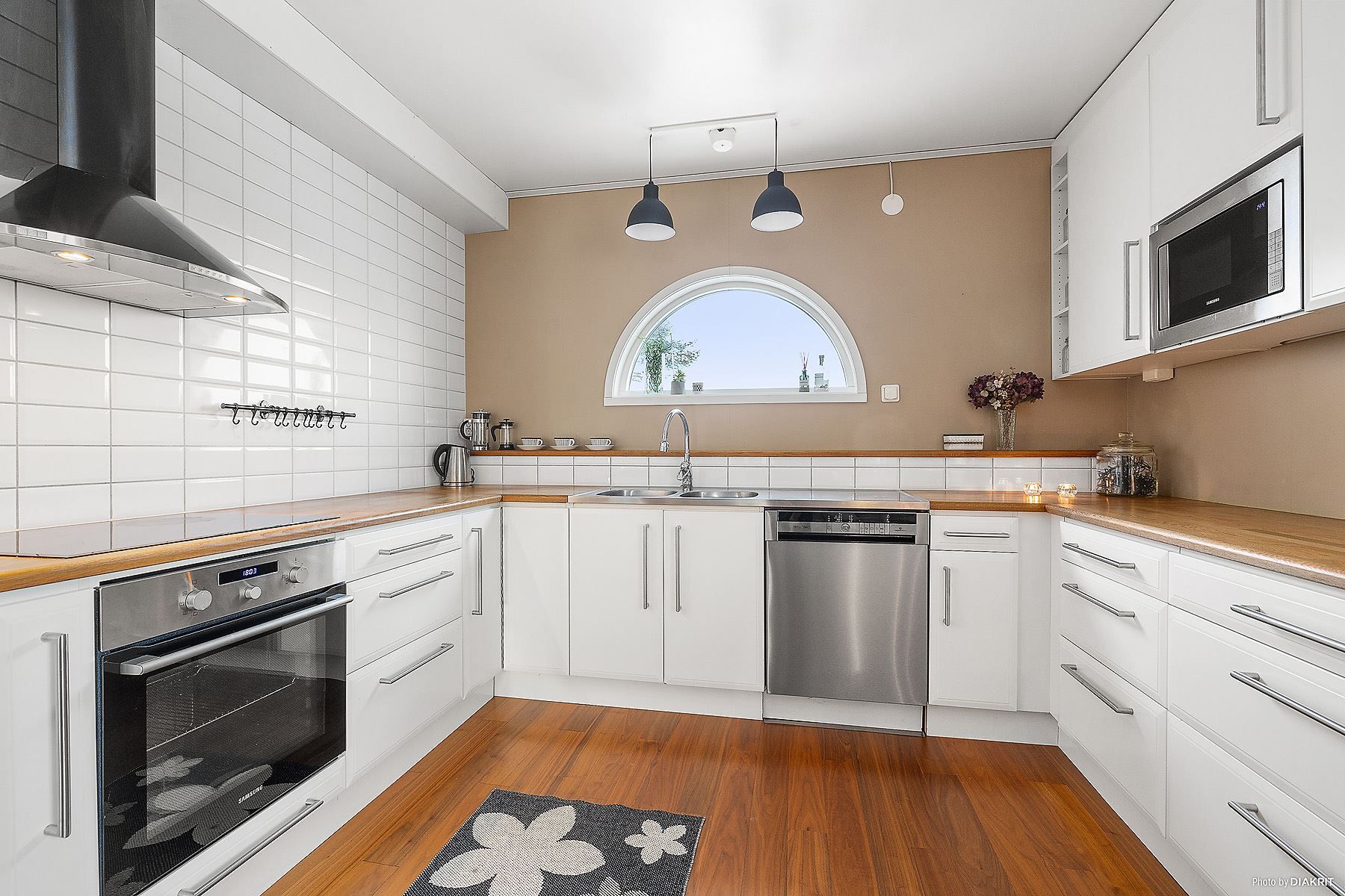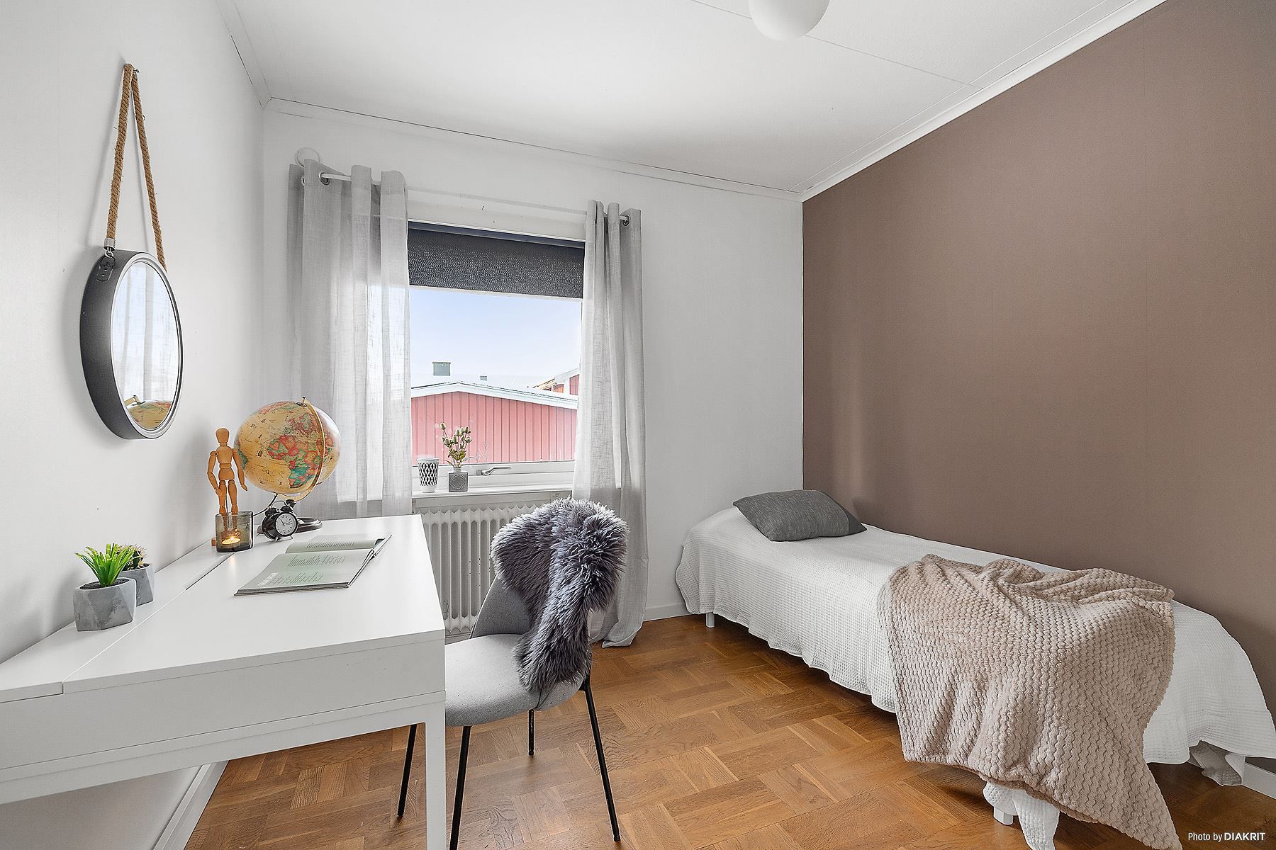 Vidare finns ett helkaklat badrum och tre rymliga sovrum, alla med bra ytor och förvaringsmöjligheter.