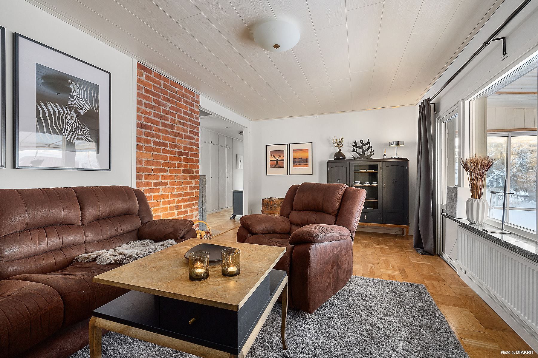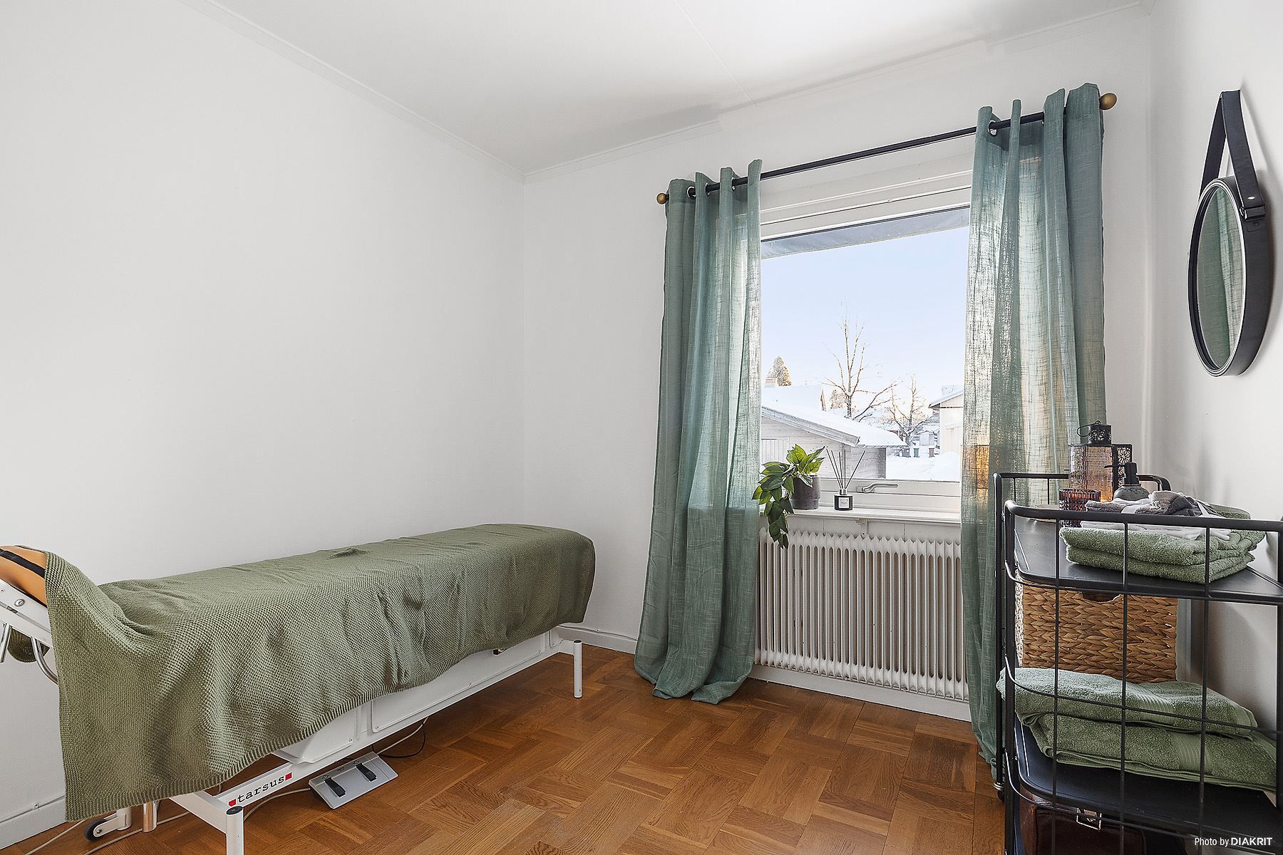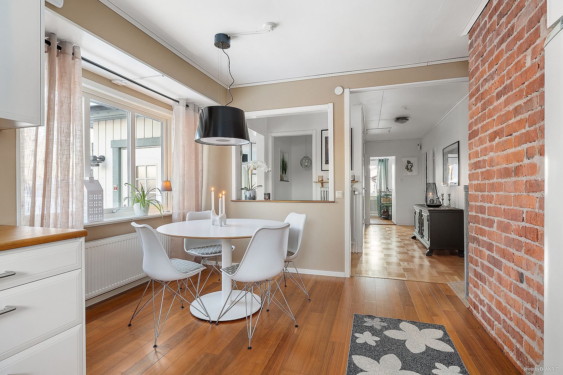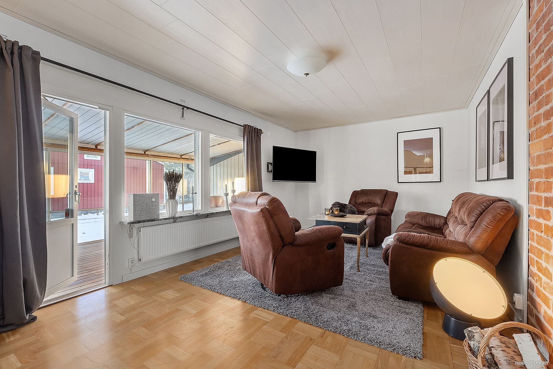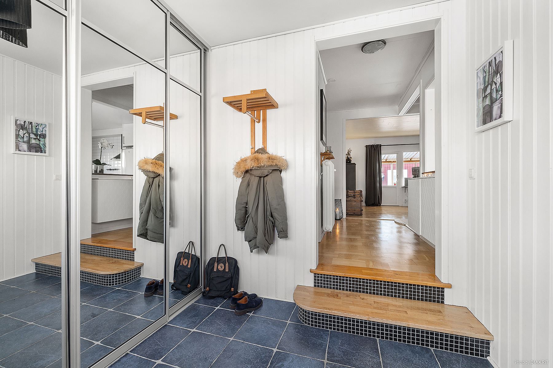 På entréplanet möts du av ett ljust och inbjudande kök med gott om arbetsytor, bra förvaring och en trevlig matplatsdel. Intill ligger det generösa vardagsrummet, där den öppna spisen skapar extra mysfaktor. Härifrån når du även den inglasade altanen på baksidan, perfekt för avkoppling eller sociala stunder.