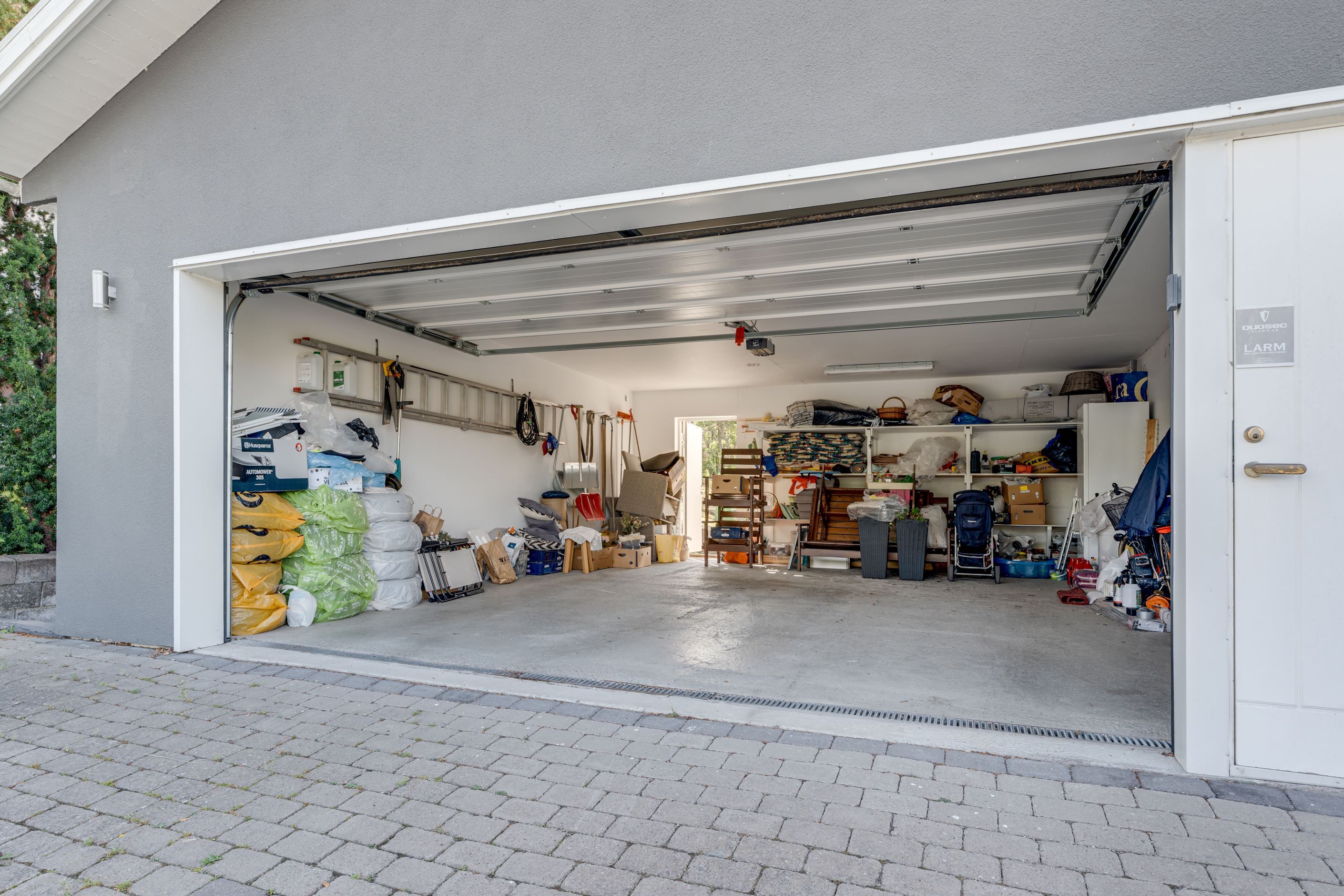 För den bilburne erbjuder fastigheten ett rymligt dubbelgarage, och husets fjärrvärmesystem ger både bekvämlighet och låga driftkostnader.