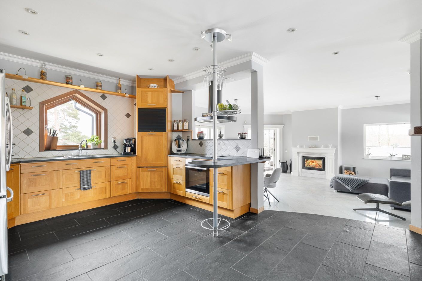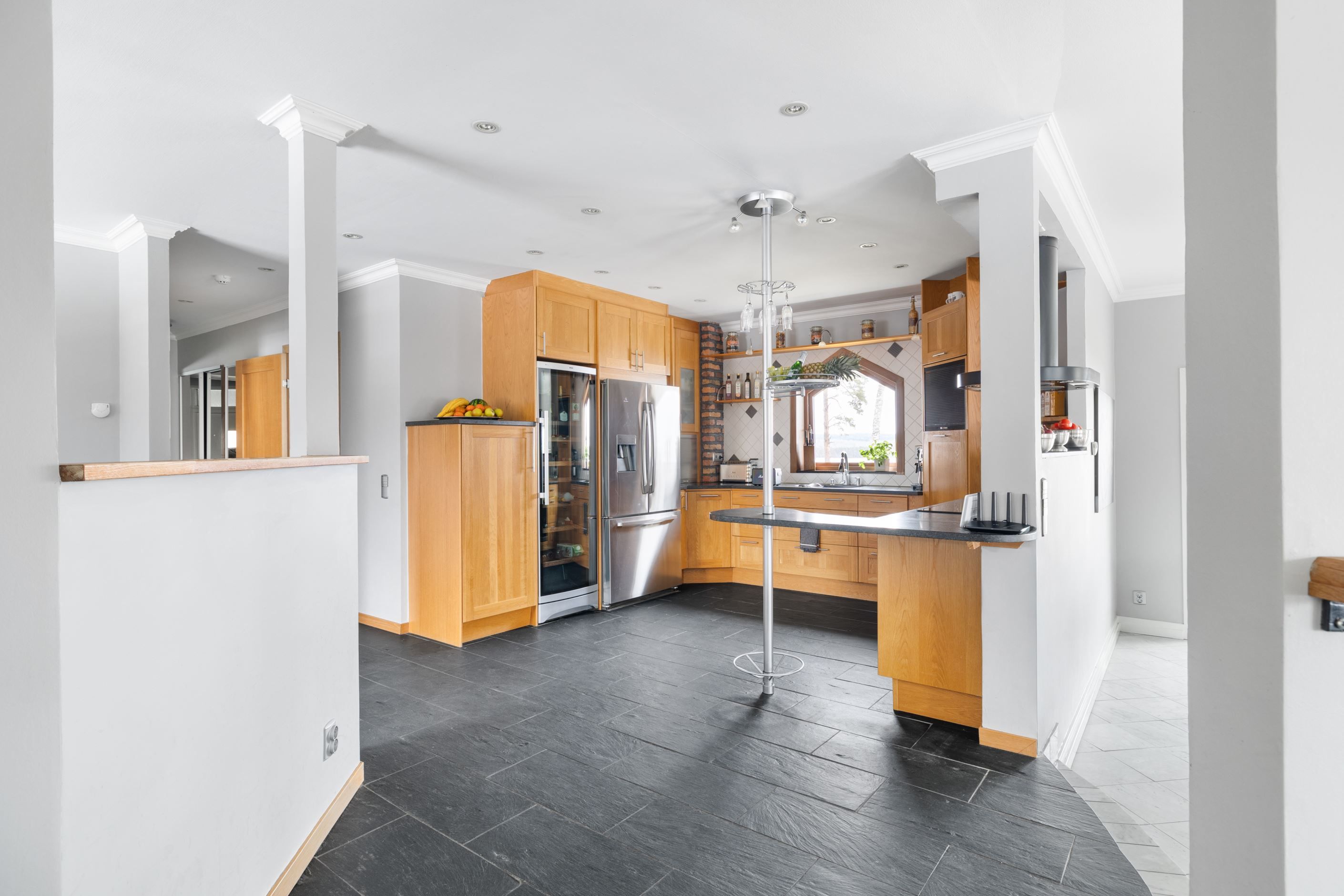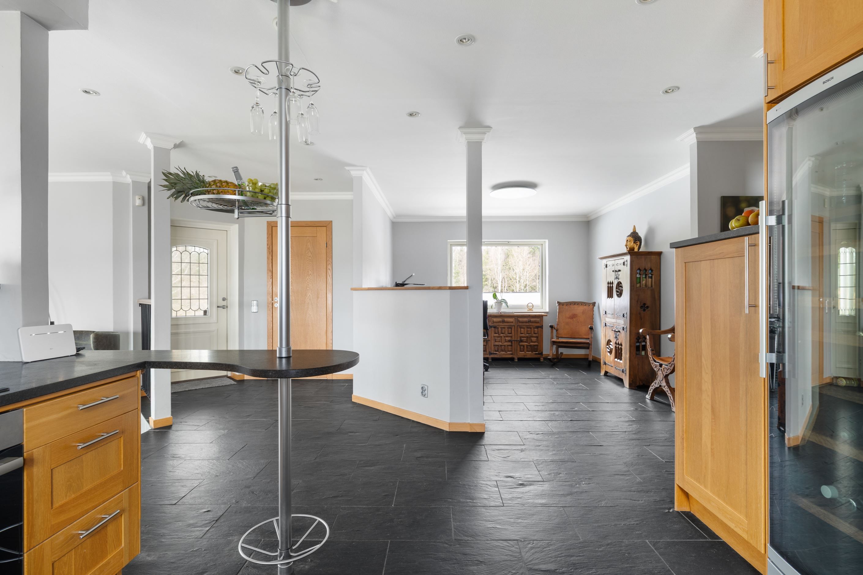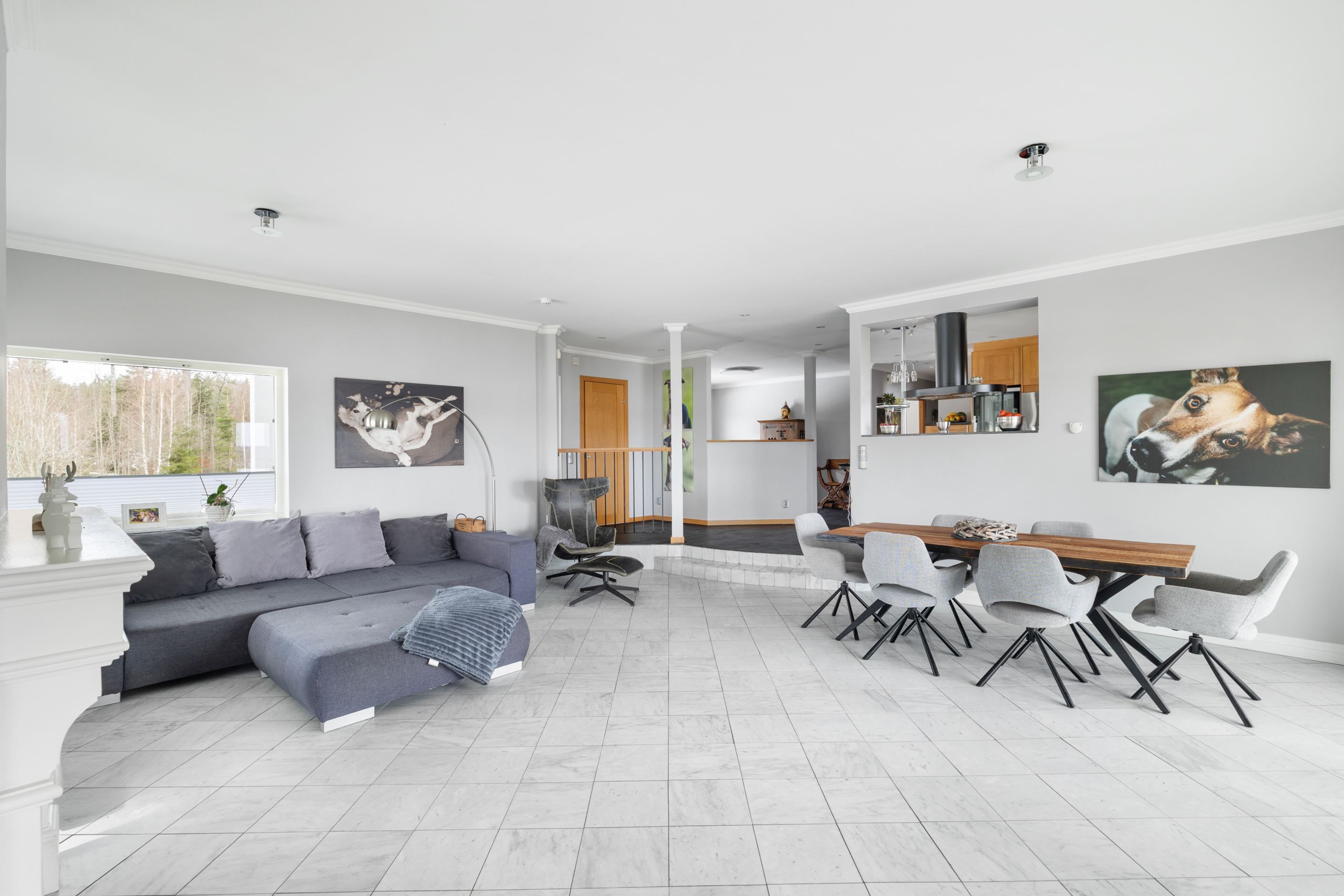 Bostadshuset på fastigheten Herrestad 1:234 är smakfullt utformat med generösa ytor och en öppen, luftig planlösning där naturen ständigt gör sig påmind genom stora fönsterpartier. Den öppna spisen bidrar till en varm och inbjudande atmosfär under årets kallare månader. Huset rymmer 3–4 sovrum samt ett inglasat uterum där du kan njuta av den vackra sjöutsikten året om. För extra bekvämlighet finns dessutom direktaccess från det rymliga dubbelgaraget in i bostadshuset.