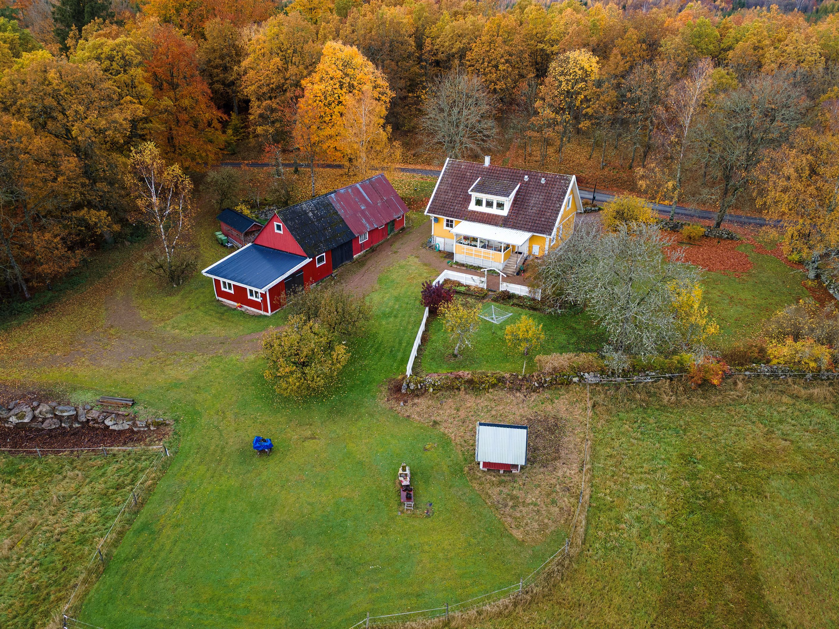 Välkommen till en gård med ett fantastiskt läge omgiven av stengärden, bokskog och öppna hagar – här bor du med naturen som närmsta granne! Fastighetens 2,628 hektar ger dig generöst med utrymme att förverkliga dina idéer och njuta av lantlivet.