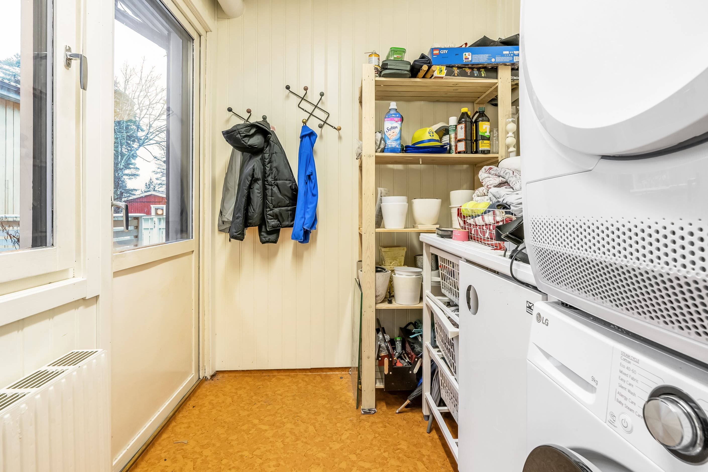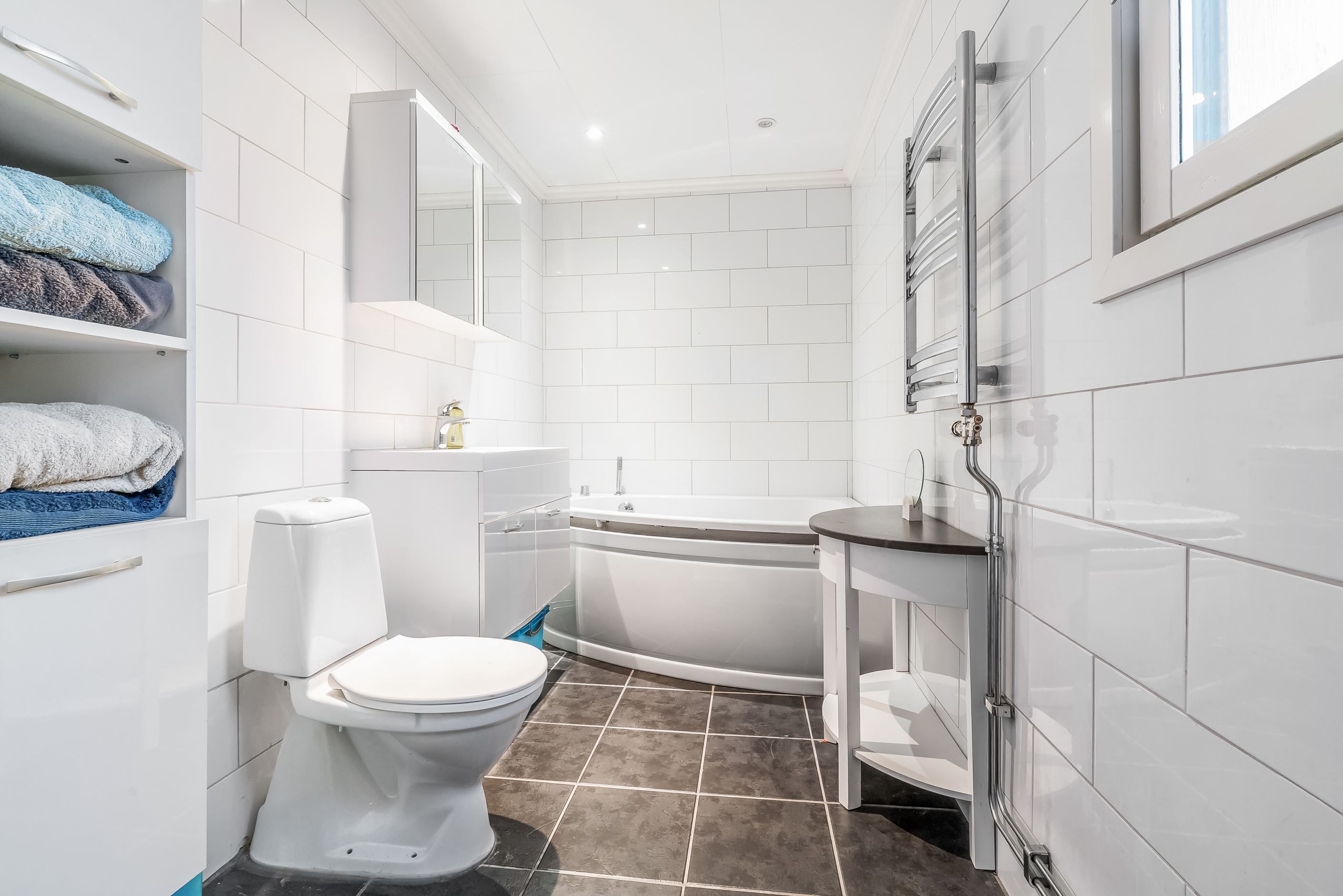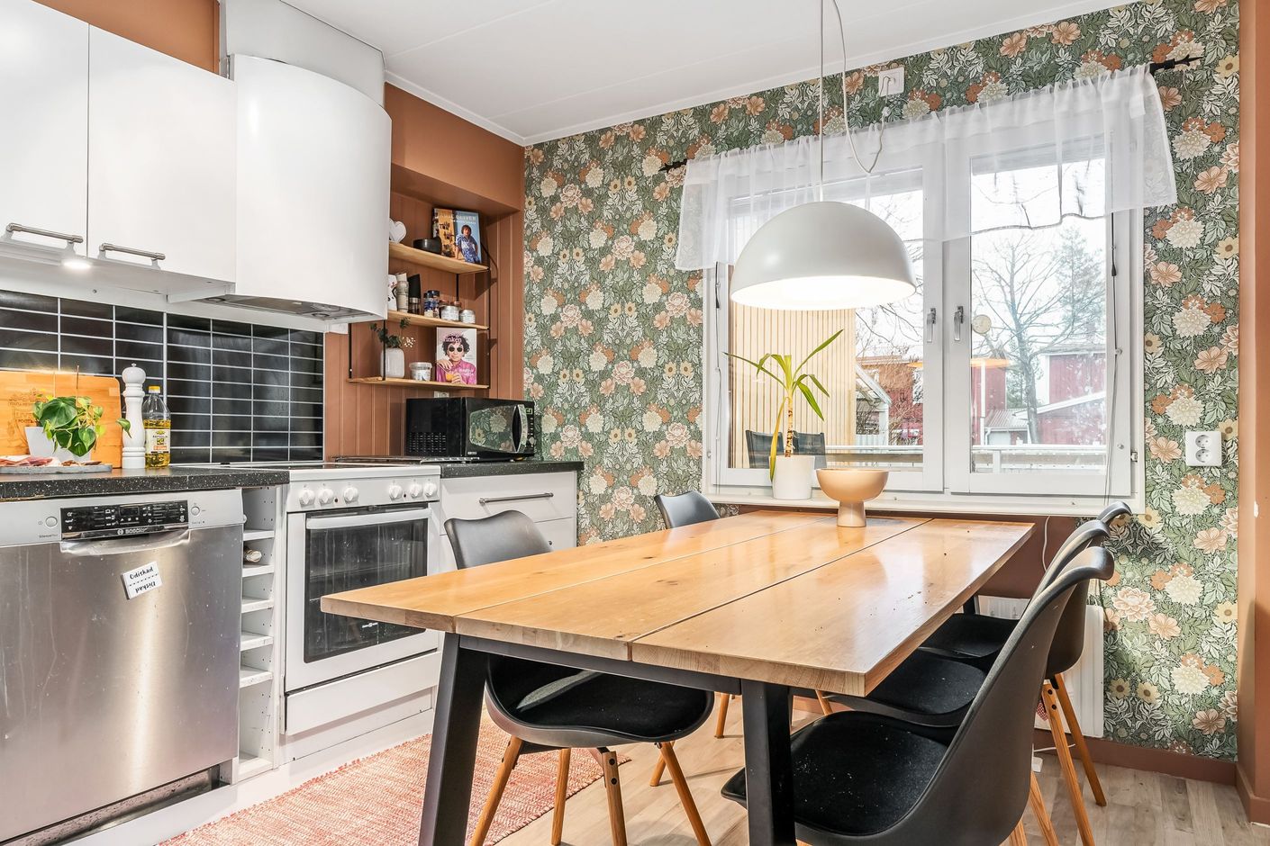 Invändigt möts du av generösa ytor, med uppdaterade ytskikt såsom två kaklade badrum, nyare kök, målade väggar och ny el i hela huset. Ett hem som är lätt att trivas i och "bara bo". Garage finns för en bil, goda förvaringsmöjligheter och indragen fiber bidrar till en smidig och modern vardag.