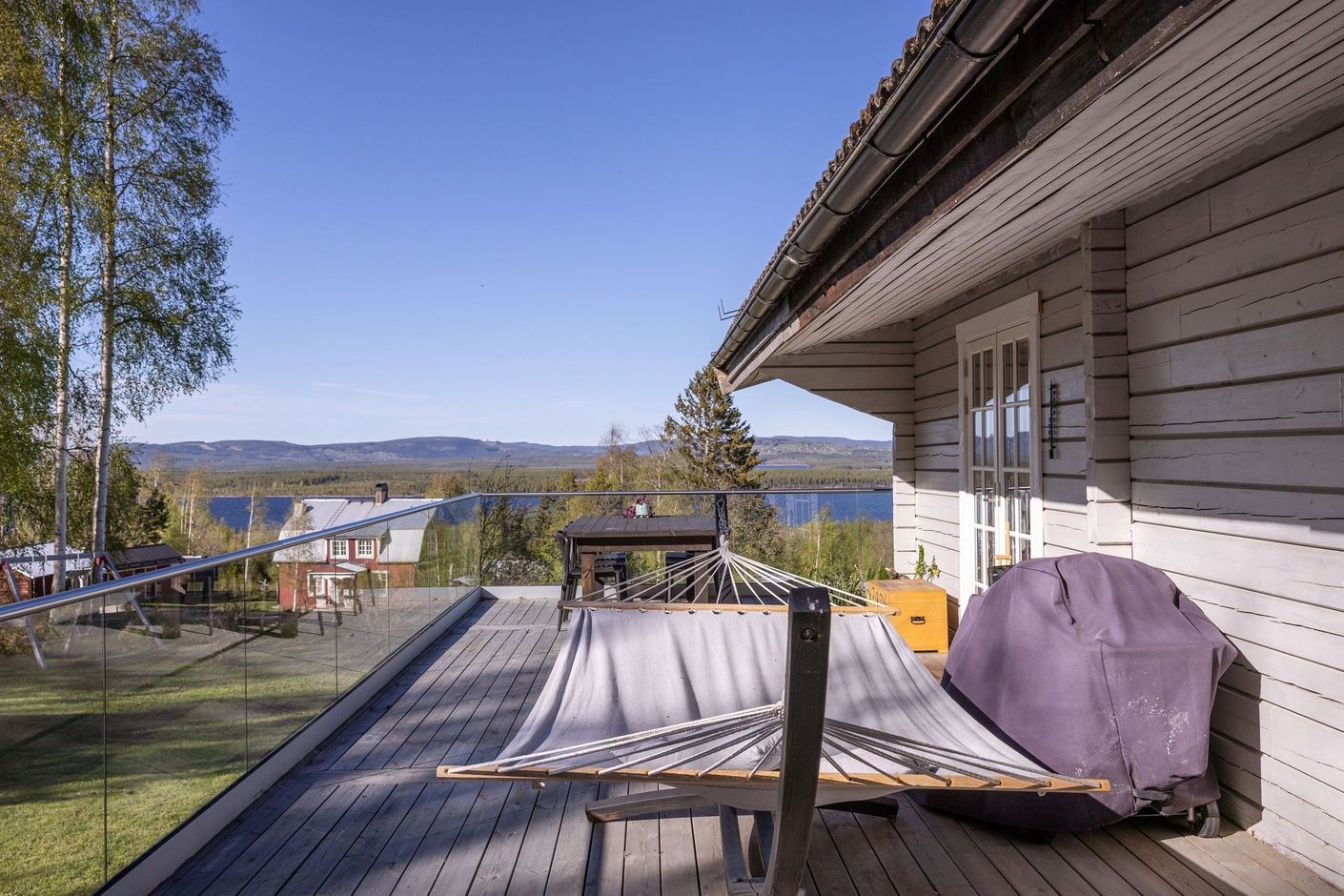 På denna fastighet har du en makalös utsikt över sjö och fjäll. Huset ligger dessutom på en väldigt lugn gata och tomten är styckad så du inte får något annat hus tätt inpå. Själva huset är stort, nästan 200 kvm bo-och biyta vilket gör att det passar den stora familjen, antingen som permanentboende eller som fritidsboende. På entréplanet finns en rymlig hall, helkaklat badrum, två sovrum och ett kombinerat kök/allrum. En trappa ner sen finns ett allrum, två sovrum, tvättstuga, förråd, WC och dusch med bastu. Nuvarande ägare har gjort en hel del renoveringar vilket ger ett hemtrevligt intryck.